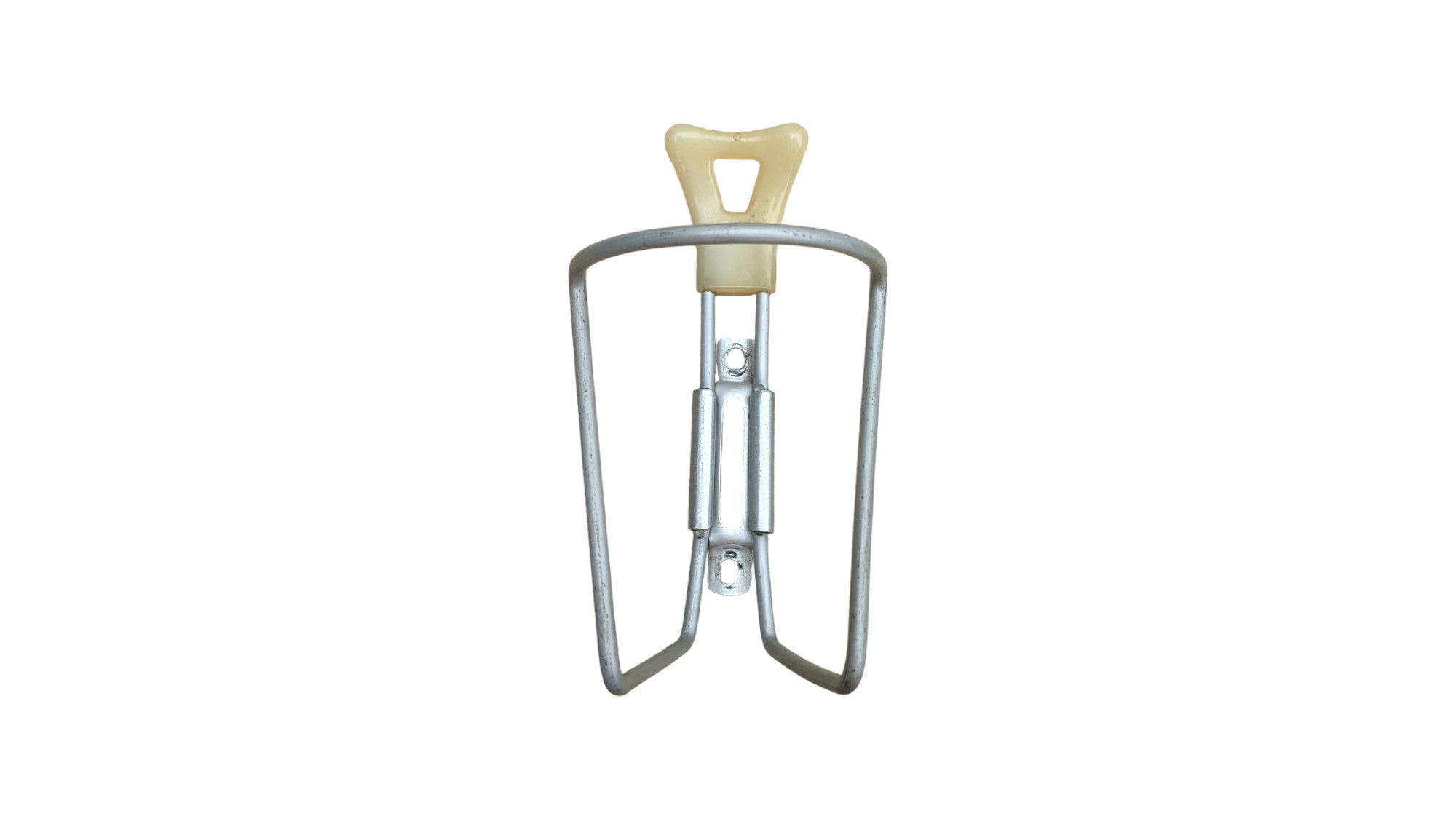 Aluminum silver bottle cage. Used, cleaned and fully functional. Lightweight and classic in design — an understated accessory suitable for vintage or modern frame builds.