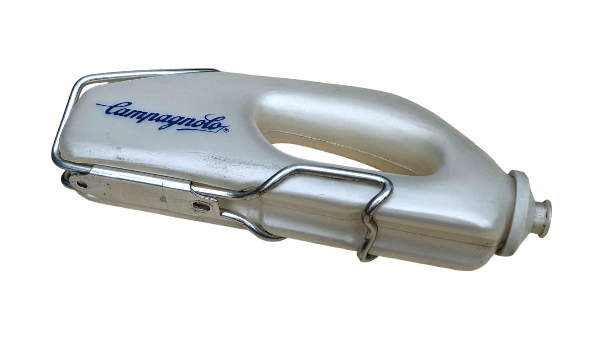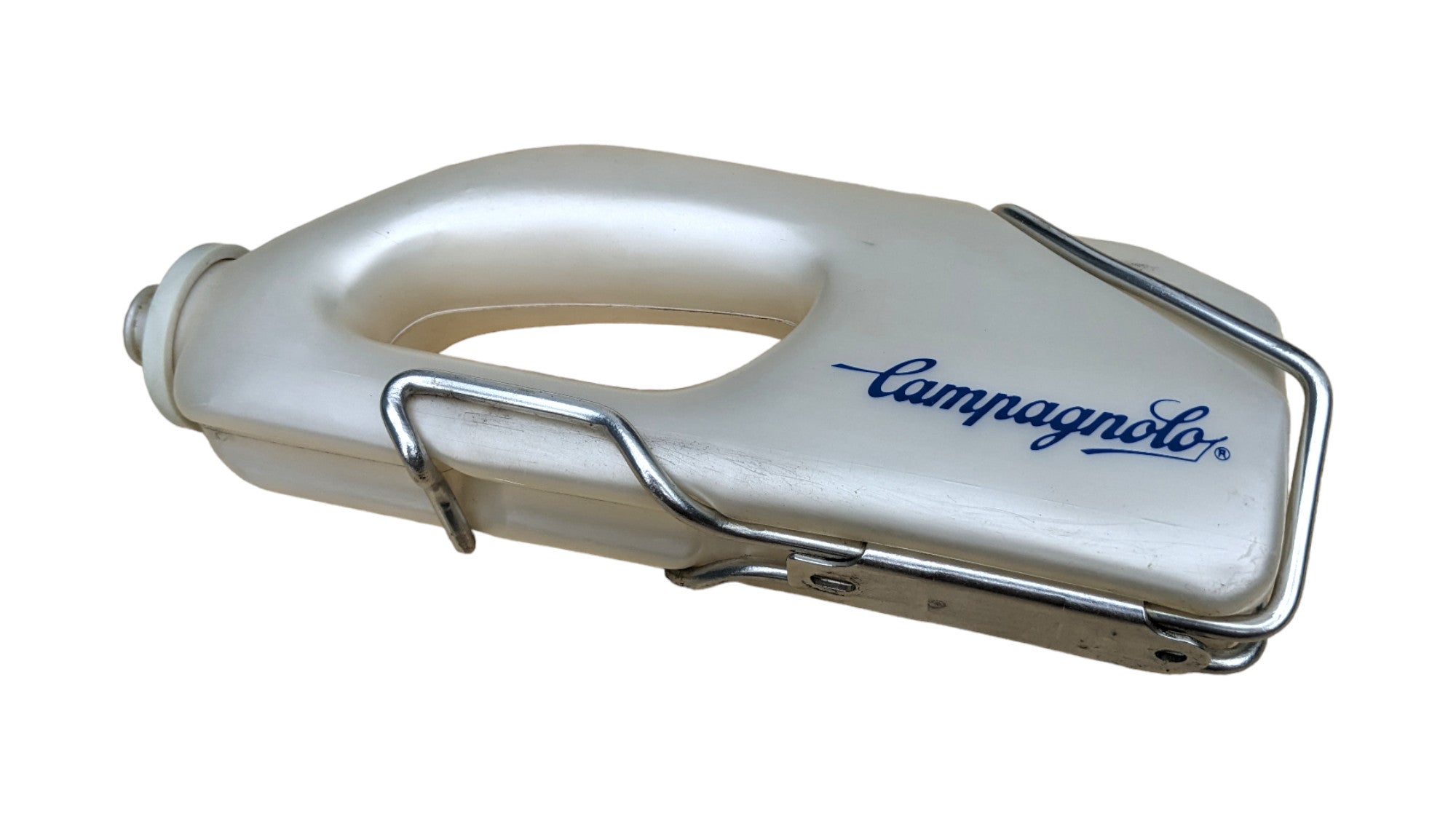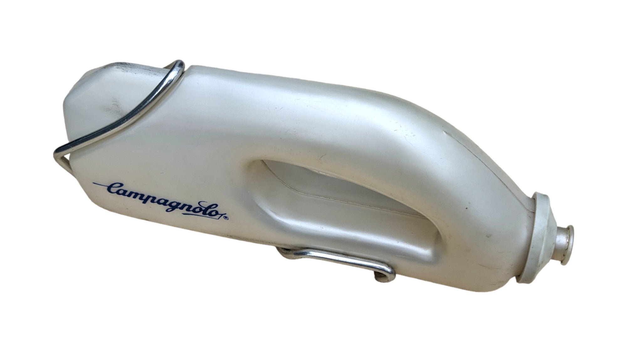 Campagnolo Biodinamica water bottle with matching holder. Used, cleaned and fully functional. A genuine Italian vintage accessory — ideal for completing period-correct road bike builds with authentic Campagnolo style.