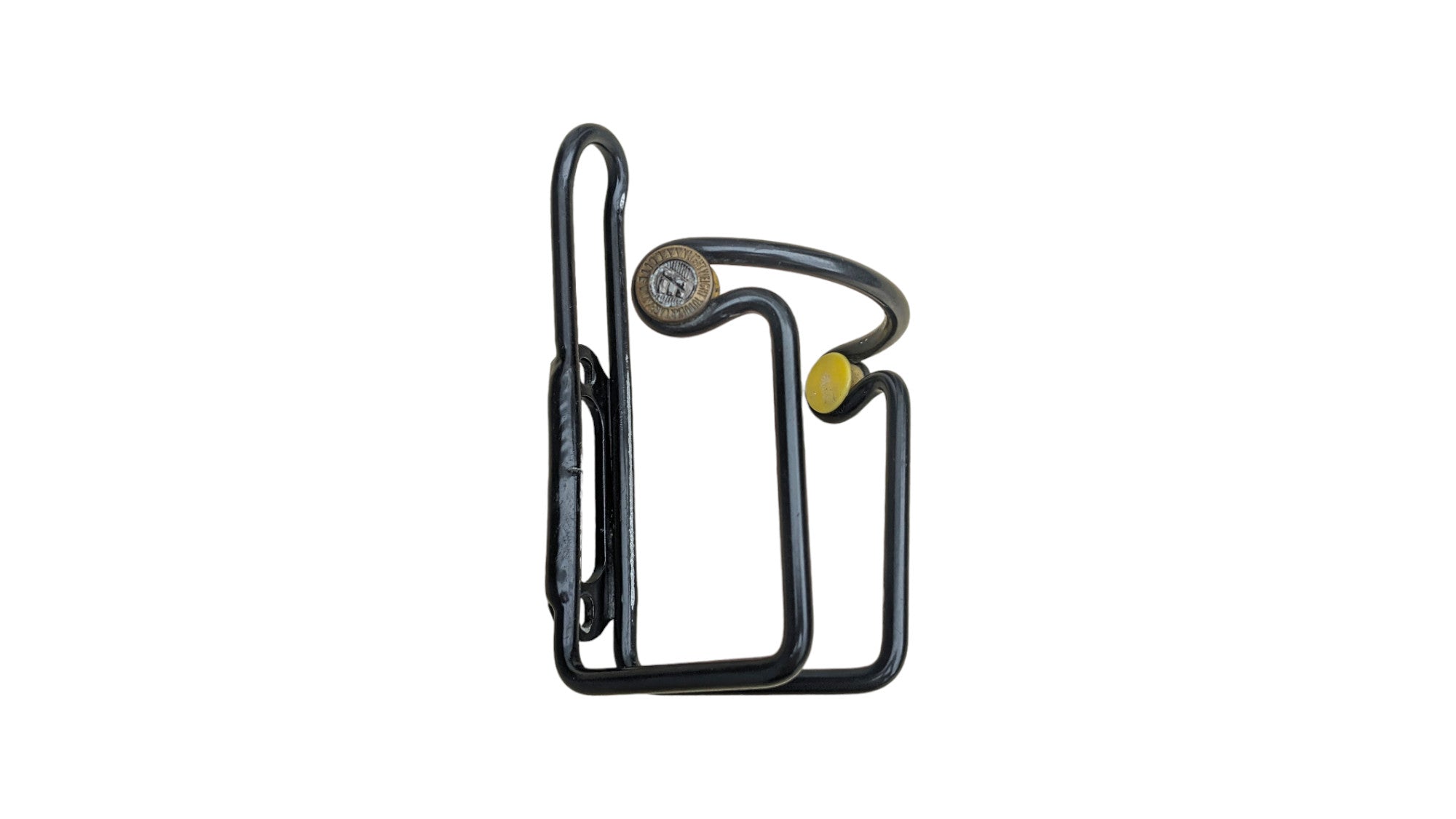 Elite lightweight tubular bottle cage in black. Used, cleaned and fully functional. A sleek, minimal vintage-style cage — perfect for classic road bikes aiming for understated aesthetics.
