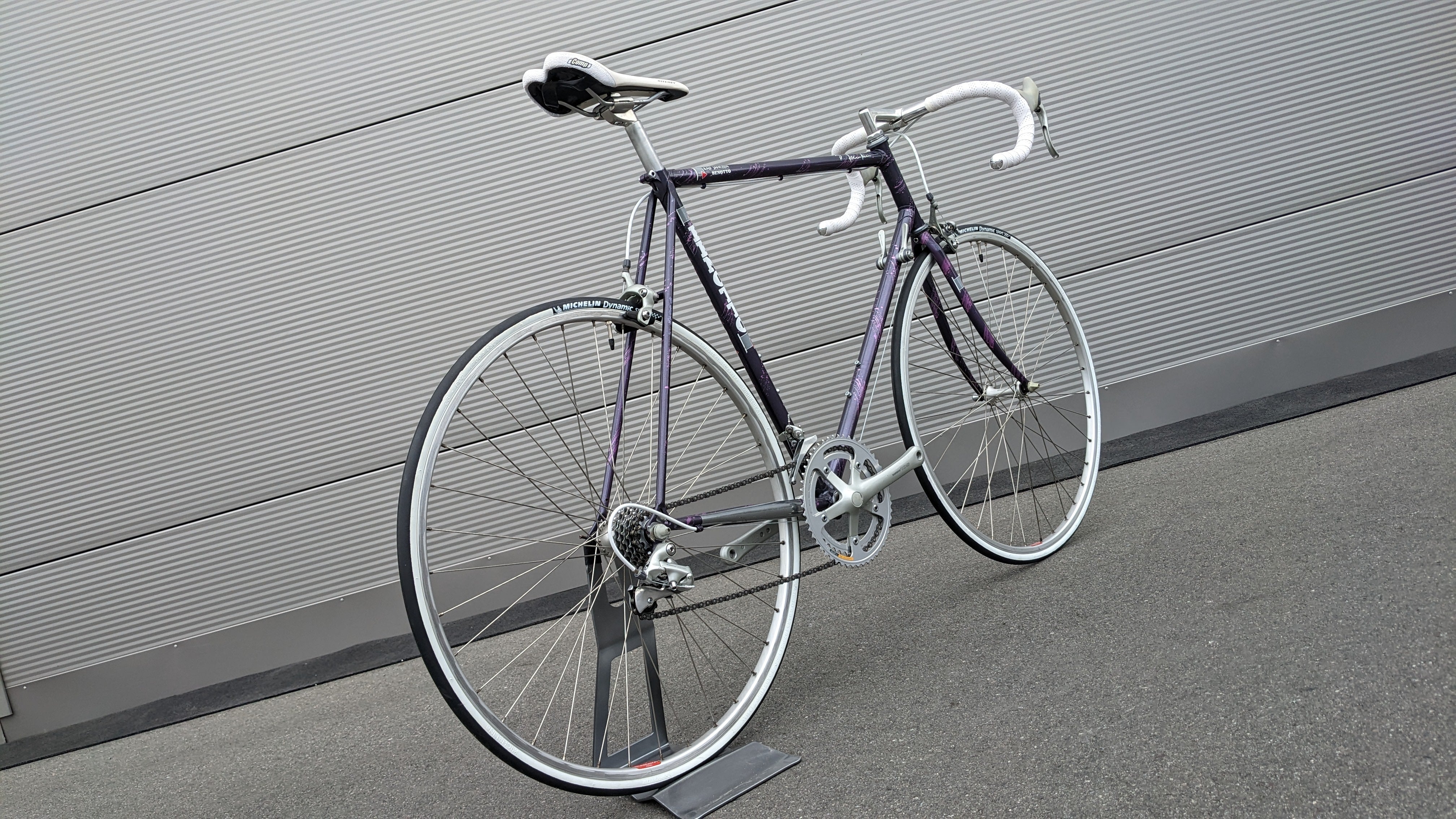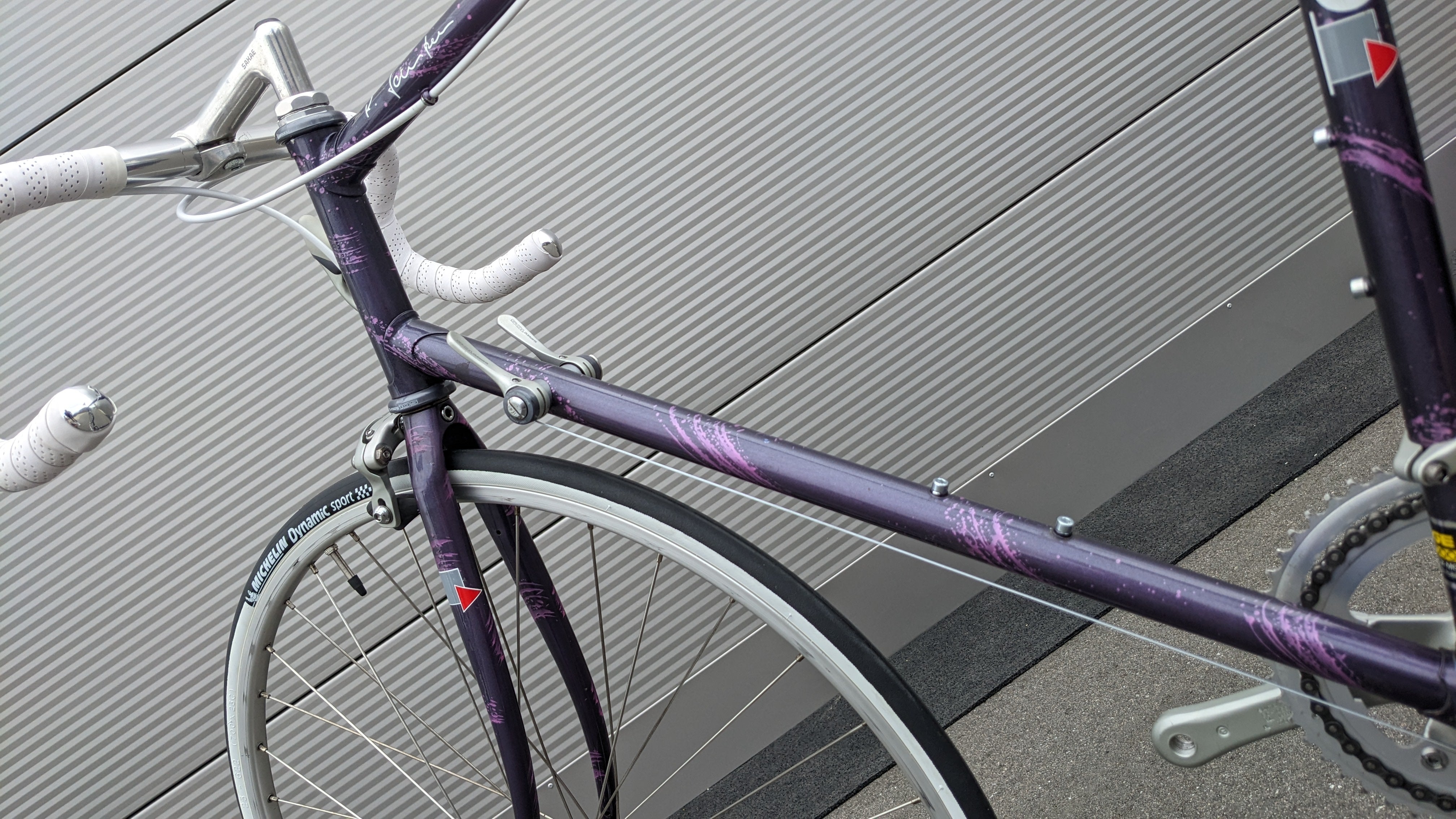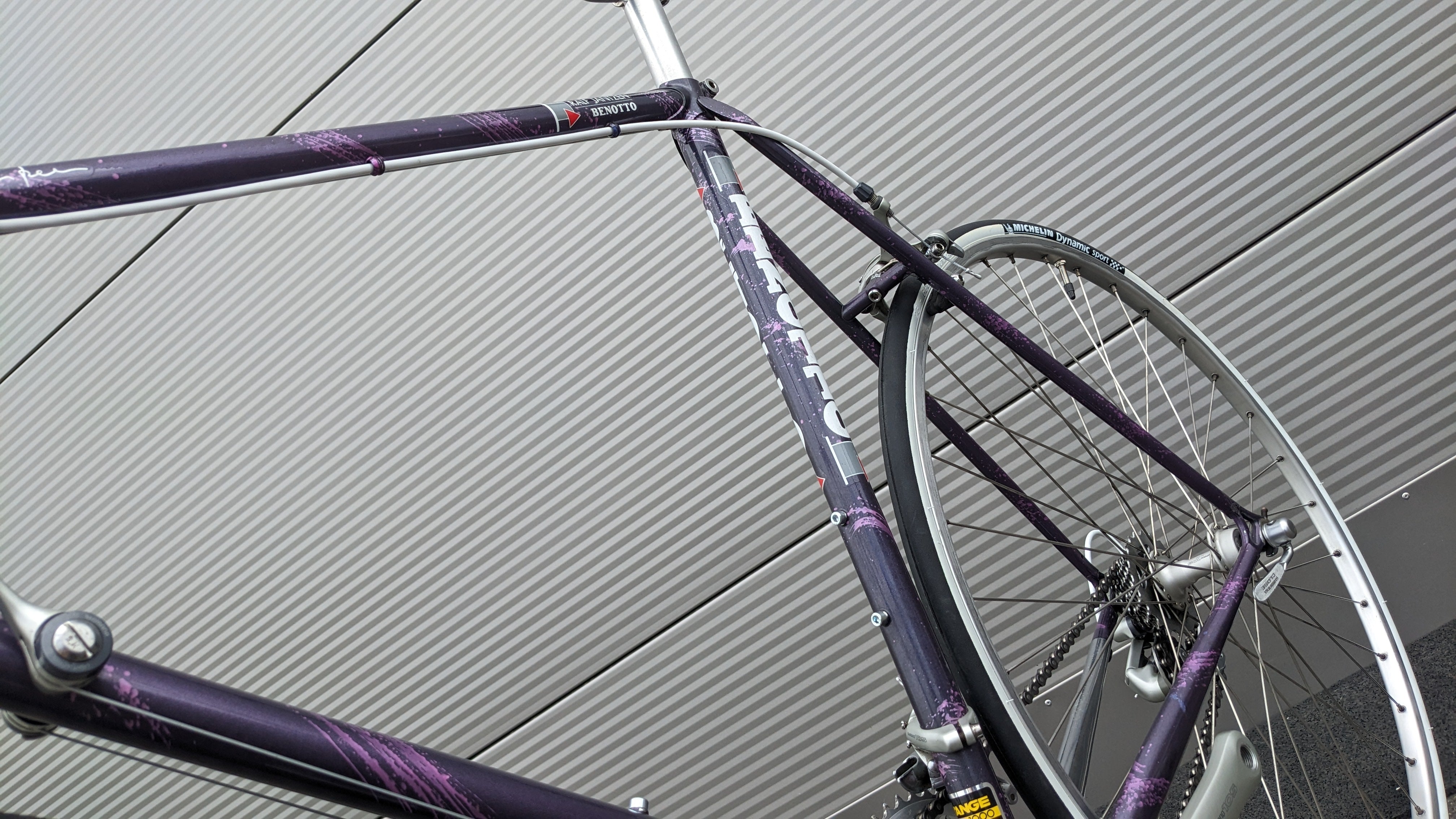 This vintage racing bike is in a good condition, having been fully restored with all necessary parts replaced. The frame remains free from dents and cracks, with a few minor paint abrasions that are typical for its age. To maintain its aesthetics, any imperfections have been repaired. This retro racing bike is ready for your next vintage bike tour.