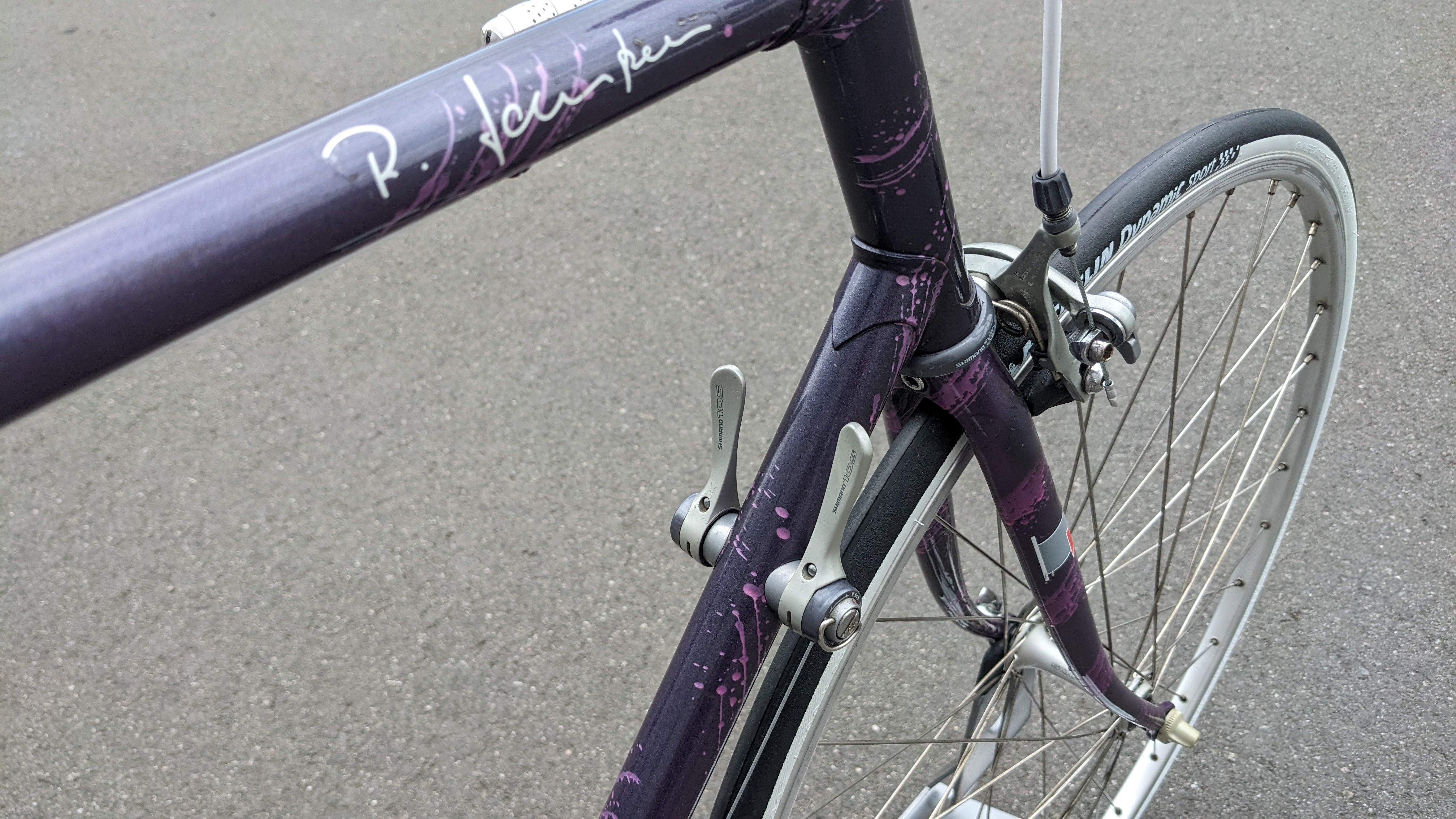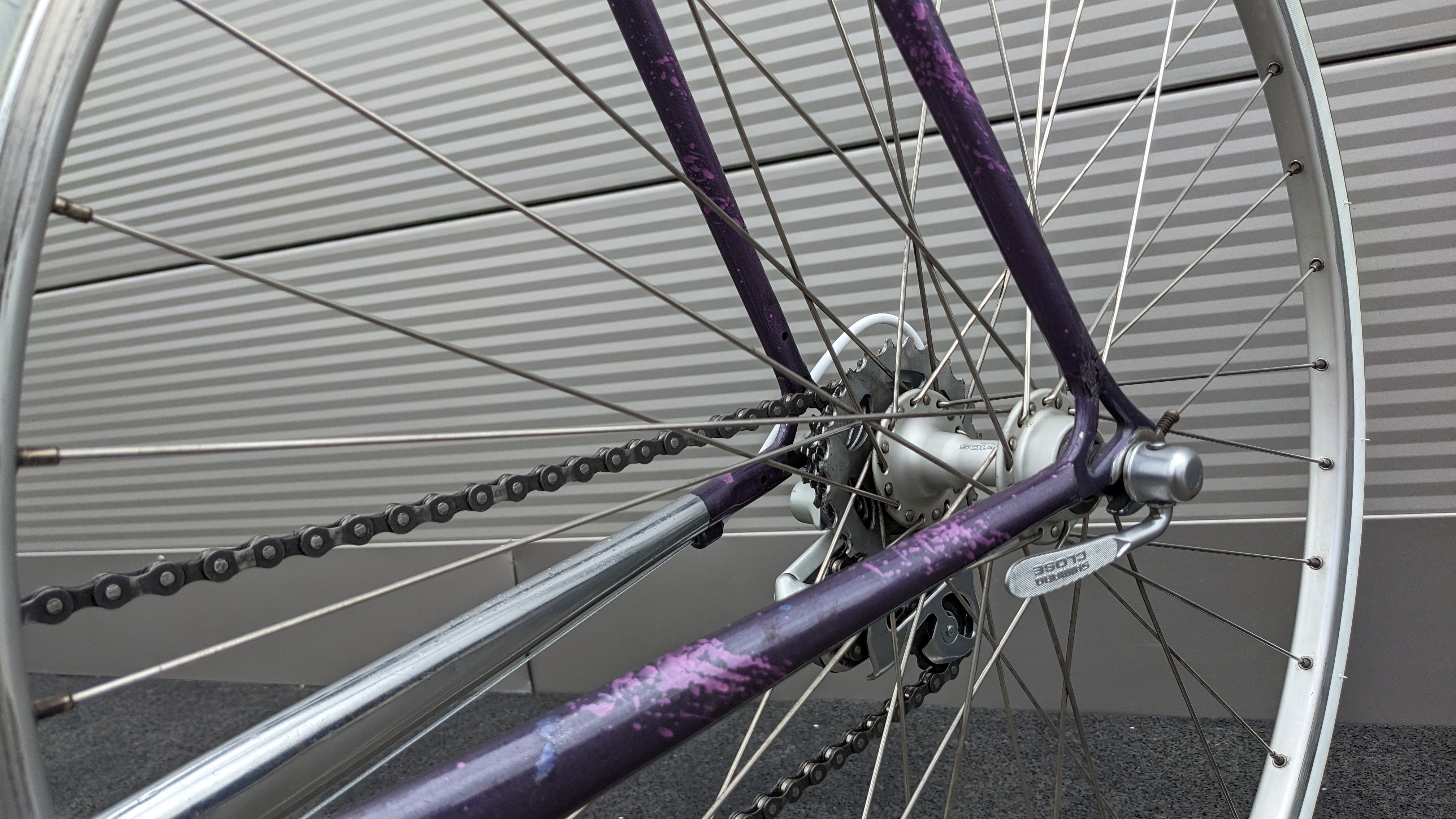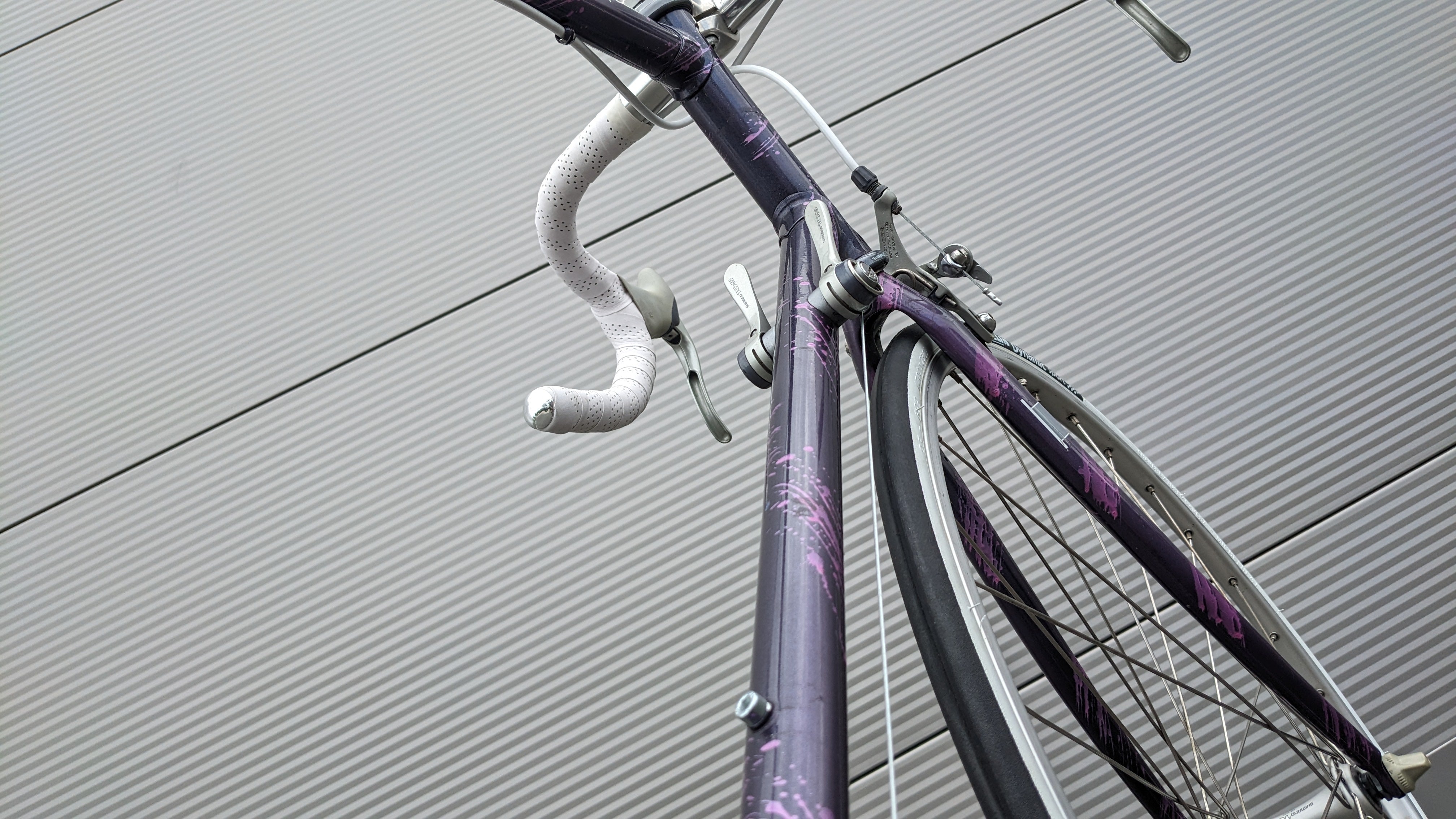 This vintage racing bike is in a good condition, having been fully restored with all necessary parts replaced. The frame remains free from dents and cracks, with a few minor paint abrasions that are typical for its age. To maintain its aesthetics, any imperfections have been repaired. This retro racing bike is ready for your next vintage bike tour.