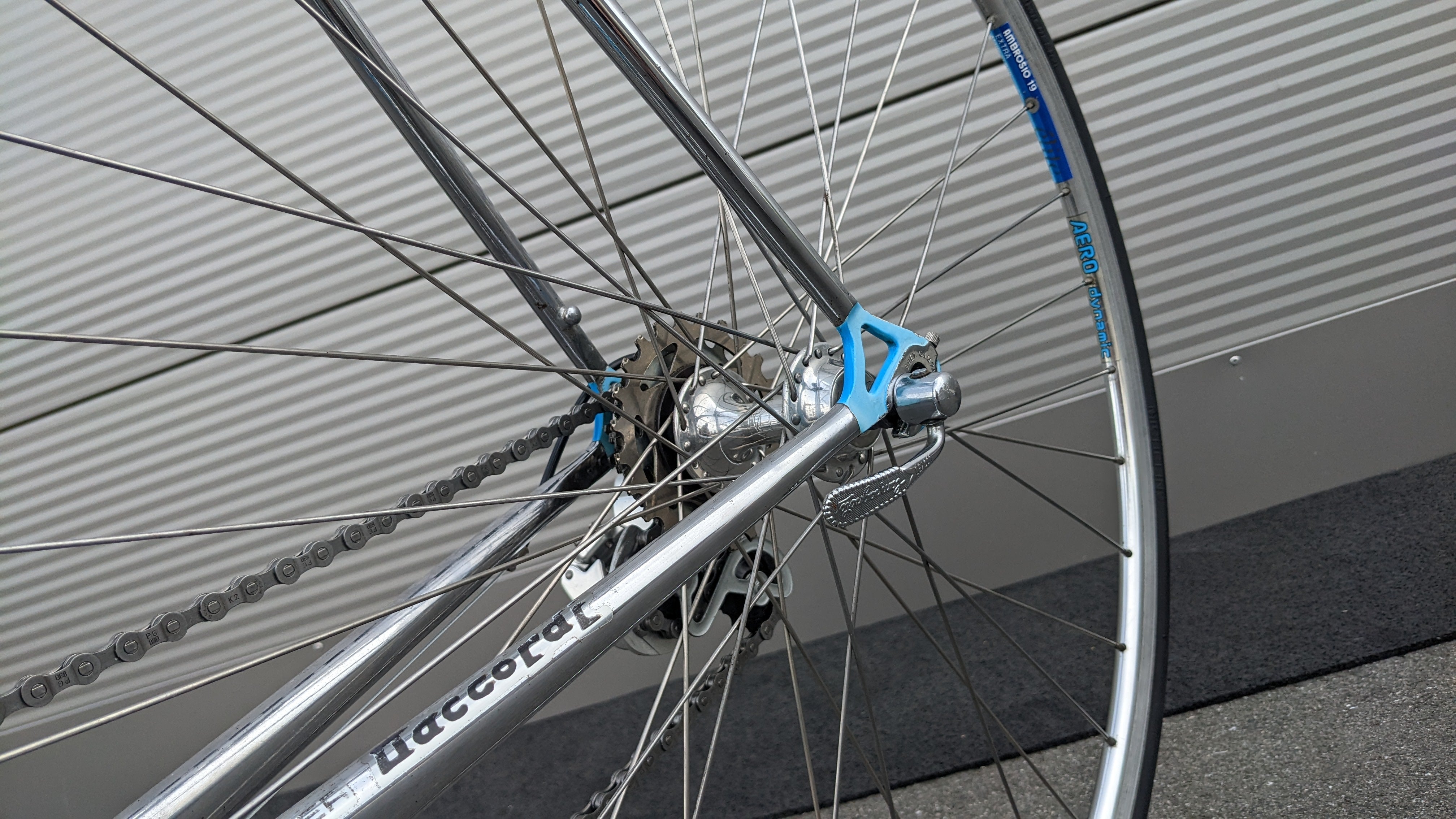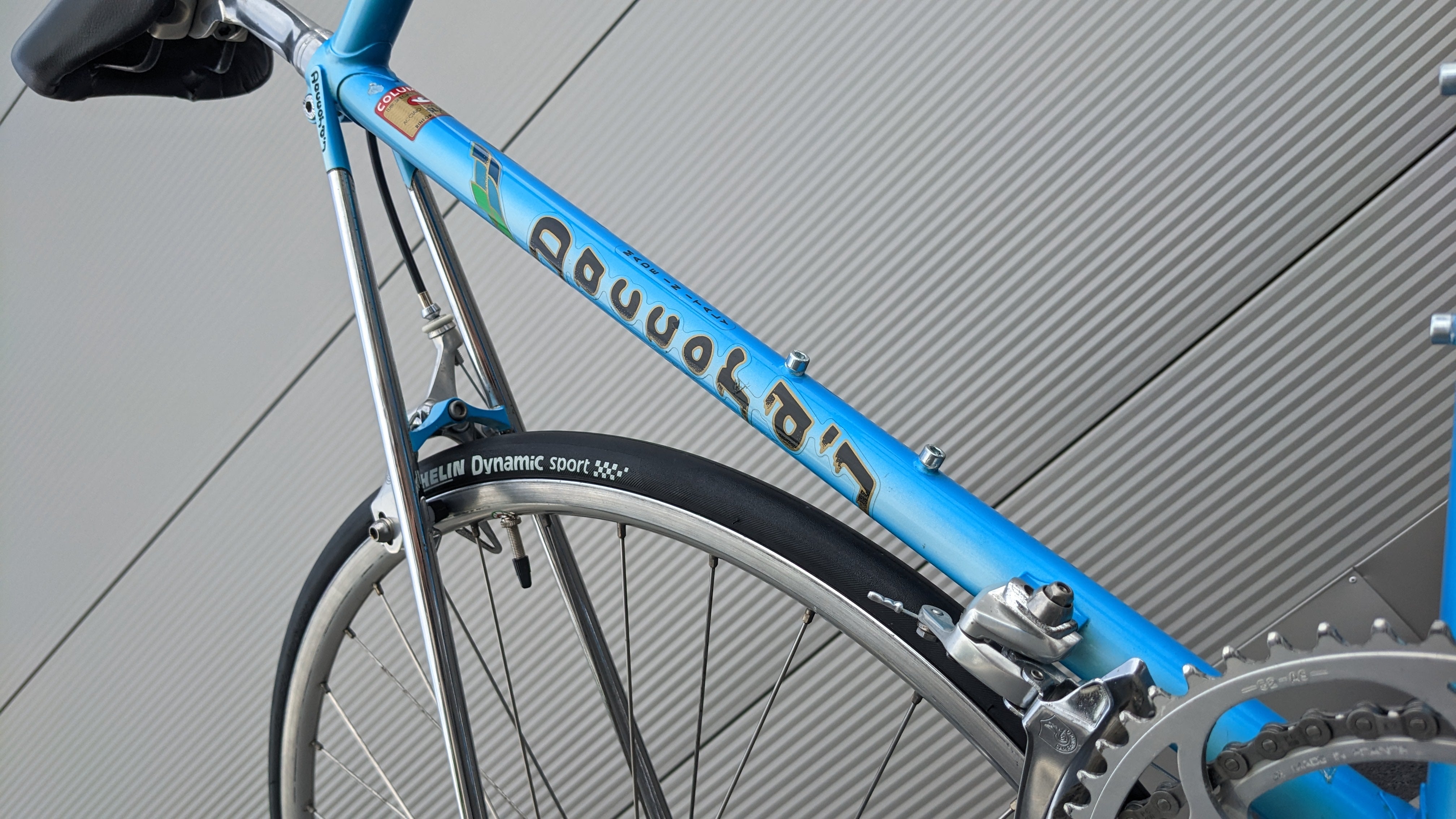 The bike has undergone a full restoration and all relevant components have been replaced. The frame is in a good condition with no dents, cracks, or bends. There are some minor signs of wear on the paint, which is to be expected for a bike from this era. Any paint imperfections have been carefully touched up to maintain and enhance the overall appearance. This vintage racing bike is available in a fully functional state, perfect for your first classic bicycle adventure.