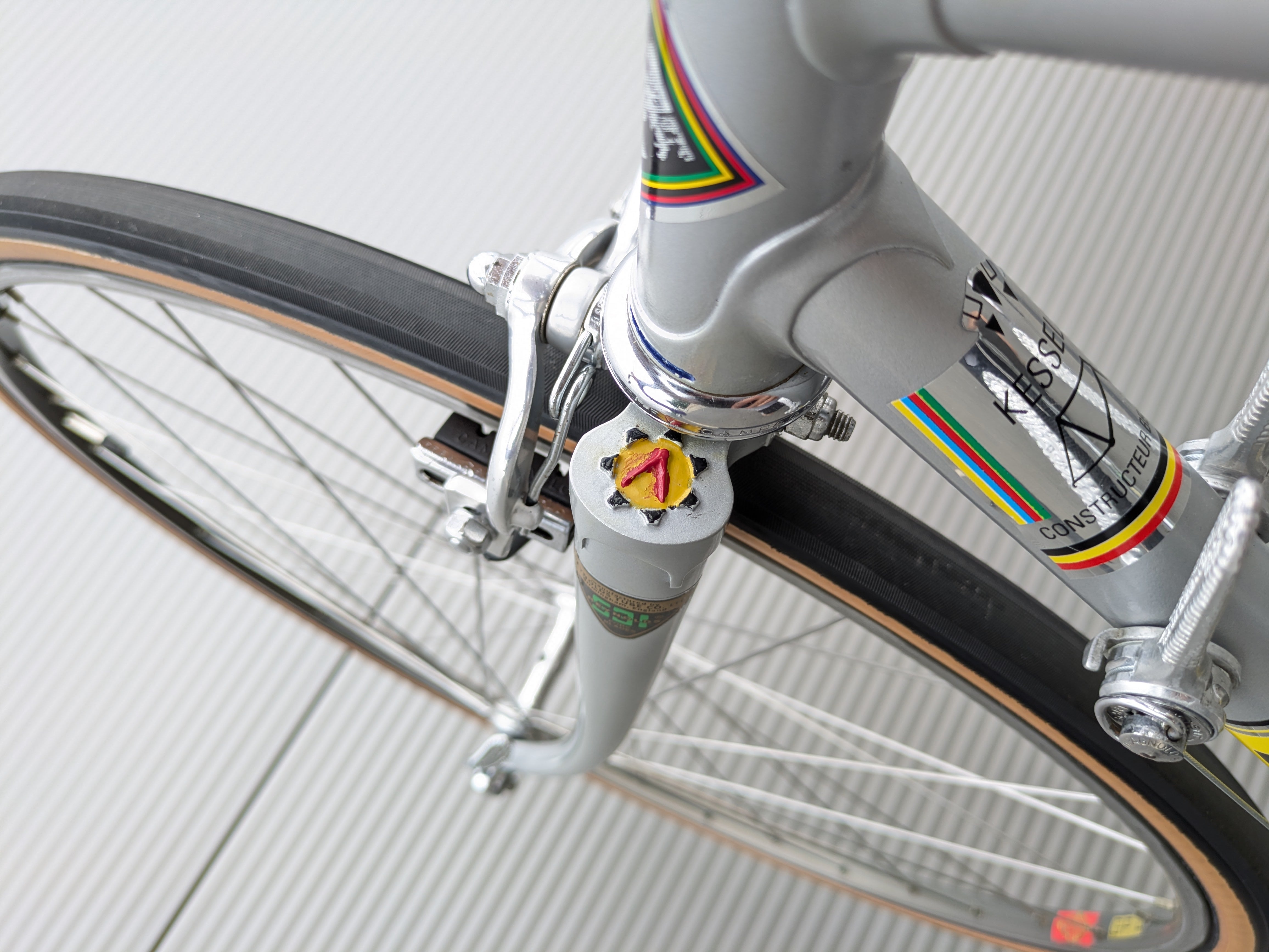 Team C&A existed only in the 1978 season and was built around Eddy Merckx for his final years in professional cycling; Merckx ended his career on May 18, 1978. Before Merckx opened his own bicycle factory in 1980, frames carrying his name were produced by selected builders – among them the Belgian company Kessels. Kessels was less a traditional framebuilder and more a coordinator, working with renowned specialists such as Vaneenooghe or Gaston Orlans to produce top-quality frames. Many of the high-end Kessels/Merckx frames of this era were built with Reynolds 531 tubing. The C&A team bikes are often attributed to De Rosa in historical sources, yet Kessels-built C&A Merckx frames are well documented and highly sought after among collectors – a fascinating detail from this transitional period between contracted production and Merckx’s own factory.