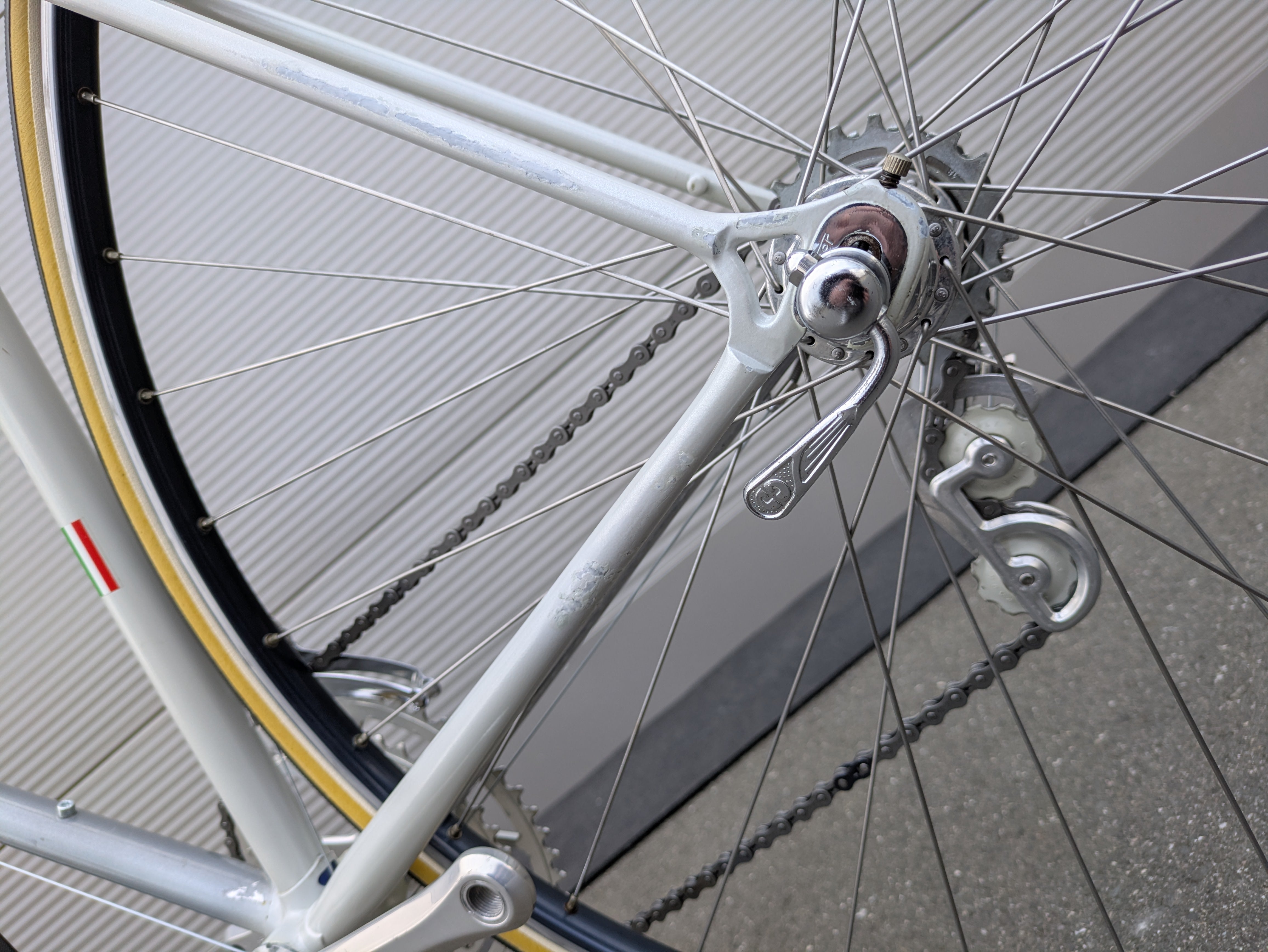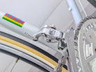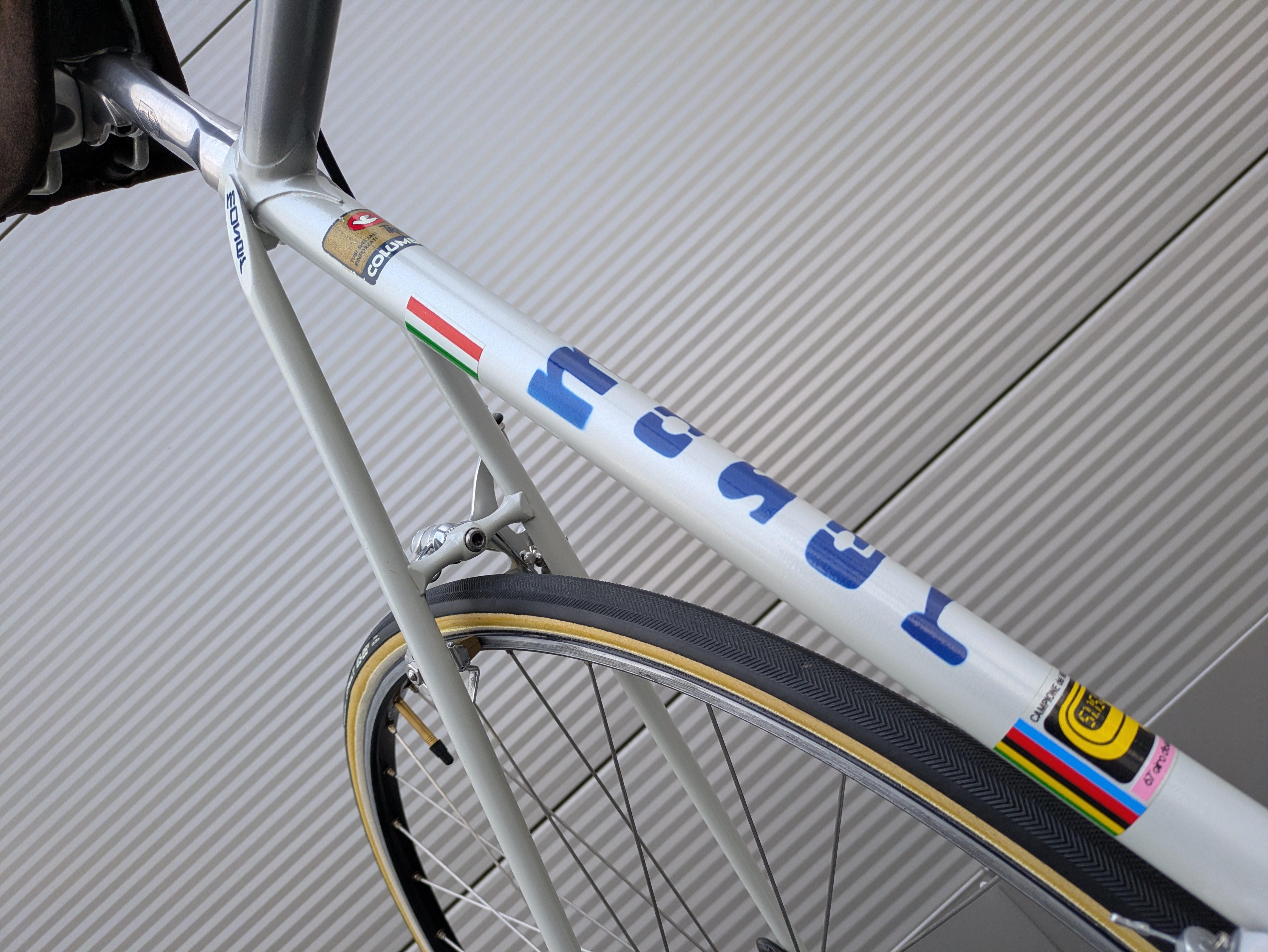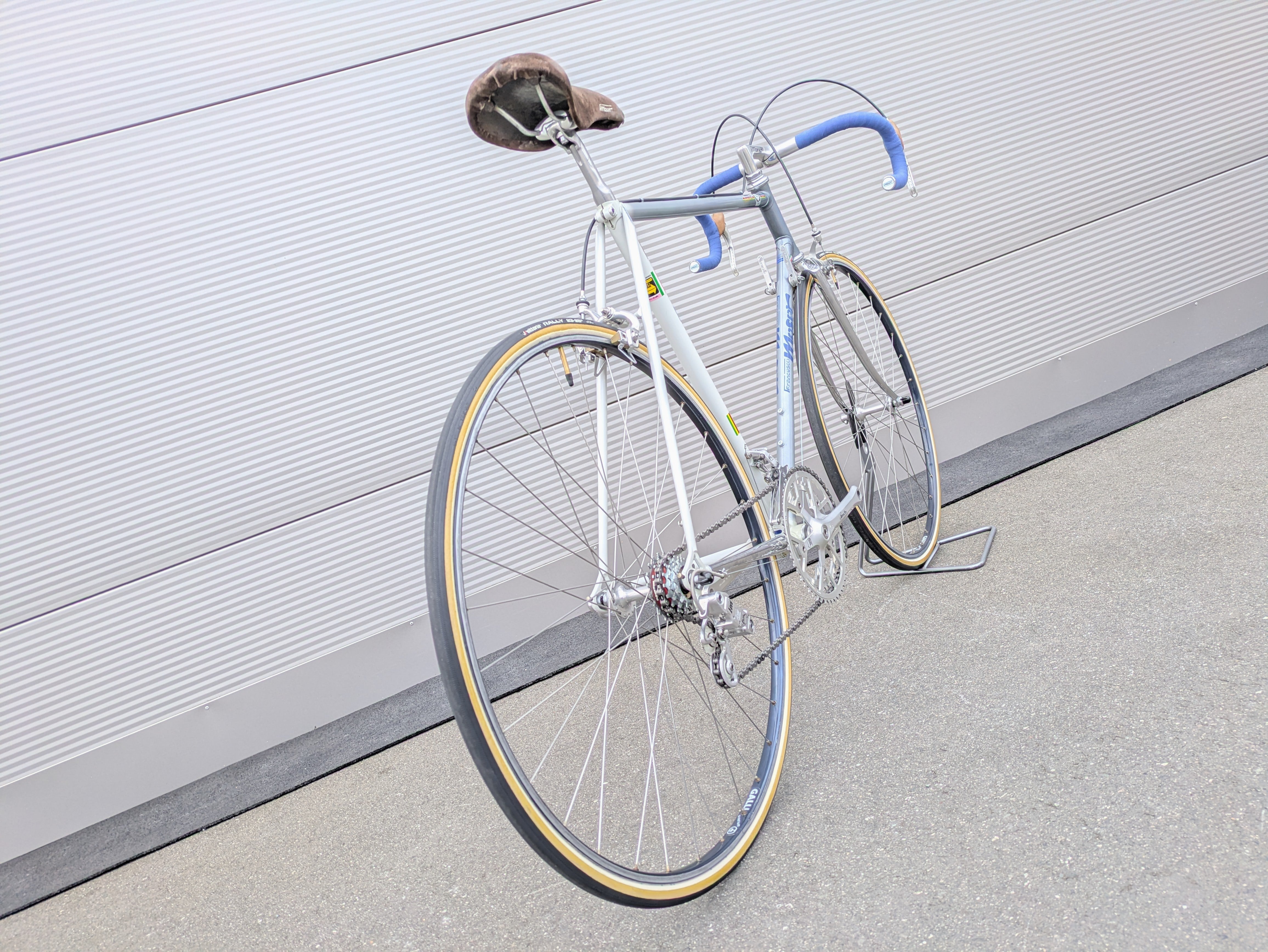 Used. This specimen was rebuilt at Goldensteelcycles with a commitment to technical perfection and is fully Eroica-ready. The frame has been inspected for structural integrity and is perfectly aligned, free of defects such as cracks or dents. For the restoration, the bike was completely disassembled into its individual parts so that every component could undergo a thorough deep cleaning in an ultrasonic bath. Following the technical inspection, all moving parts were reassembled and fine-tuned using high-quality lubricants. To ensure the riding comfort of a classic racing bike, all wear parts were consistently replaced: this includes the chain, the tubular tires, the handlebar tape, and all cables including their housings. The result is an authentic classic that remains in a technical condition that leaves nothing to be desired.