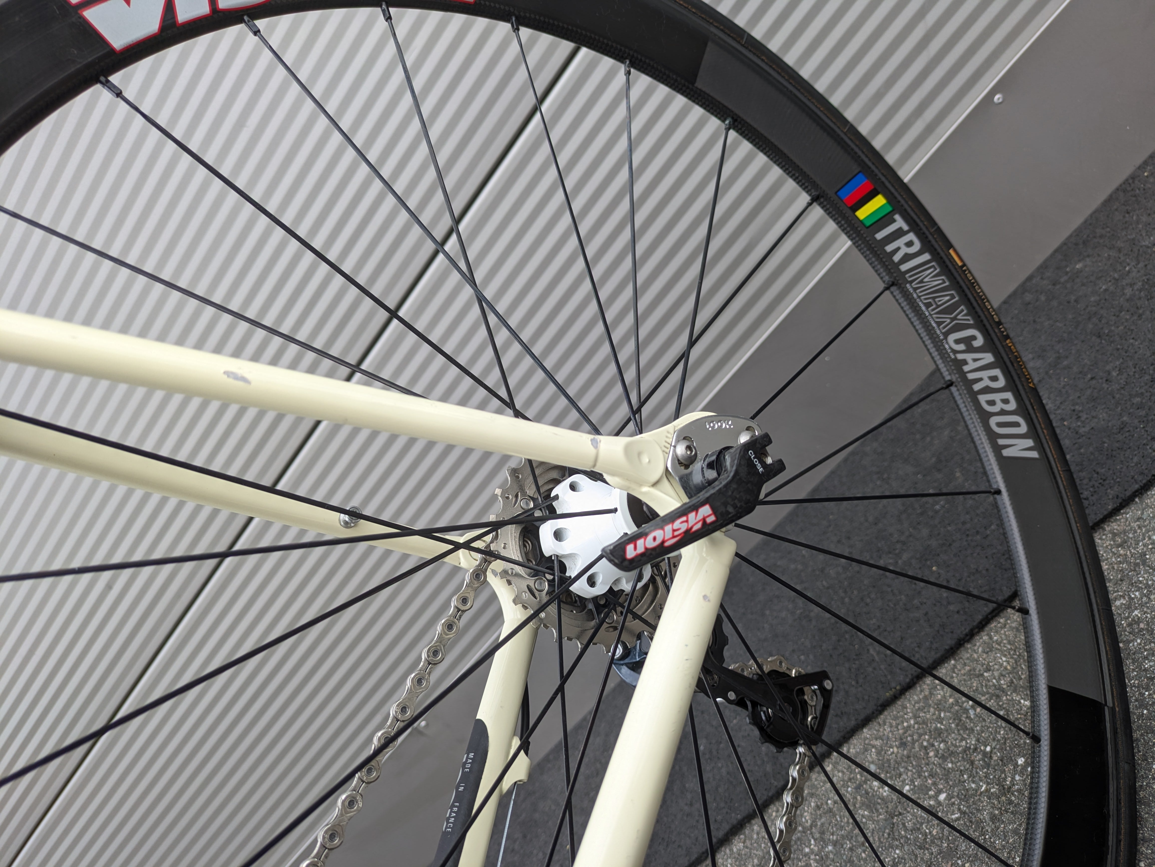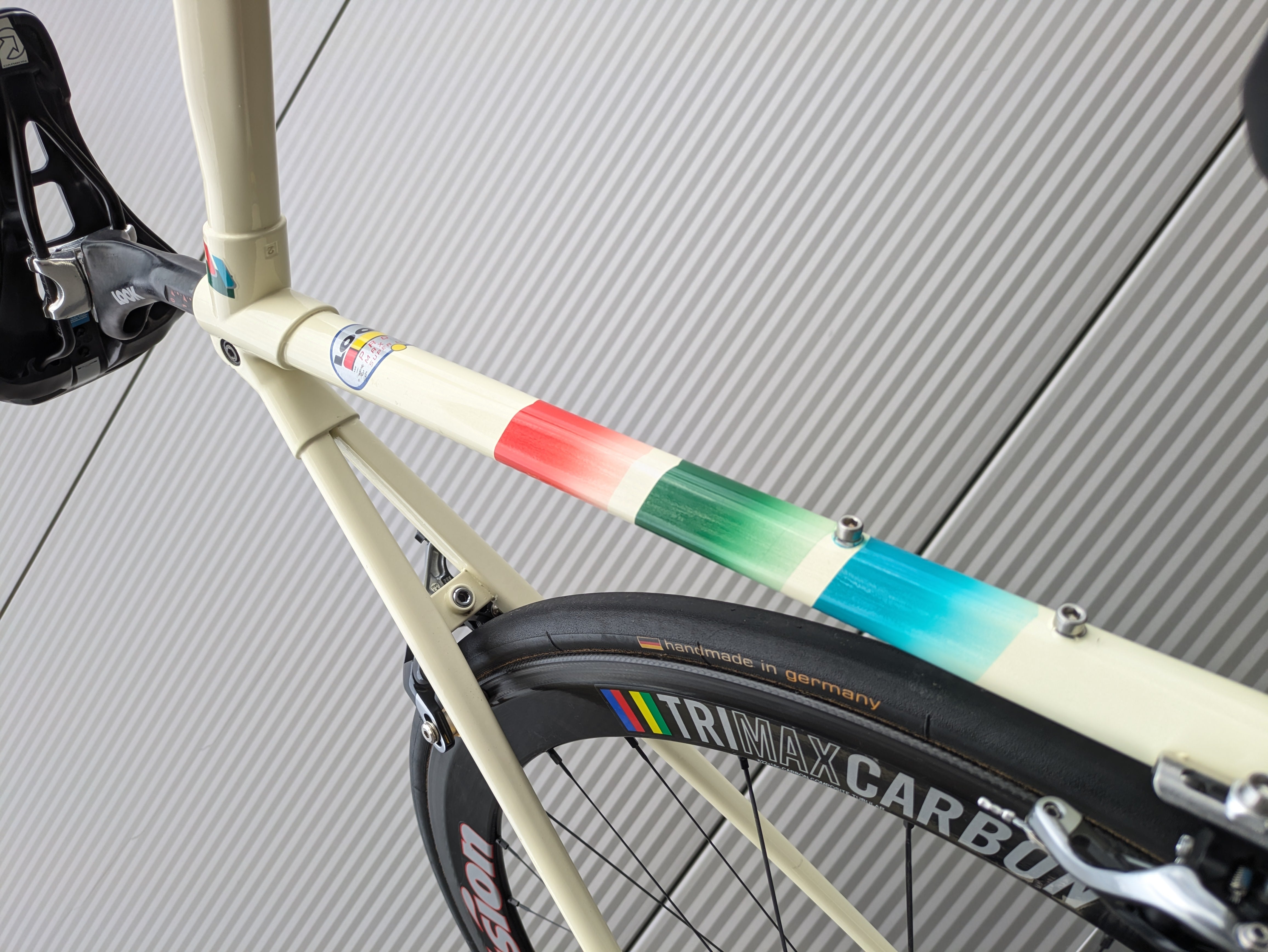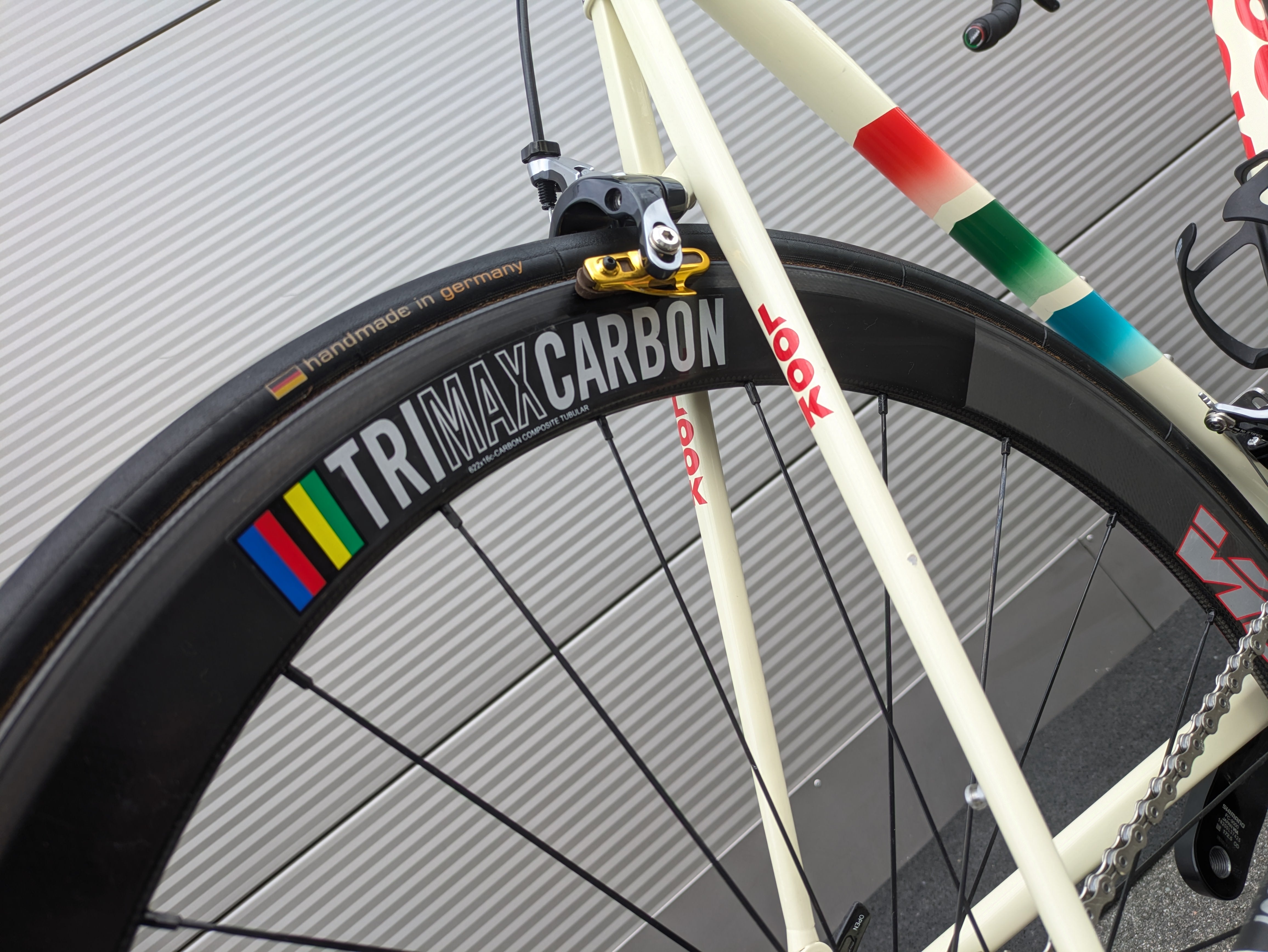 The bike was fully disassembled; all bearings were cleaned and regreased. The Dura-Ace 9000 components were checked and precisely adjusted. The Vision Trimax carbon wheels were inspected, accurately trued and run smoothly.