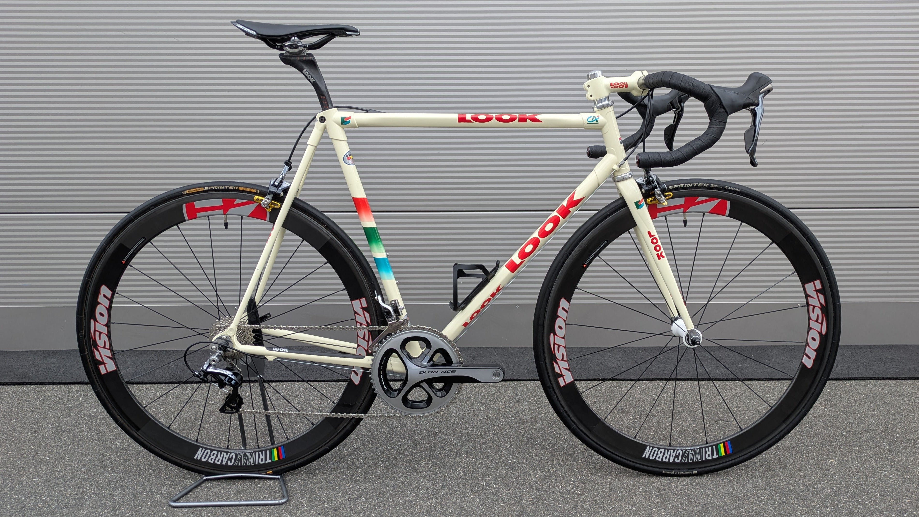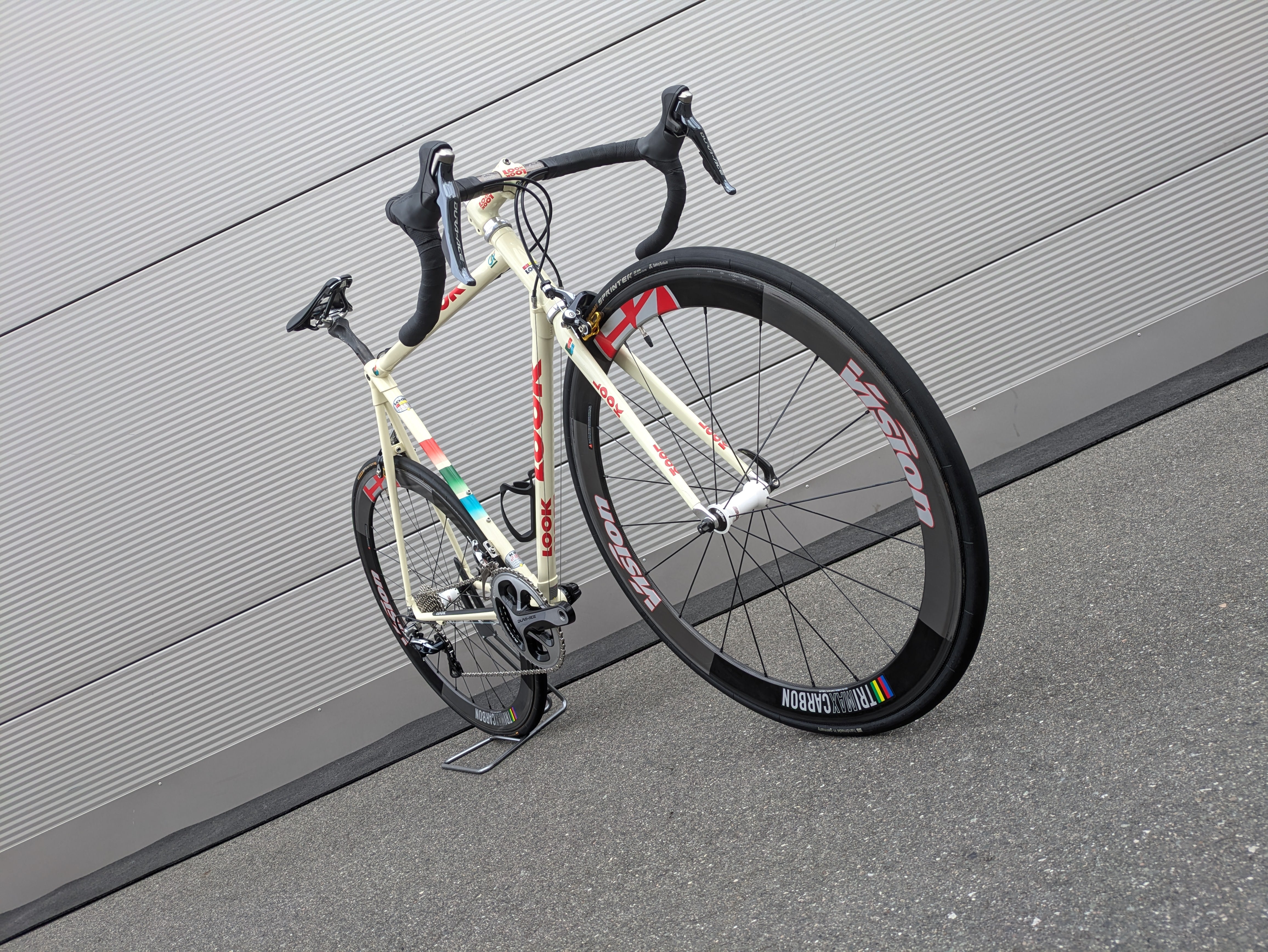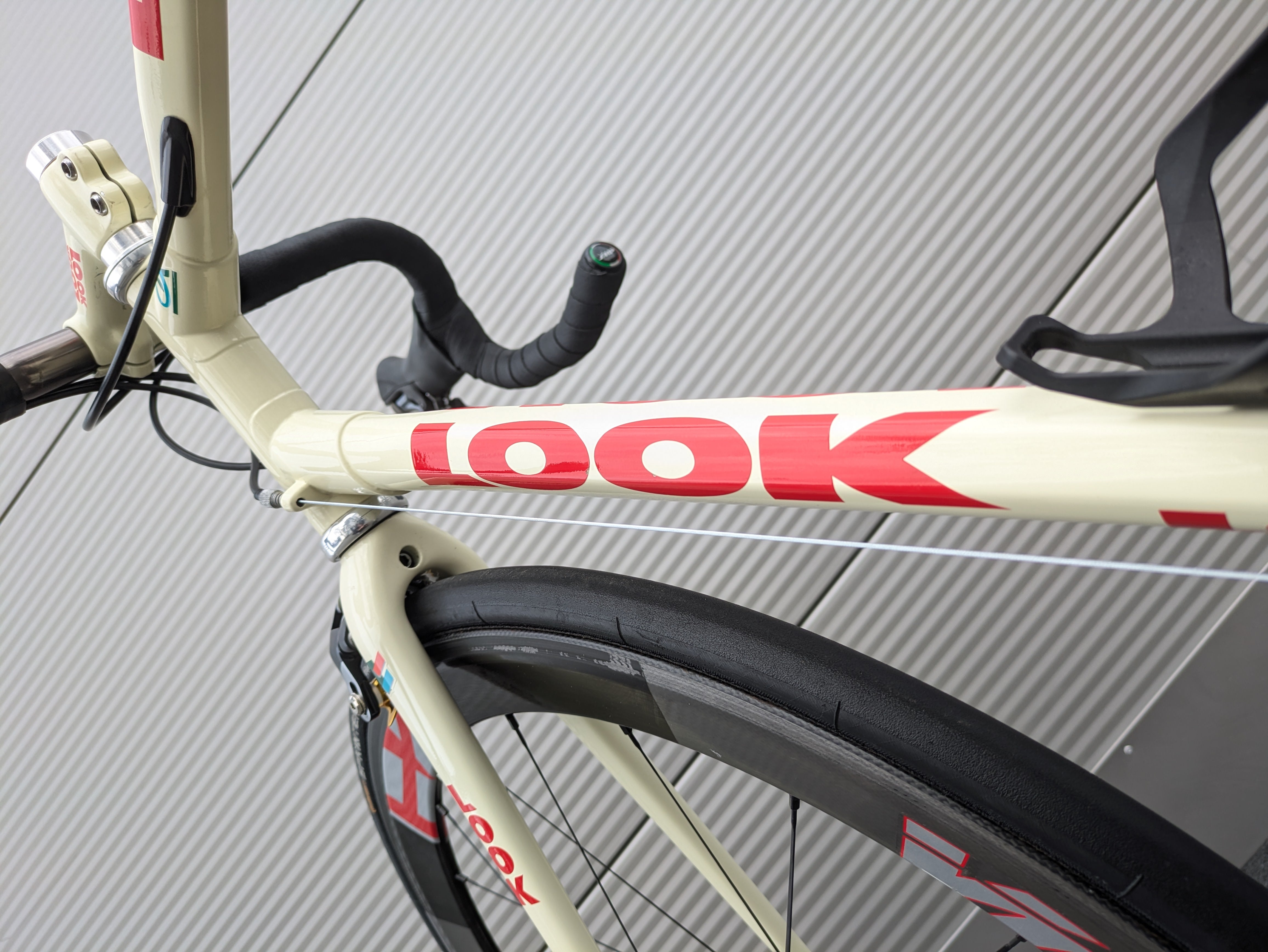 Used. The Look KG281 is in very well-maintained condition and represents a classic Neo-Retro build: an earlier generation Look carbon frame paired with modern high-performance components. The cream-coloured finish is remarkably clean for its age and shows only minimal, age-appropriate signs of use. A few small areas were carefully touched up during refurbishment to preserve the bike’s appearance and longevity.