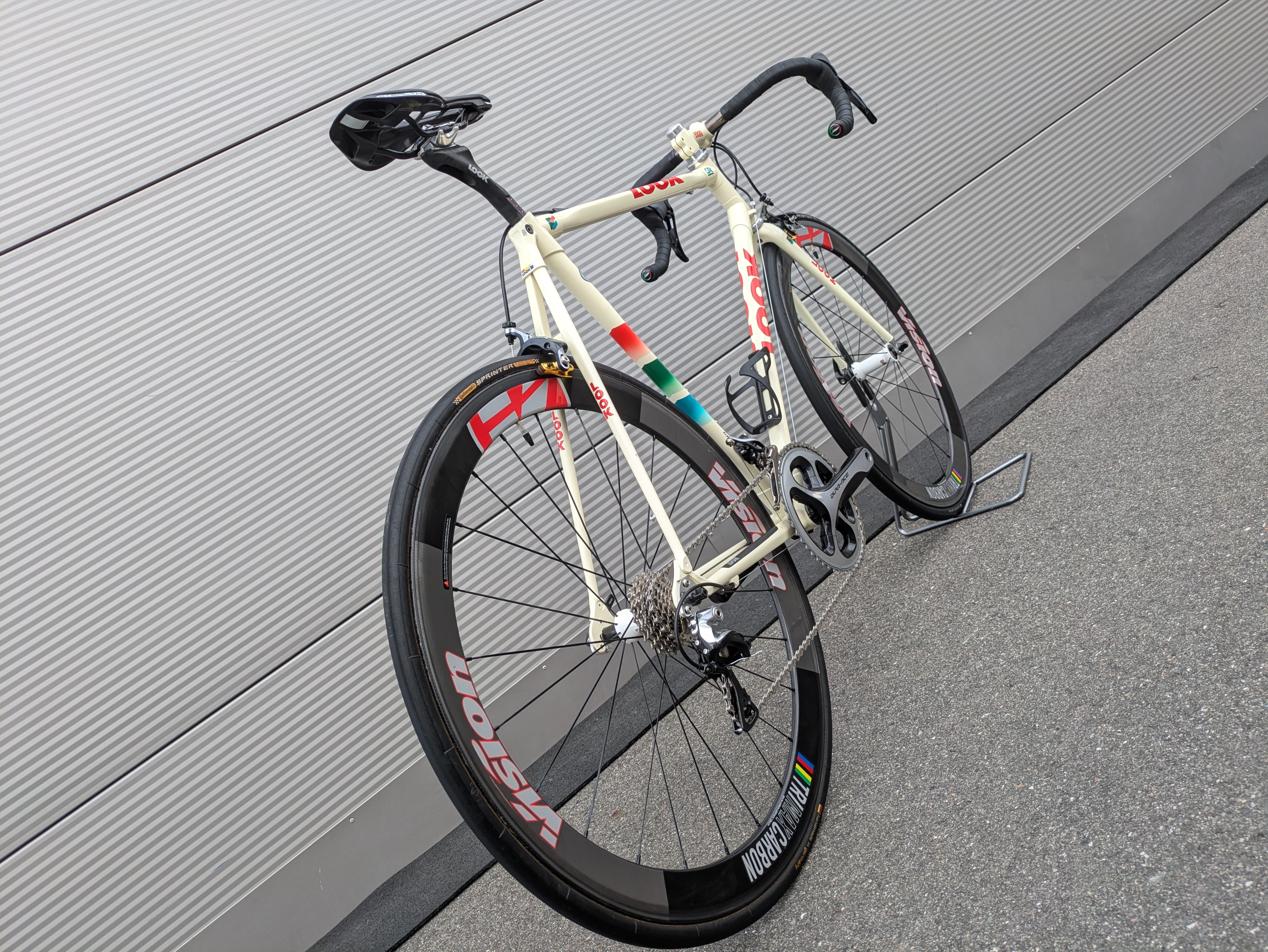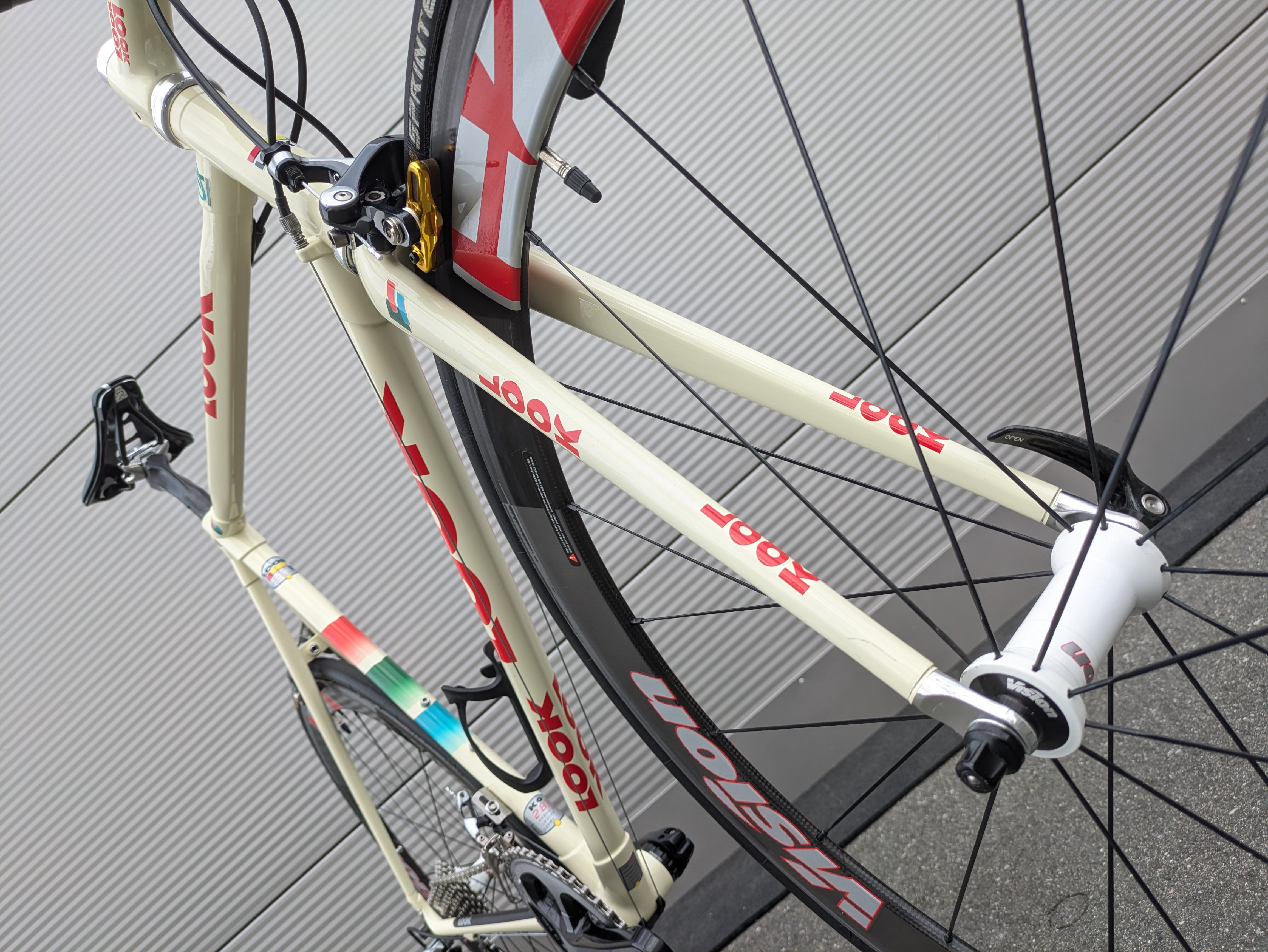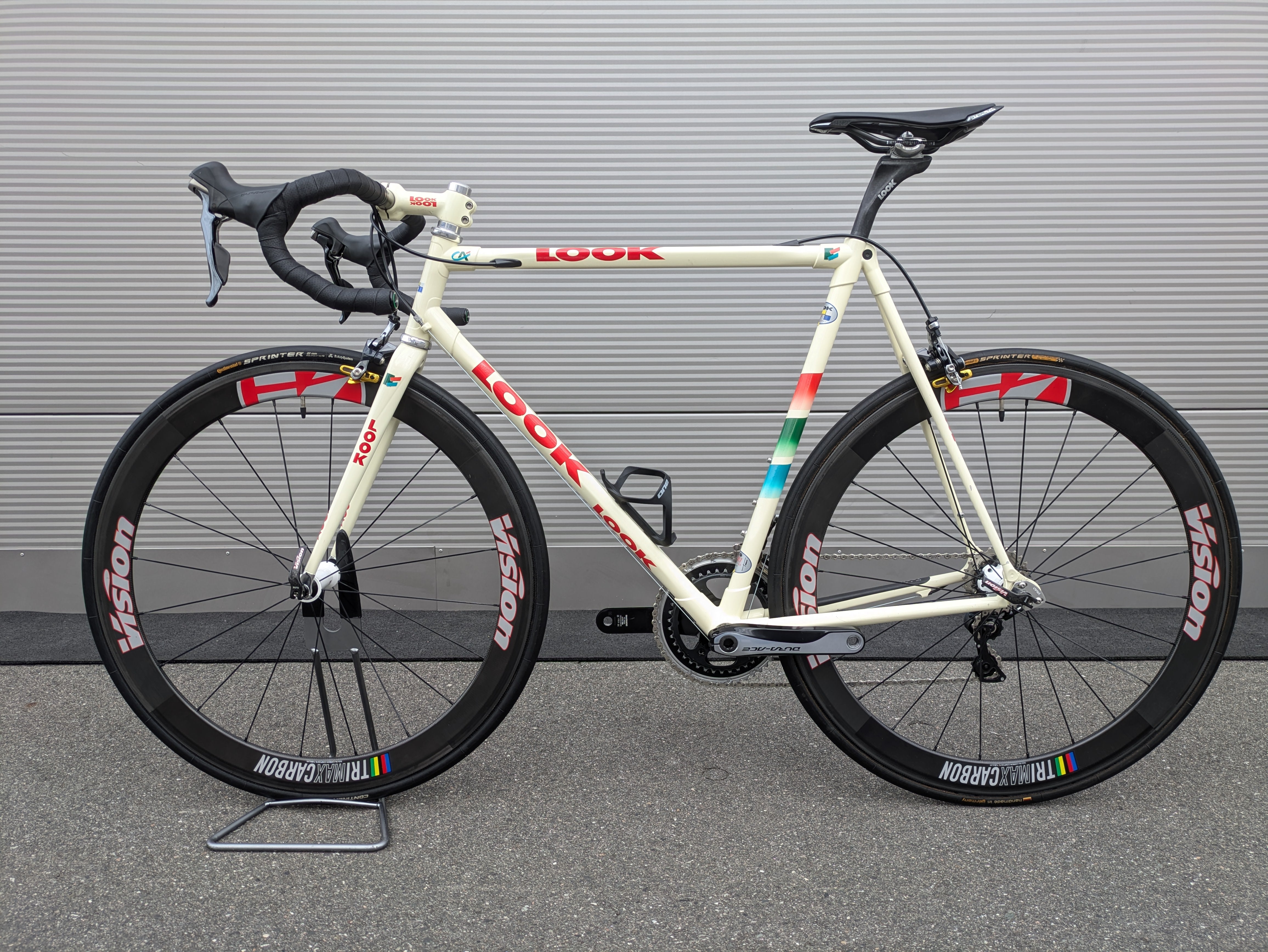 Used. The Look KG281 is in very well-maintained condition and represents a classic Neo-Retro build: an earlier generation Look carbon frame paired with modern high-performance components. The cream-coloured finish is remarkably clean for its age and shows only minimal, age-appropriate signs of use. A few small areas were carefully touched up during refurbishment to preserve the bike’s appearance and longevity.