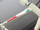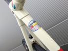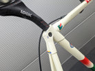 This Look KG281 represents exactly the design philosophy that has defined Look for decades: refined carbon craftsmanship, bold branding and a distinctly sporty character. The frame features an elegant cream-coloured finish with signature Look colour accents. A matching Look-branded stem and a Look carbon seatpost complete the cohesive aesthetic. With its classic tube shapes and modern carbon construction, the frame provides a lightweight, stiff and pleasantly compliant ride.