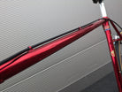 Used. The Milanetti frame is in very well-maintained condition. The red cromovelato finish shows the characteristic depth and brilliance of this technique, along with a few light age-related marks typical for such an extremely thin lacquer layer. A few small areas were carefully touched up during the refurbishment to preserve the overall aesthetic.