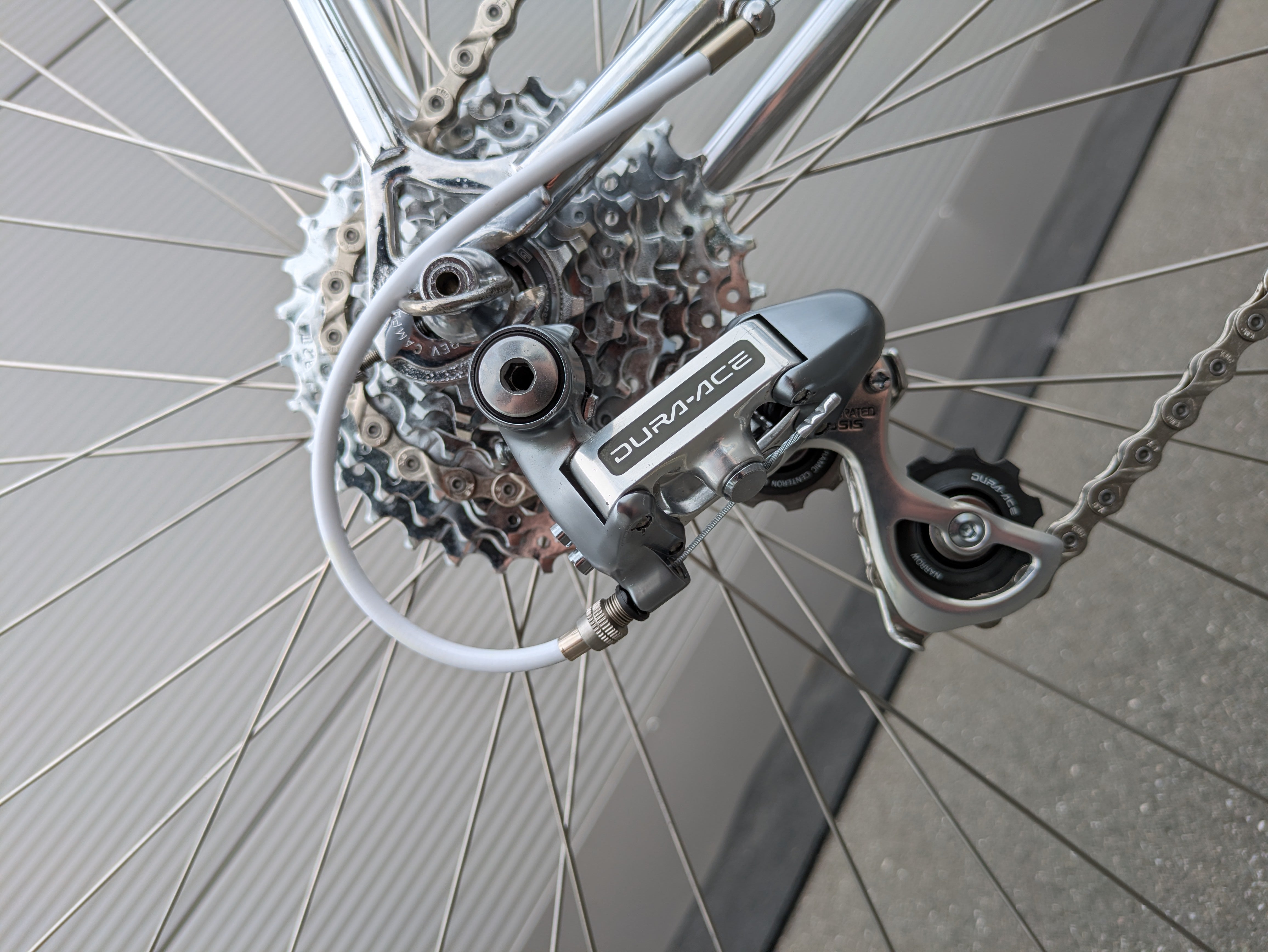 The bike has been carefully restored. It was completely disassembled, all bearings cleaned and re-greased, and rebuilt with meticulous attention to detail. The frame is free from cracks, dents, or deformation. Showing only minimal signs of use, the bike is in well-maintained condition and ready for a safe and enjoyable ride at classic racing bike standards.