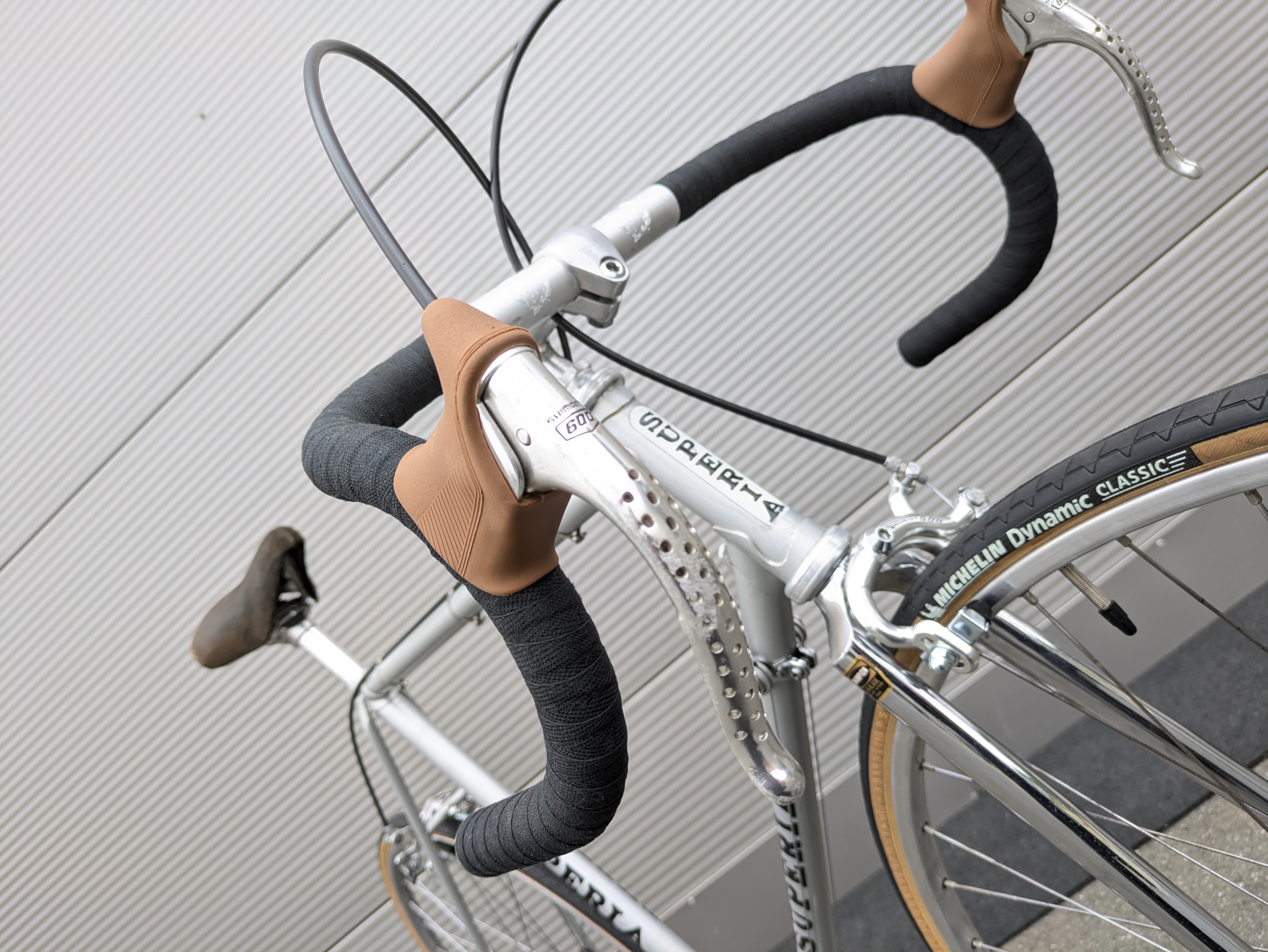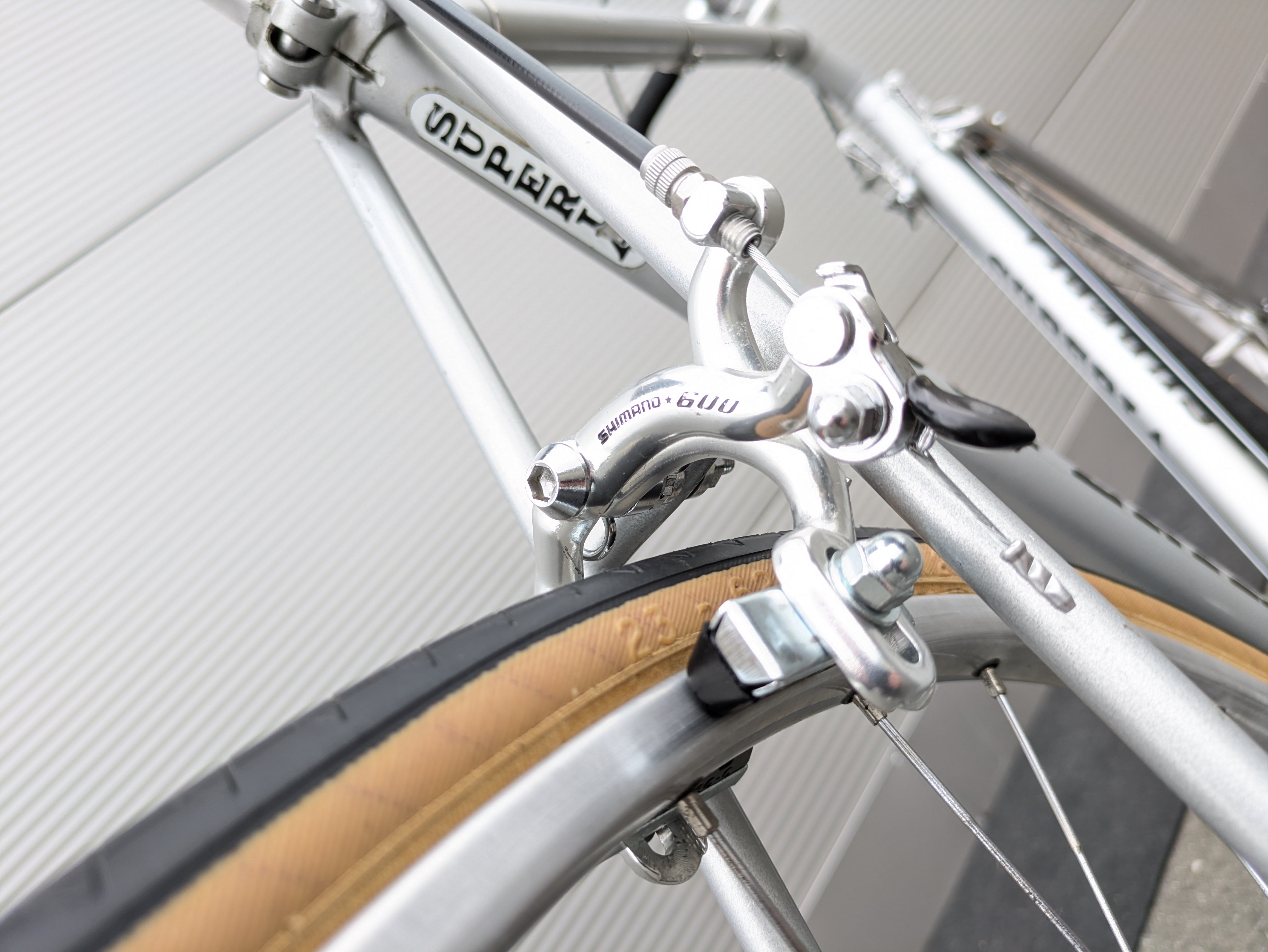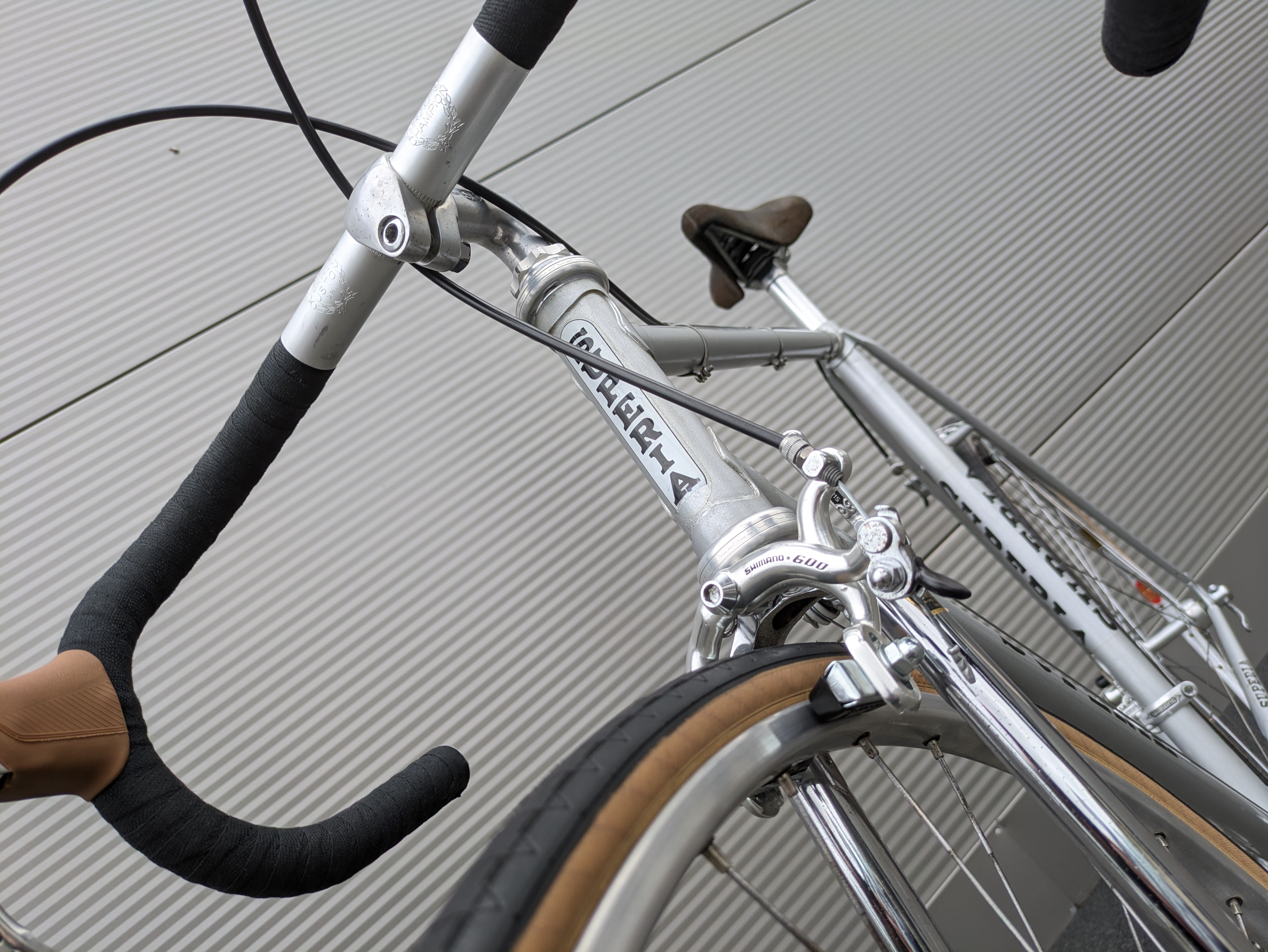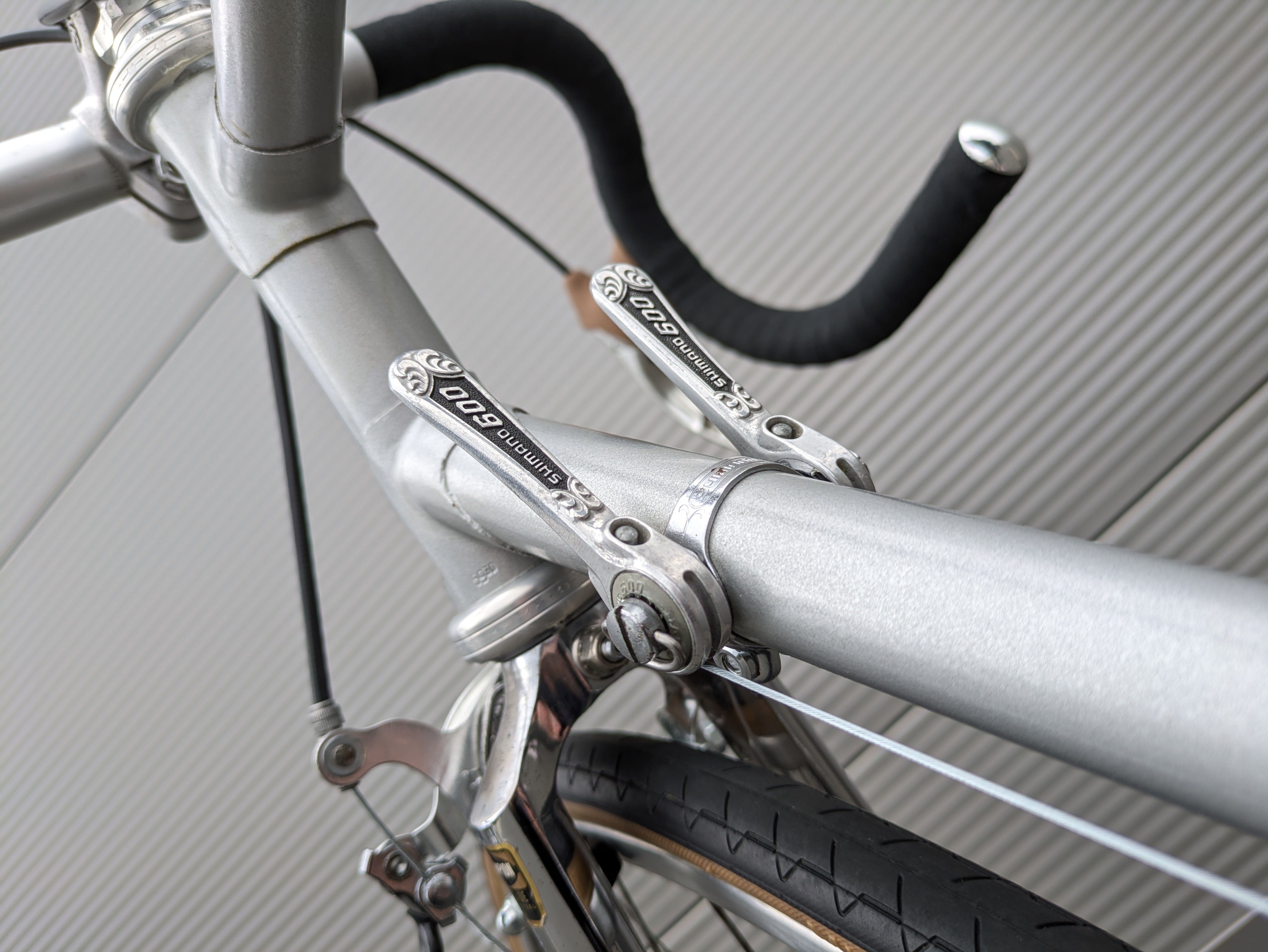It is equipped with a complete Shimano 600 Arabesque groupset, known for its precise shifting and elegant detailing. The combination of Japanese engineering and Belgian craftsmanship creates a reliable and balanced vintage racer with timeless appeal. Every detail reflects quality and care, staying true to the brand’s authentic spirit.