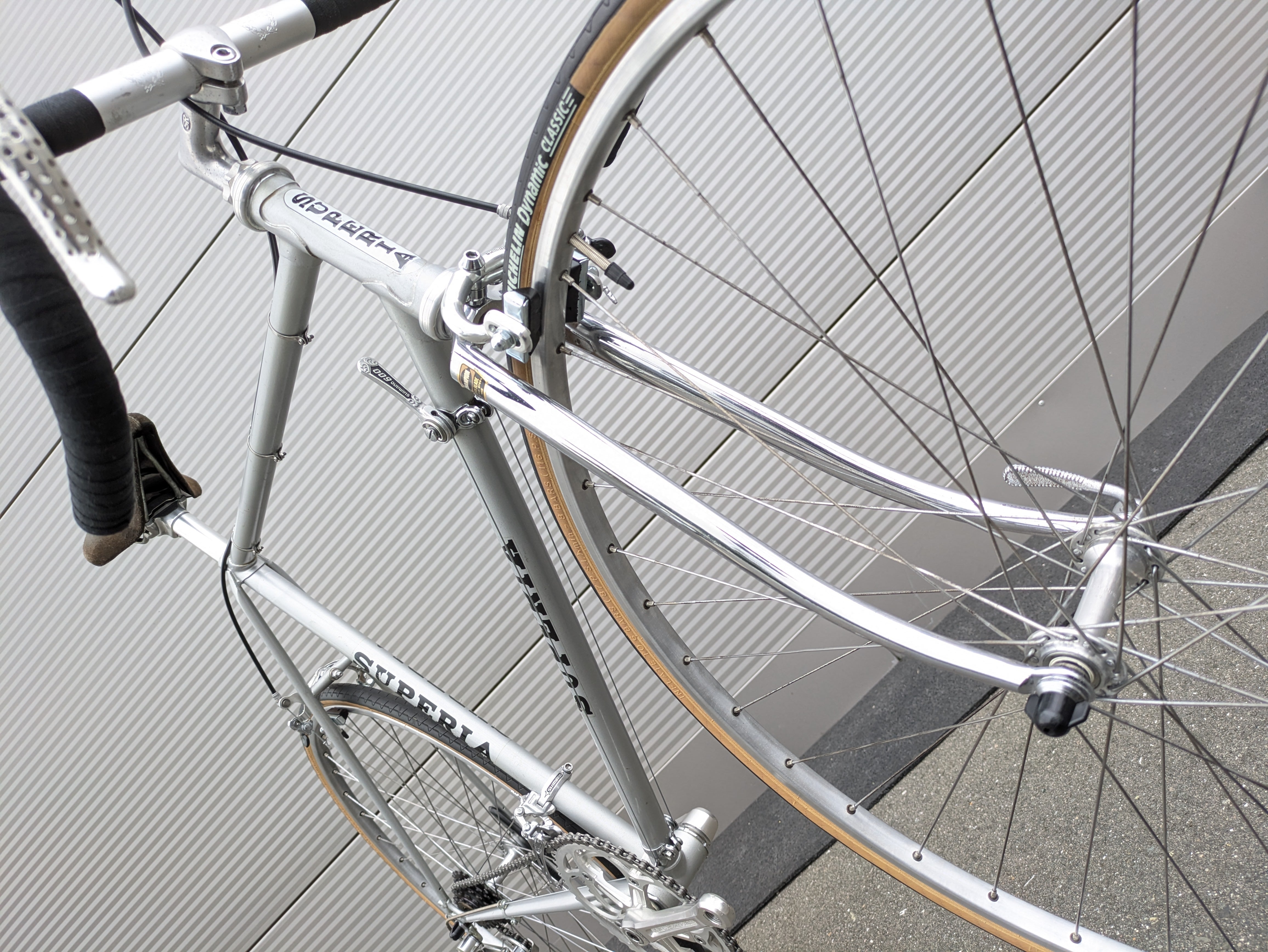 This early-1980s Superia represents the straightforward and honest character of Belgian road racing. Built from Tange steel tubing and finished in its original silver tone, the frame combines stability with classic geometry for a confident and comfortable ride.