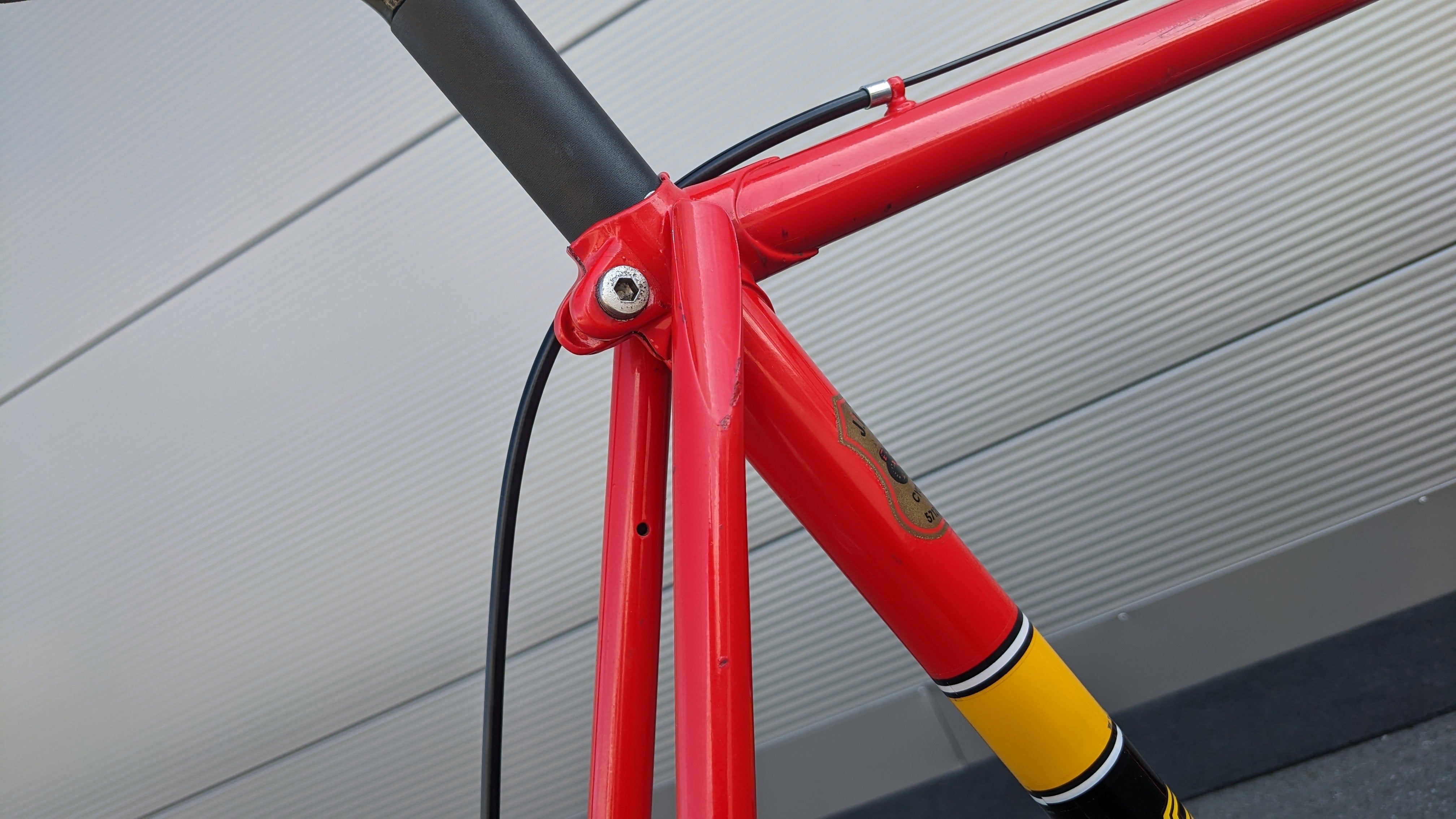 Expertly restored and fitted with new wearing parts, this vintage racing bike's frame is free of dents and cracks. While the paint shows some signs of wear, it has been touched up to maintain its aesthetic appeal. With its revamped condition, this retro racing bike is primed for your next excursion.