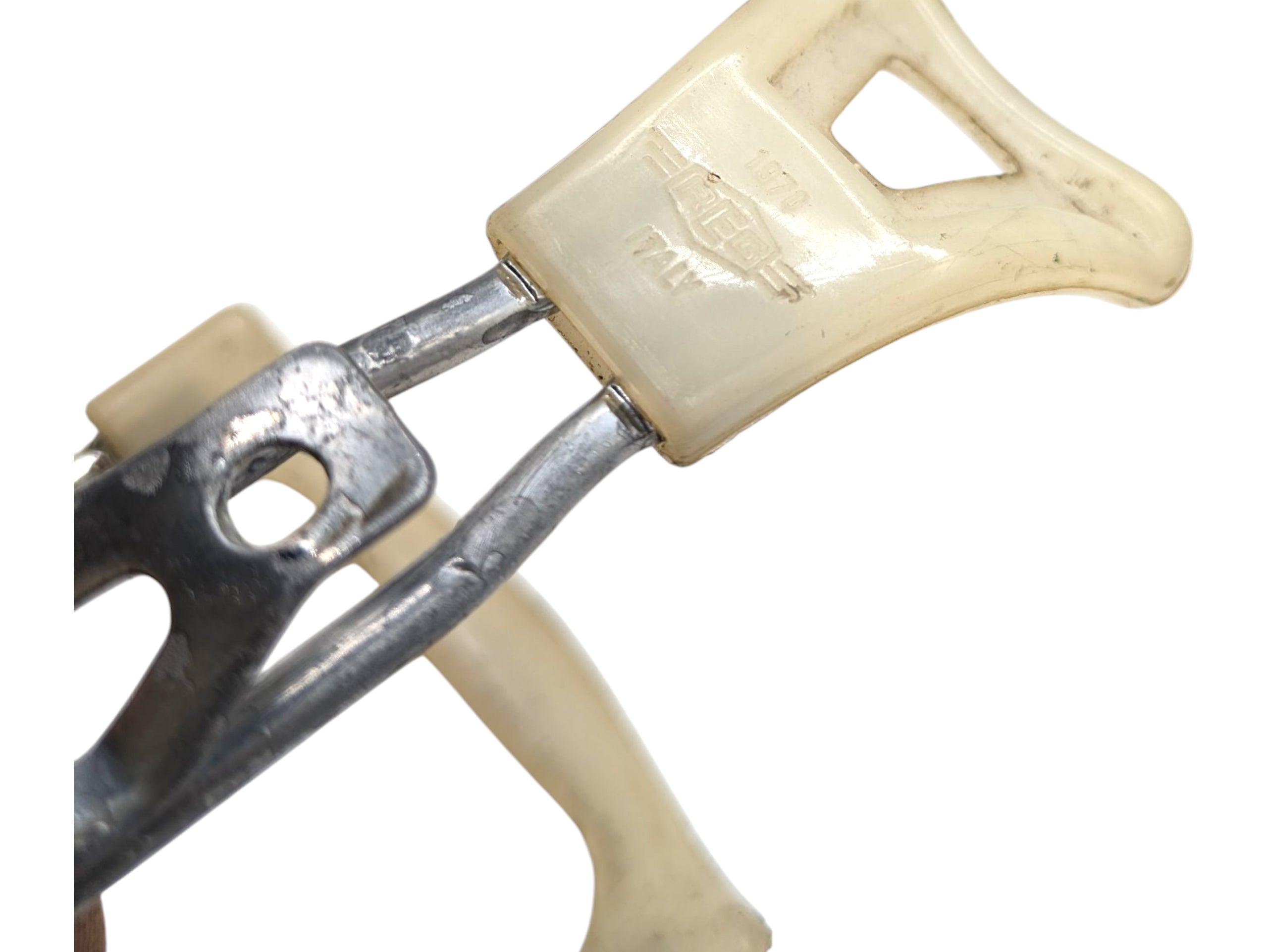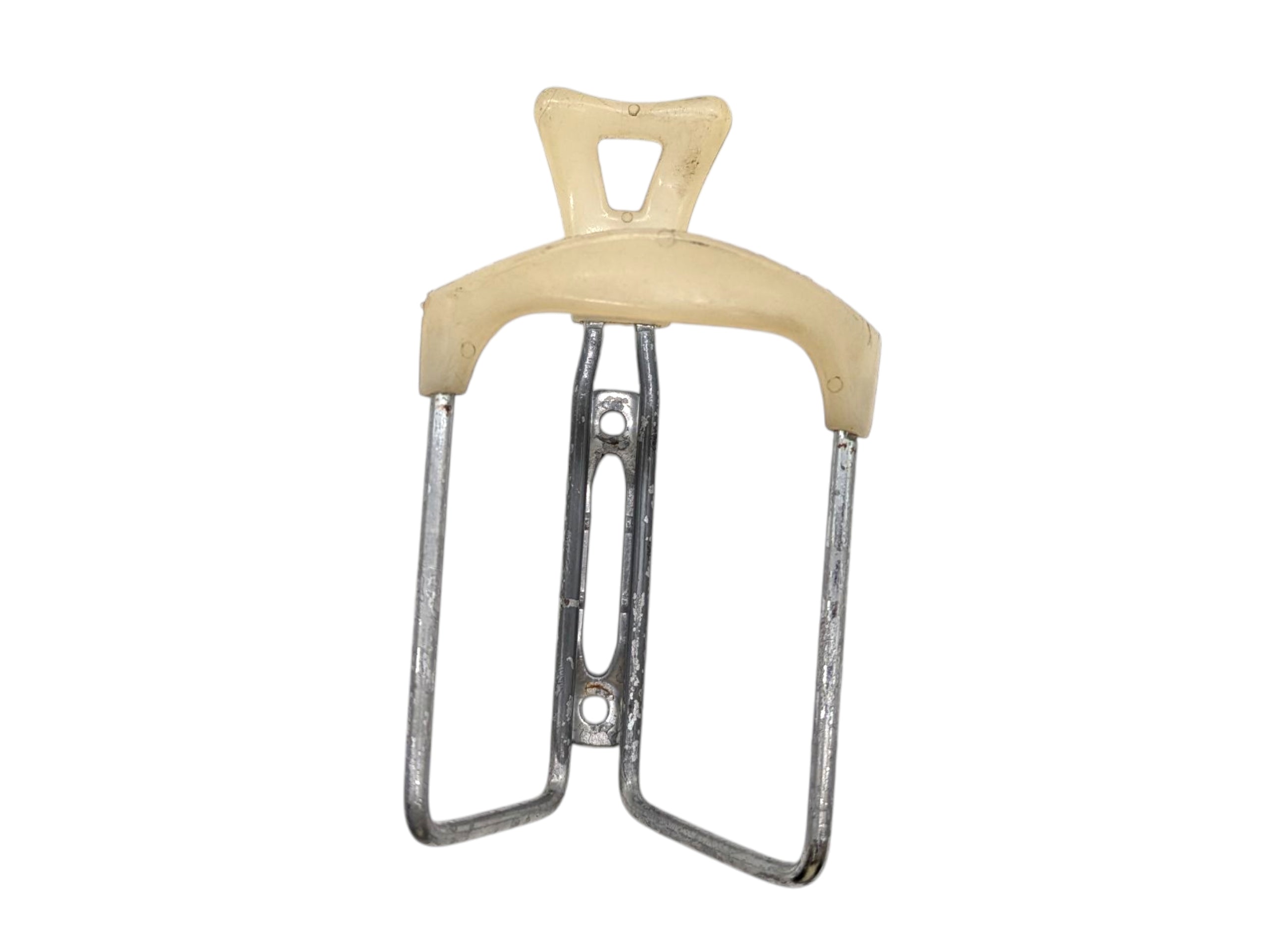 1970s REG Italia bottle cage in silver with a light plastic insert. A charming and period-correct Italian piece — great for vintage restorations where classic details matter.