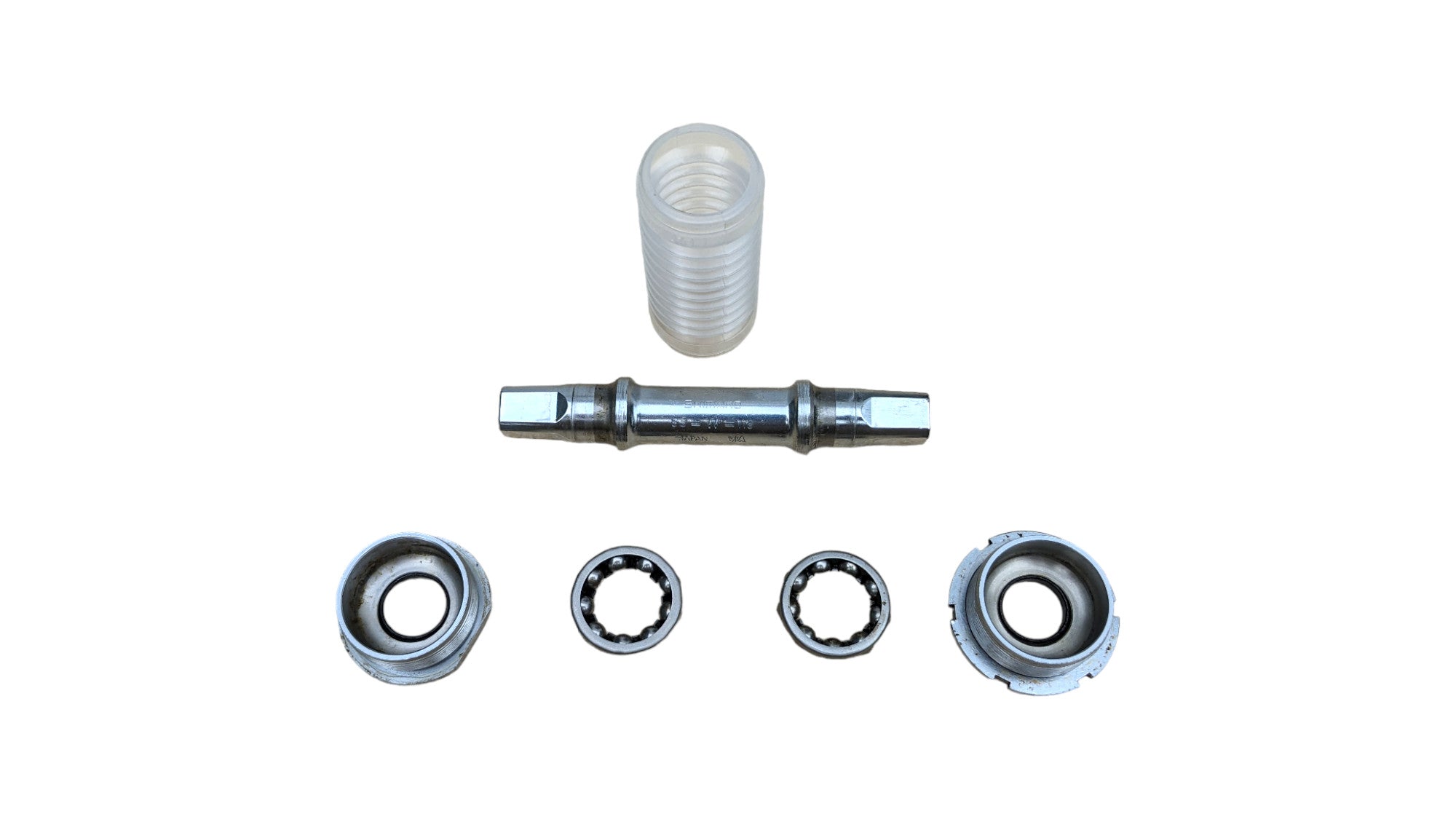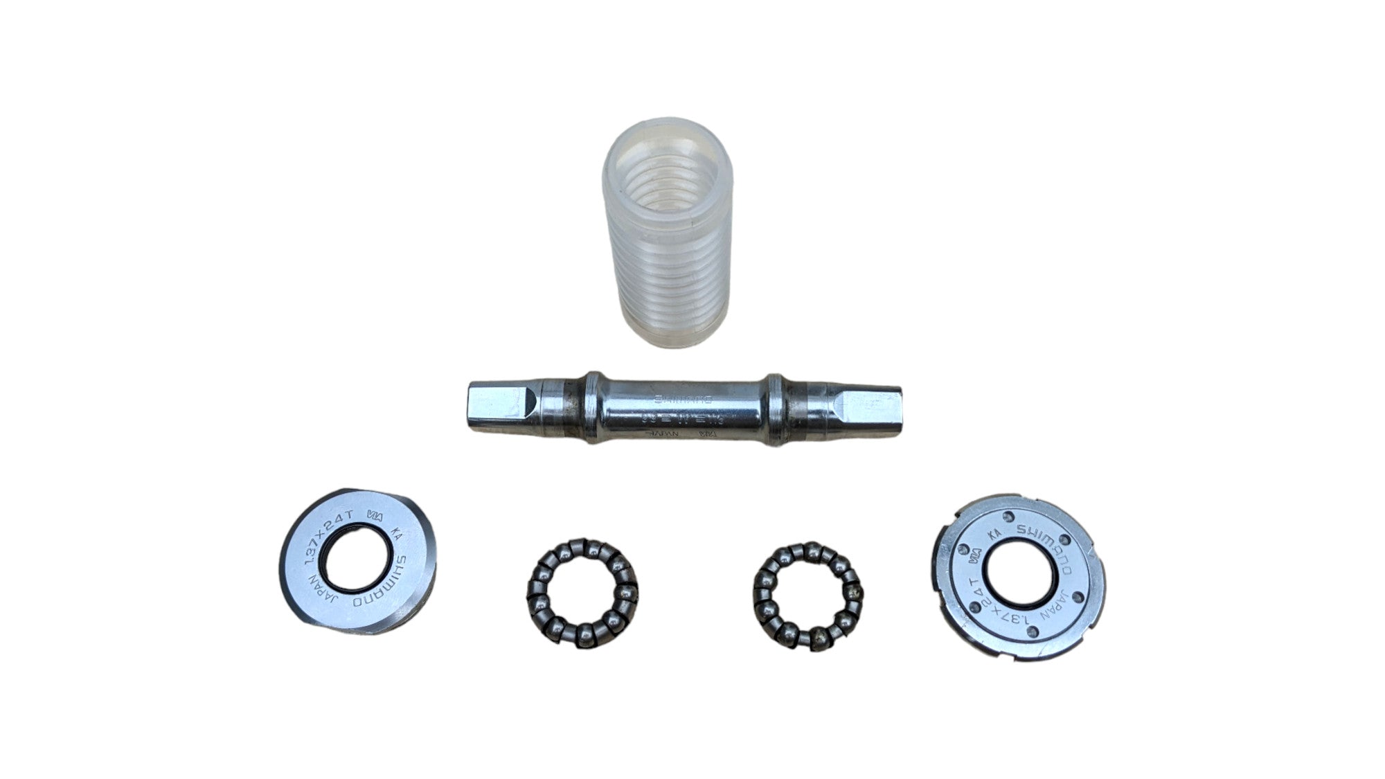 Shimano vintage bottom bracket, 1,37×24 BSA threading, 68 mm shell width, 116 mm axle. Used, cleaned and fully functional. A classic English-threaded unit — ideal for original road frames and period-correct drivetrain restorations.