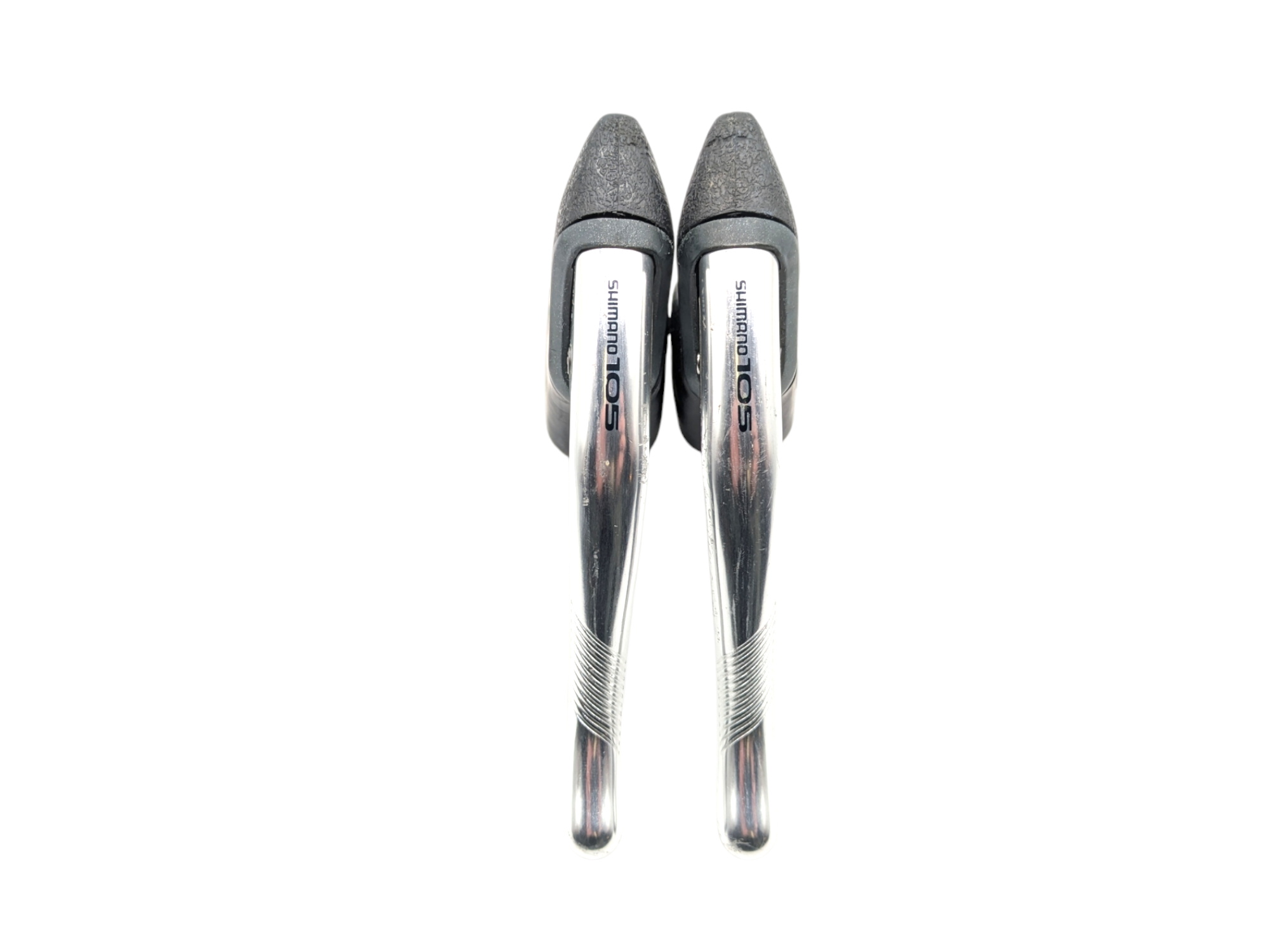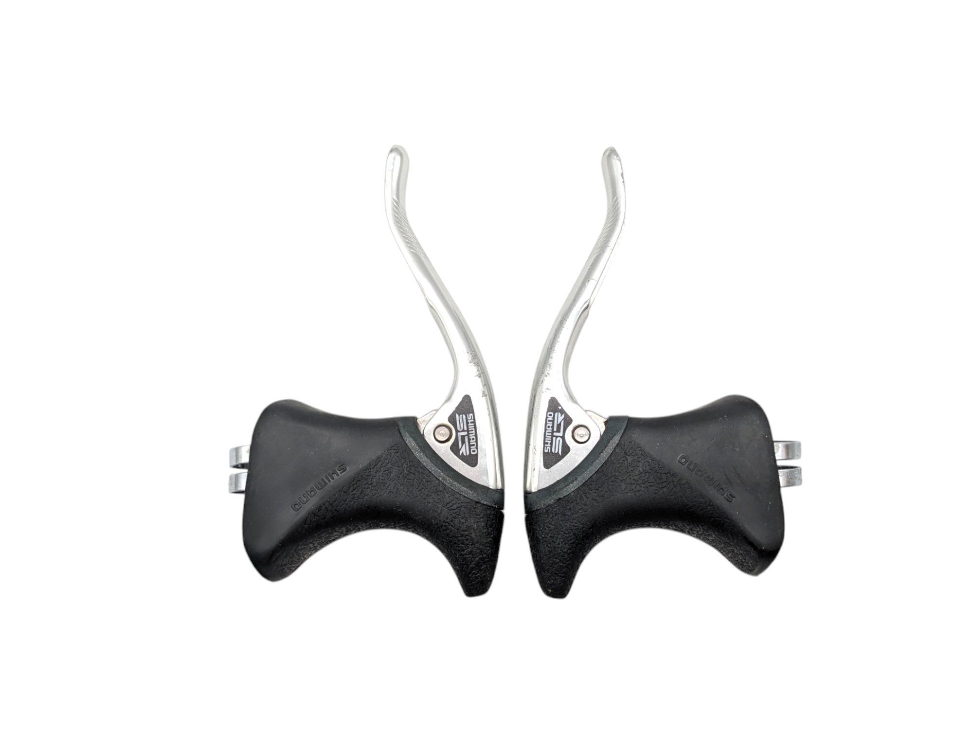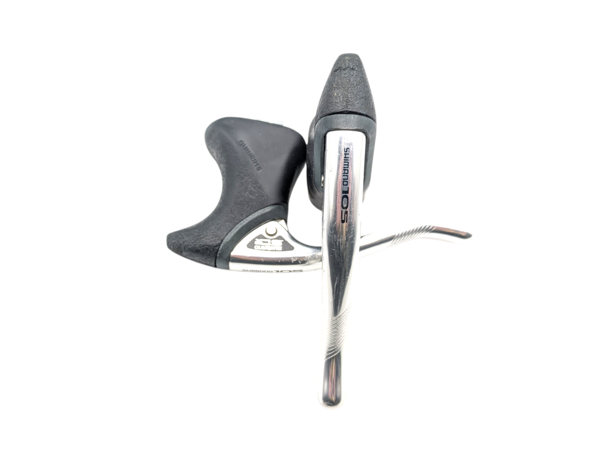Shimano 105 BL-1051 brake levers pair, vintage aero-style design. Japanese-made and built for reliable lever performance. Suitable for restoration of classic road bikes or builds needing authentic 105 components.