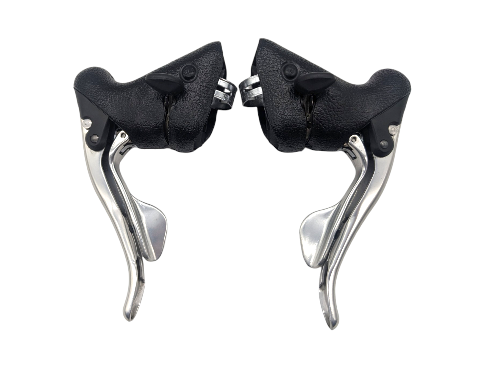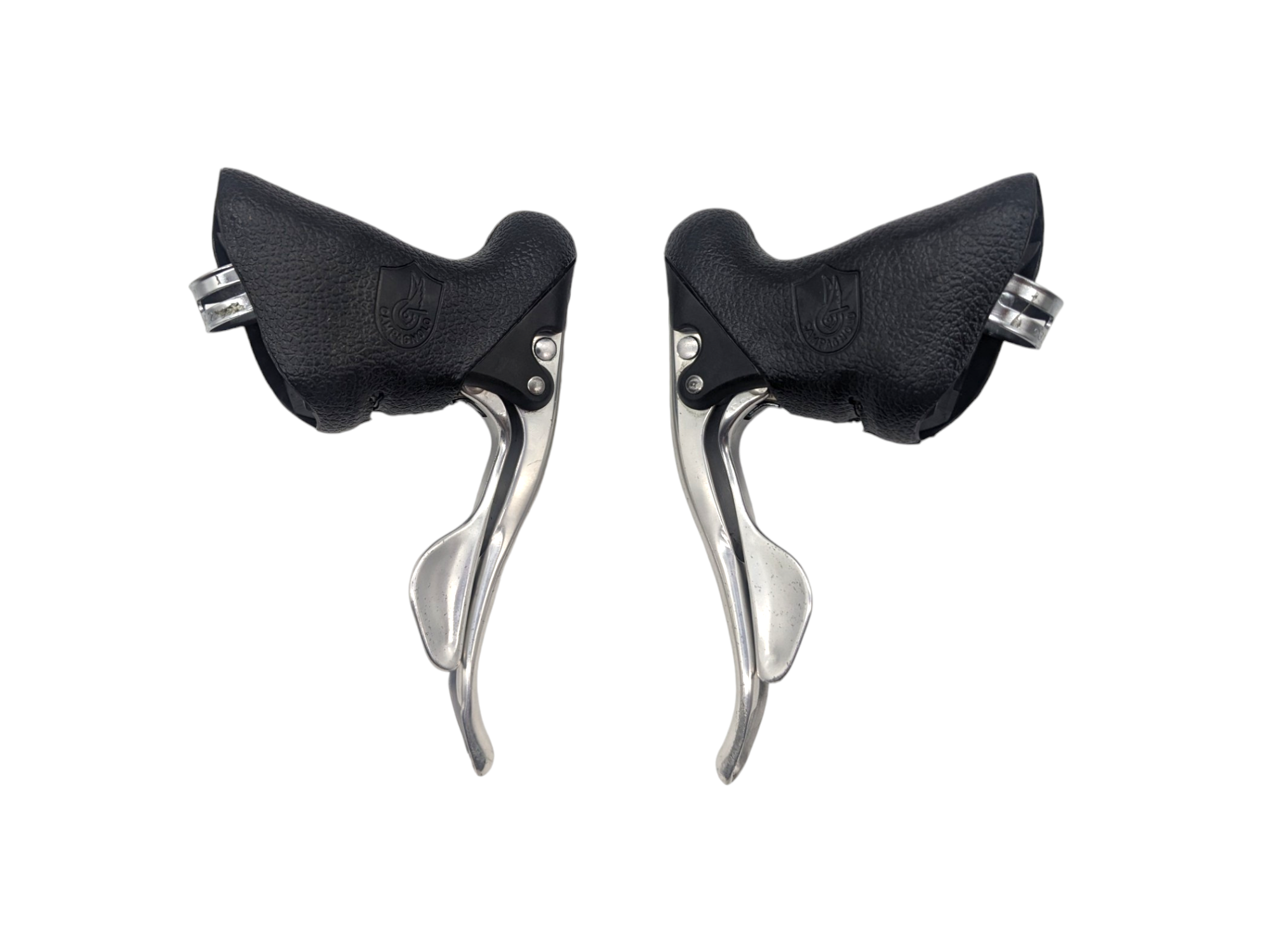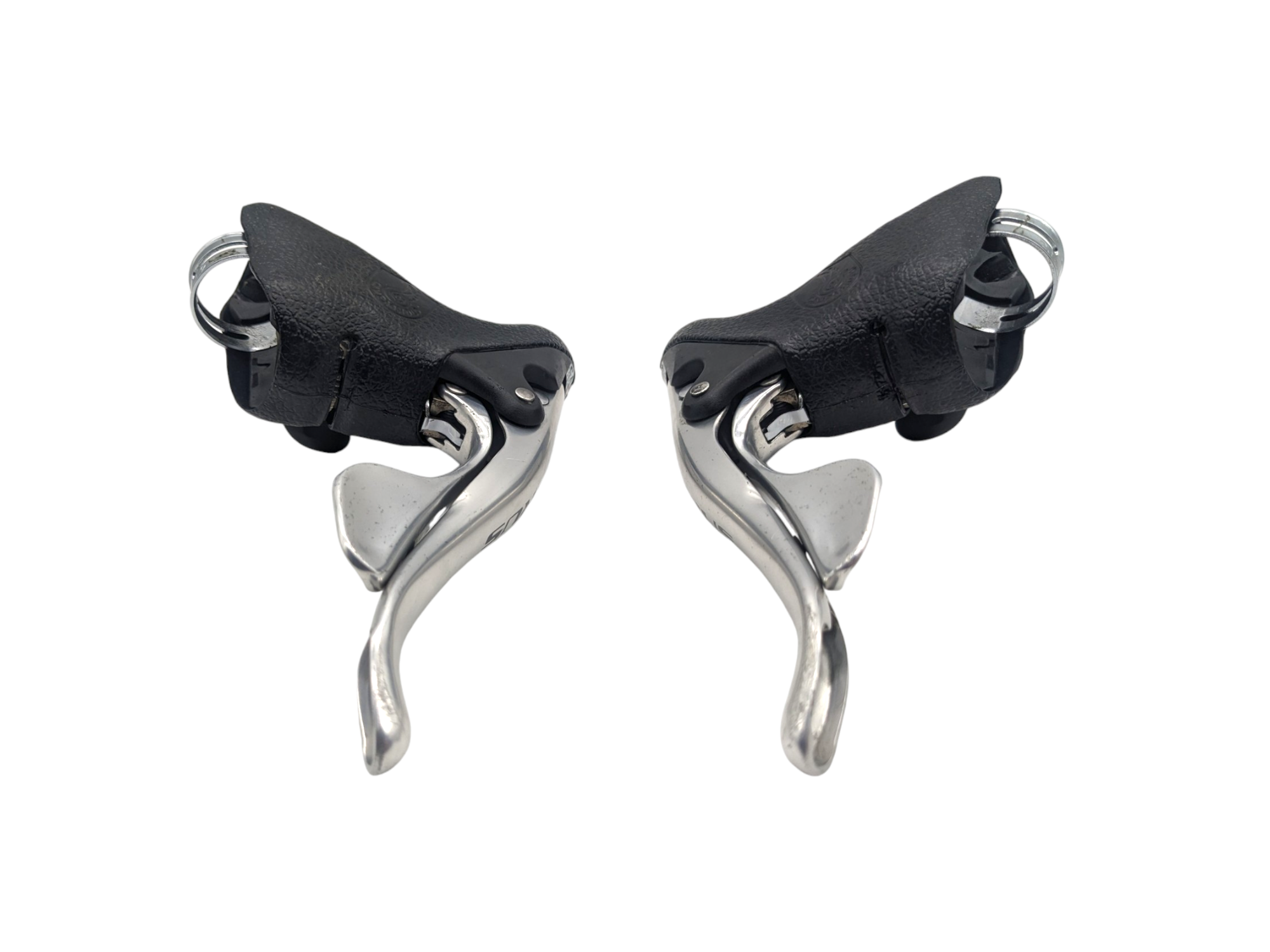 Campagnolo Chorus Ergopower STI brake/shift levers with new hoods. Fully restored and ready to use — ideal for vintage road builds seeking reliable Italian integrated controls.