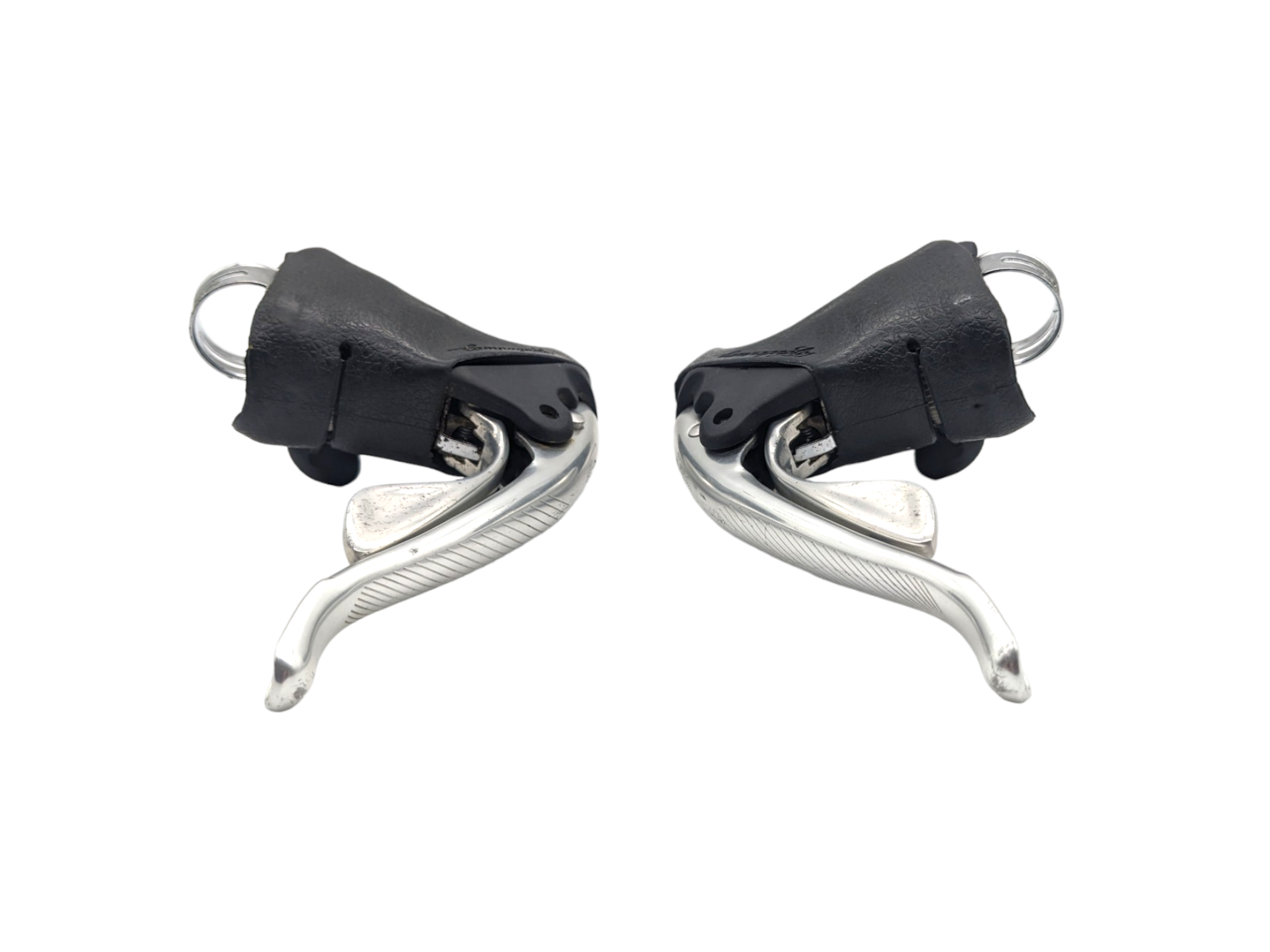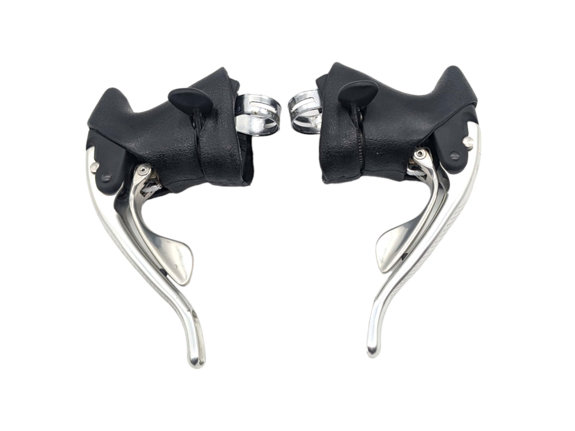 Campagnolo Record EC-12RE ErgoPower STI levers (1993), 2×8 compatible and fully serviced. Classic Italian ergonomics and reliable shifting for vintage road builds.