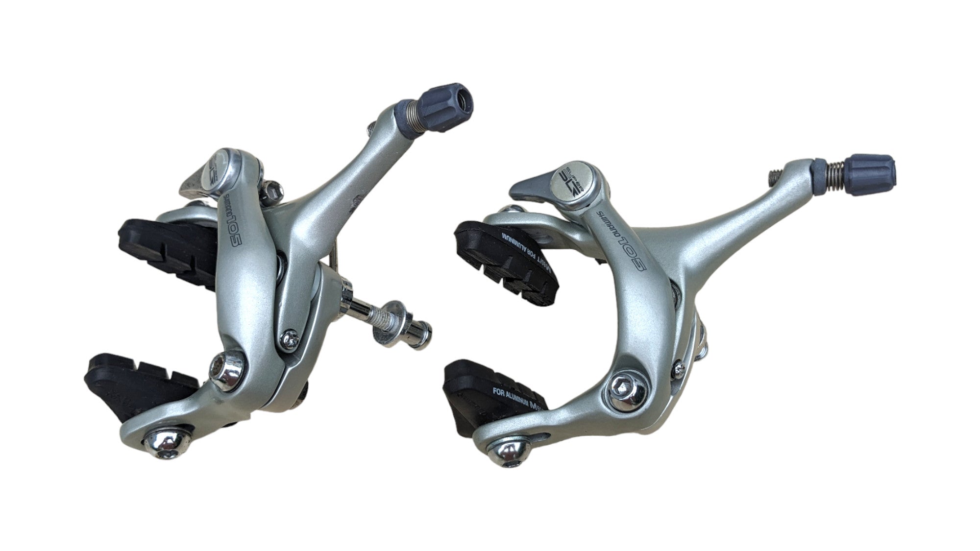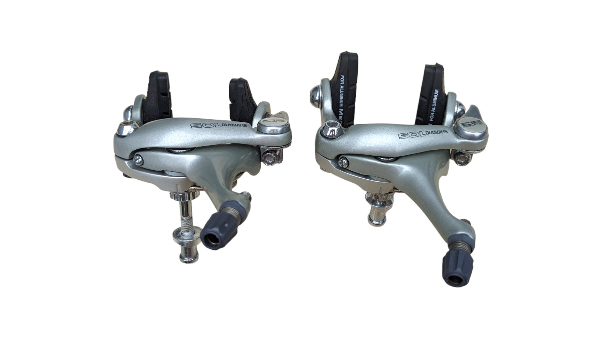 Shimano 105 BR-1055 brakes. Used, cleaned and fully functional. Dual-pivot calipers from the early 105 series — reliable, versatile, and ideal for vintage road bike restorations.