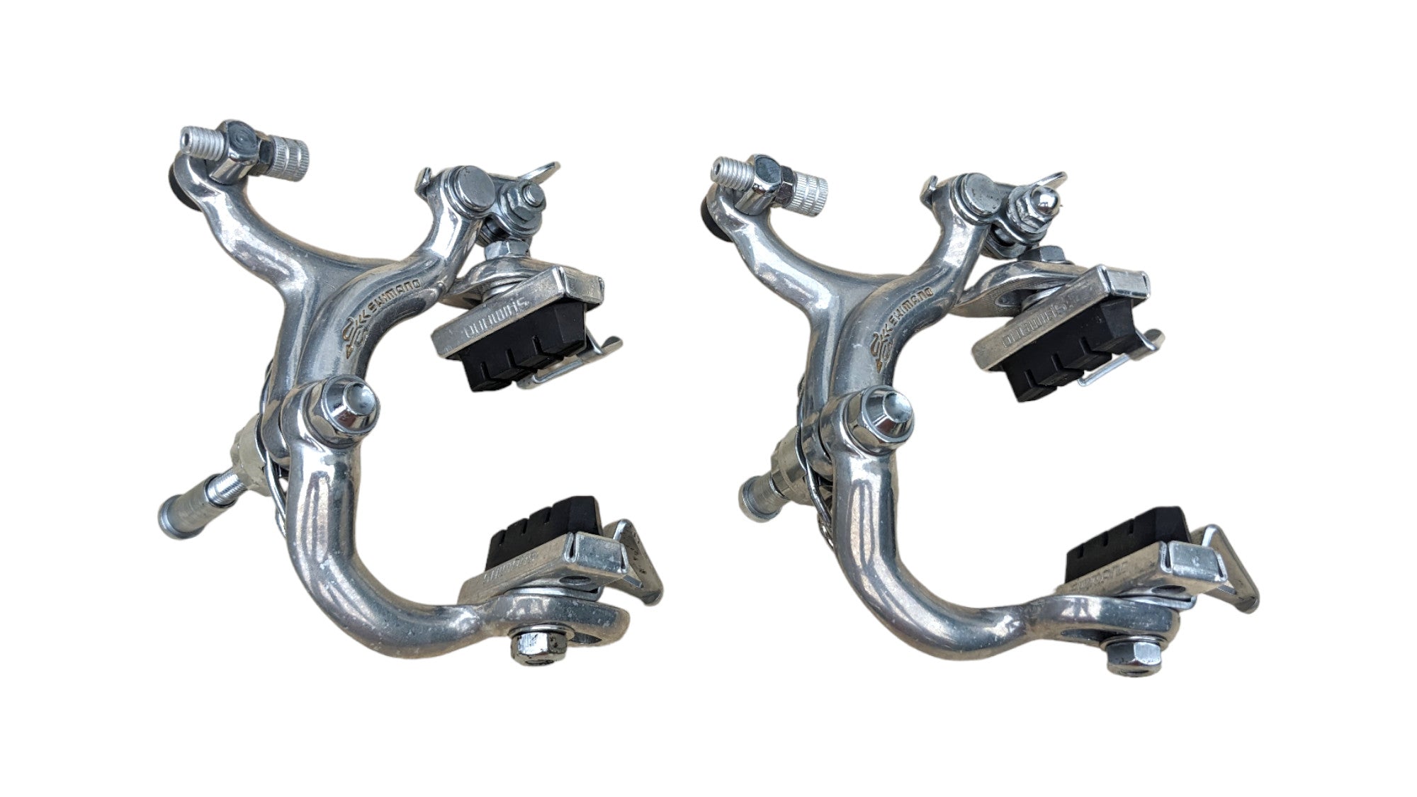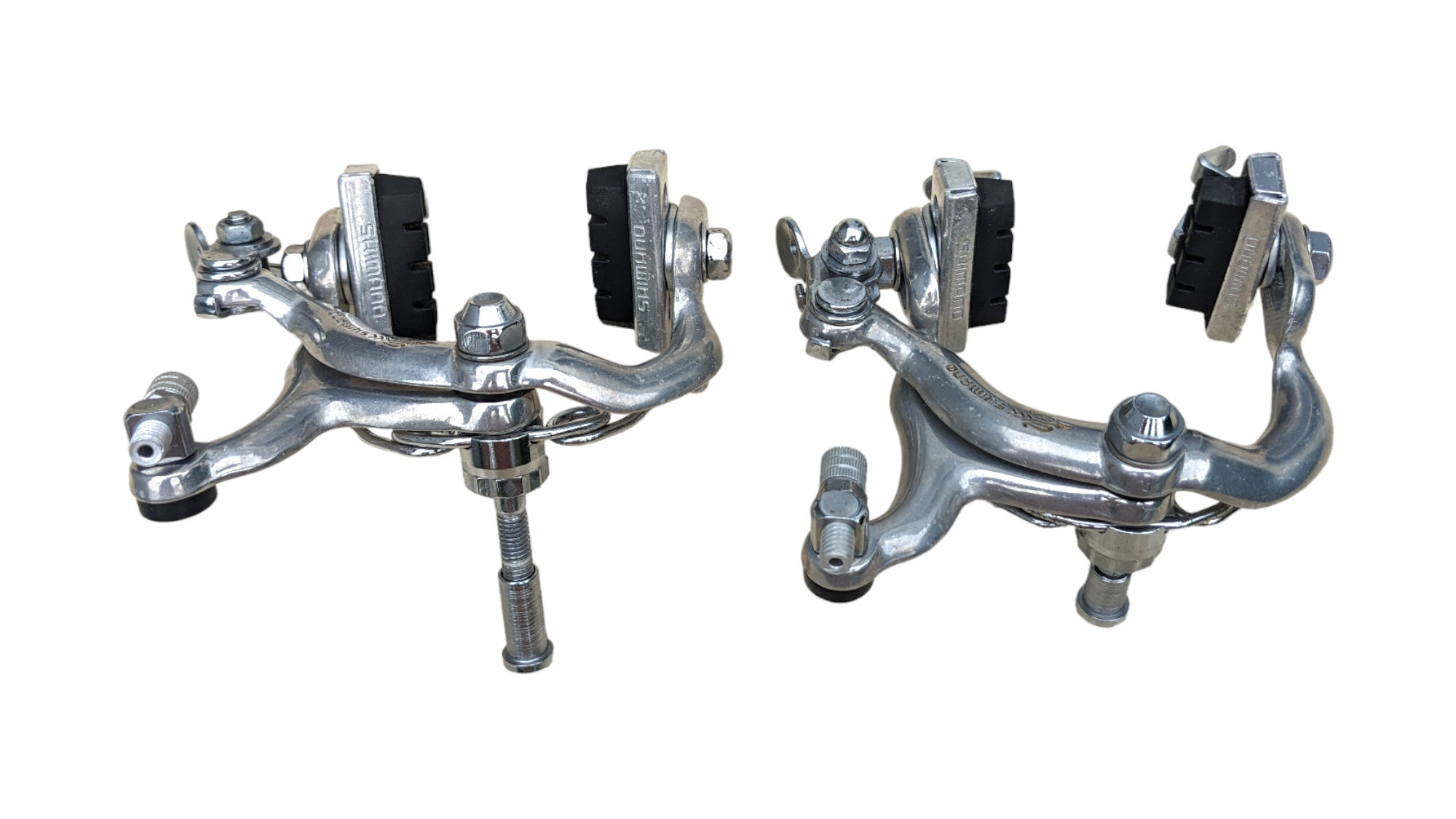 Shimano 105 Golden Arrow BR-S105 brakes. Used, cleaned and fully functional. Classic Japanese single-pivot calipers from the early 105 Golden Arrow line — elegant and reliable for vintage builds.