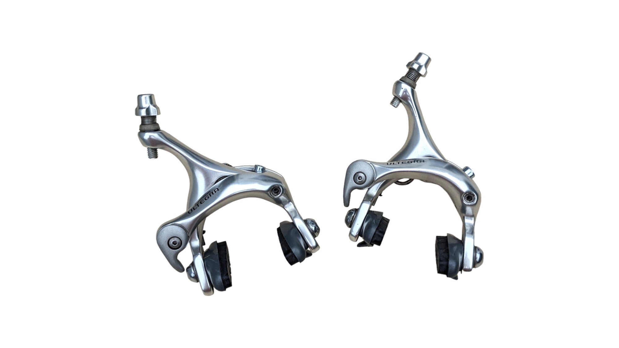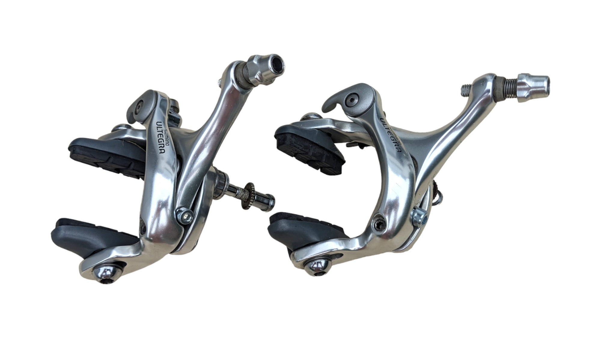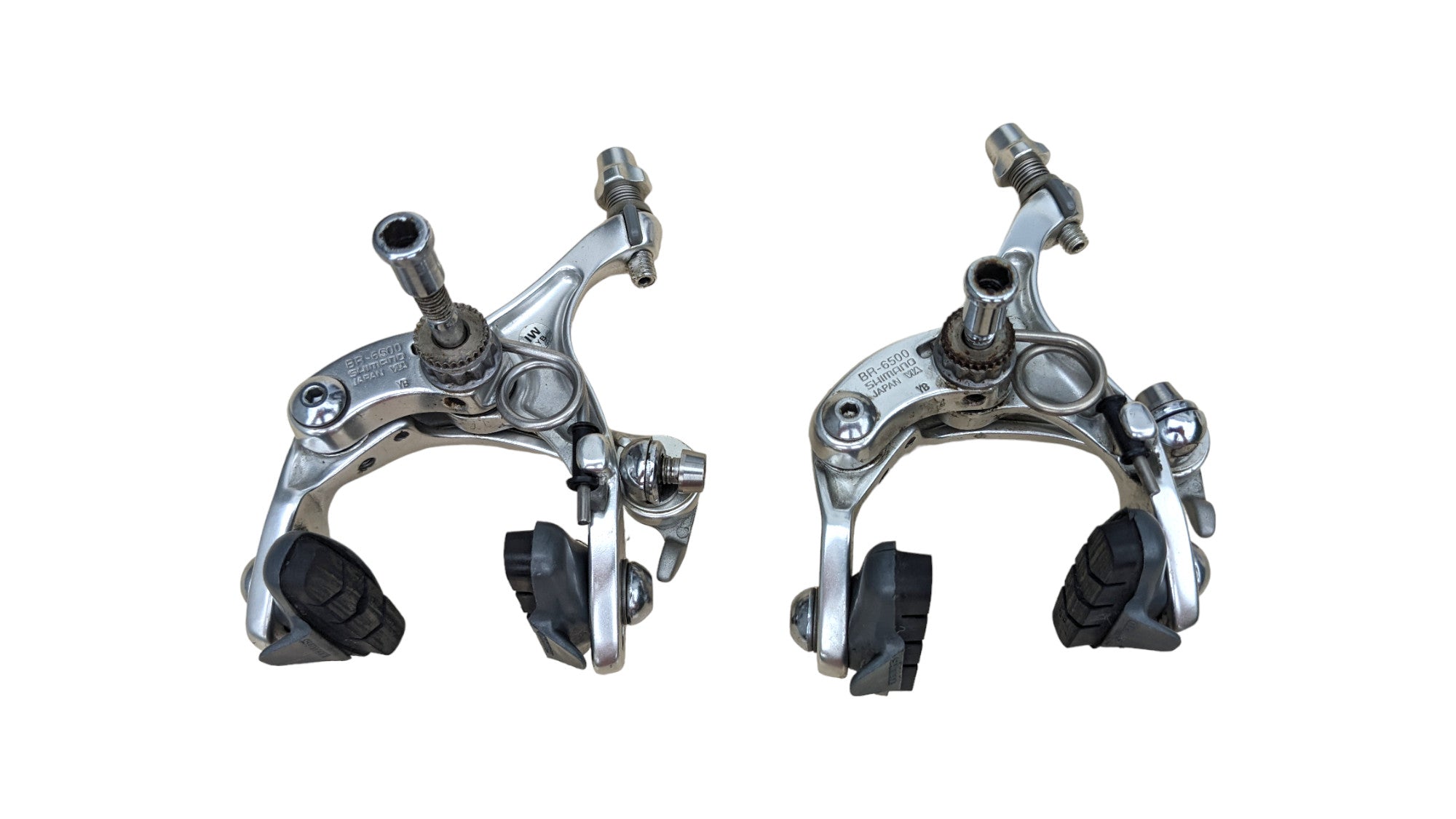 Shimano Ultegra BR-6500 brakes. Used, cleaned and fully functional. High-quality dual-pivot calipers from the 6500 Ultegra era — strong stopping power and classic styling for period road bike builds.