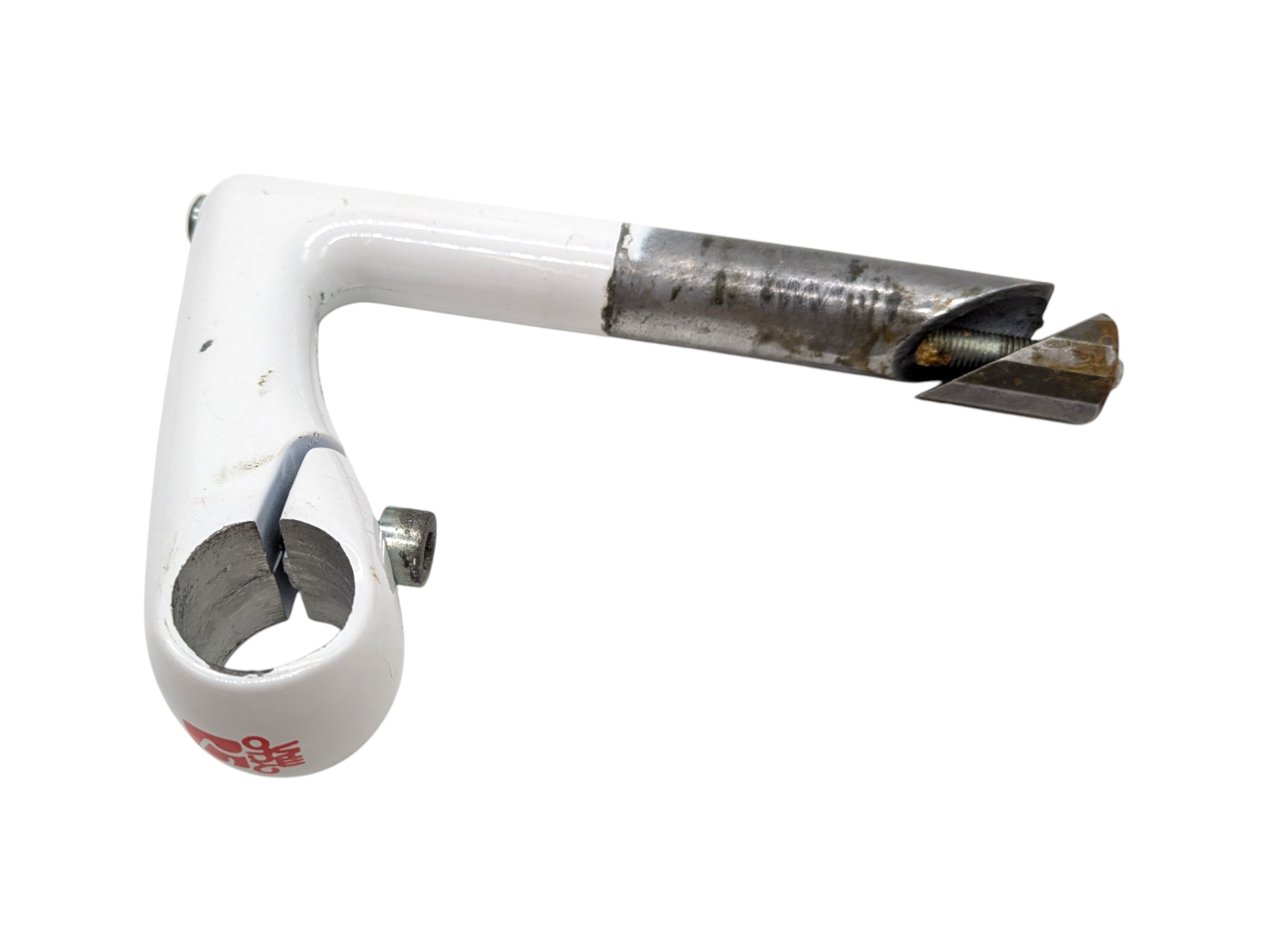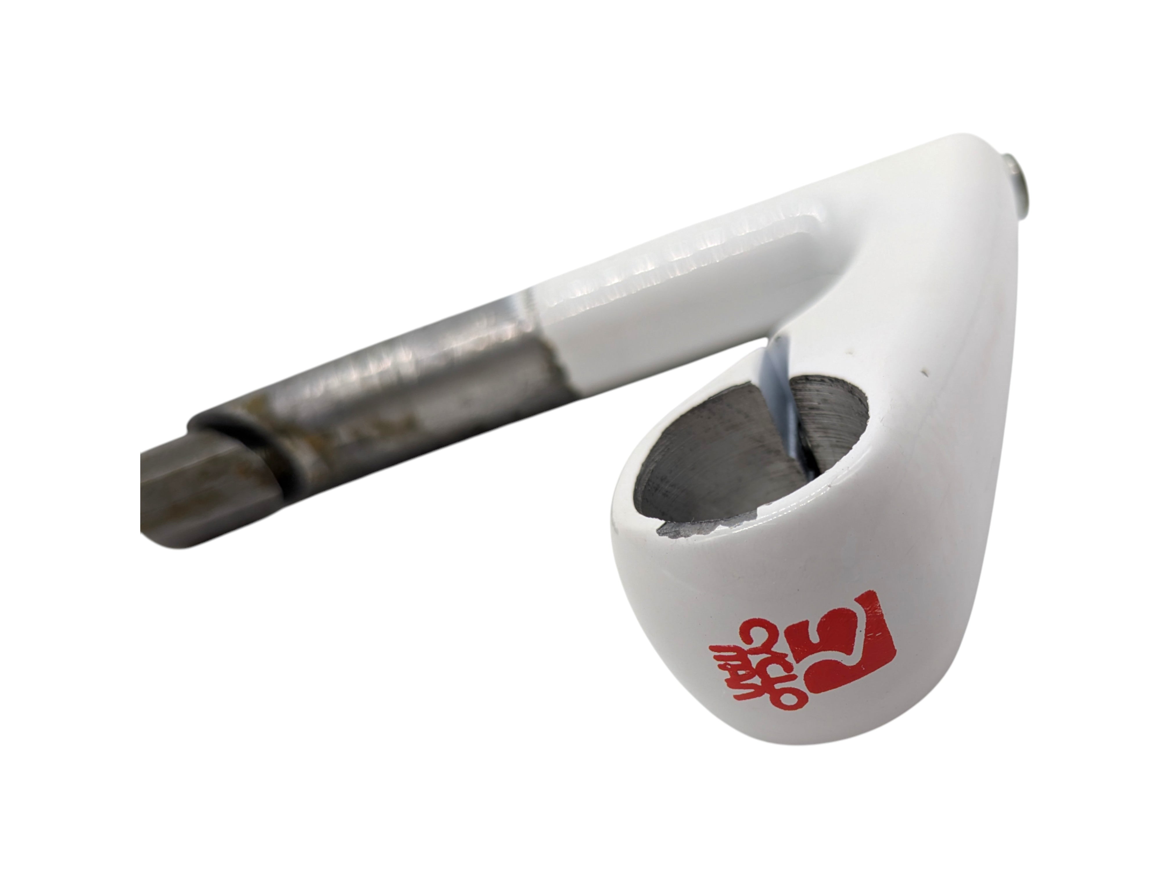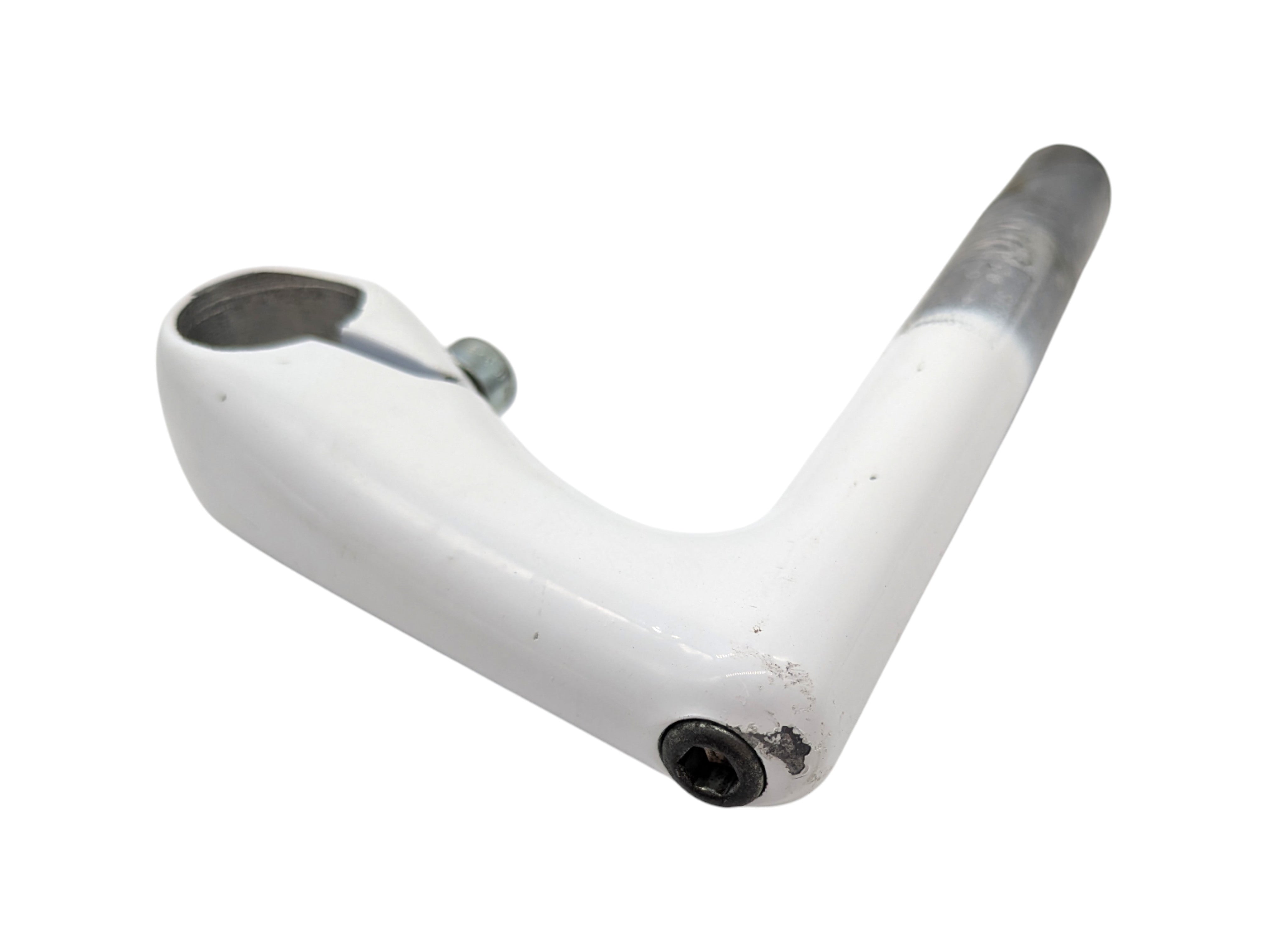 Cycloman stem with 100 mm length in white. Built for vintage road bikes, it combines sturdy construction with clean design for dependable handling. With a 26,0 mm handlebar clamp, 22,2 mm quill, and 160 mm shaft length, it suits many classic setups and is a solid choice for retro restorations and period-correct builds.