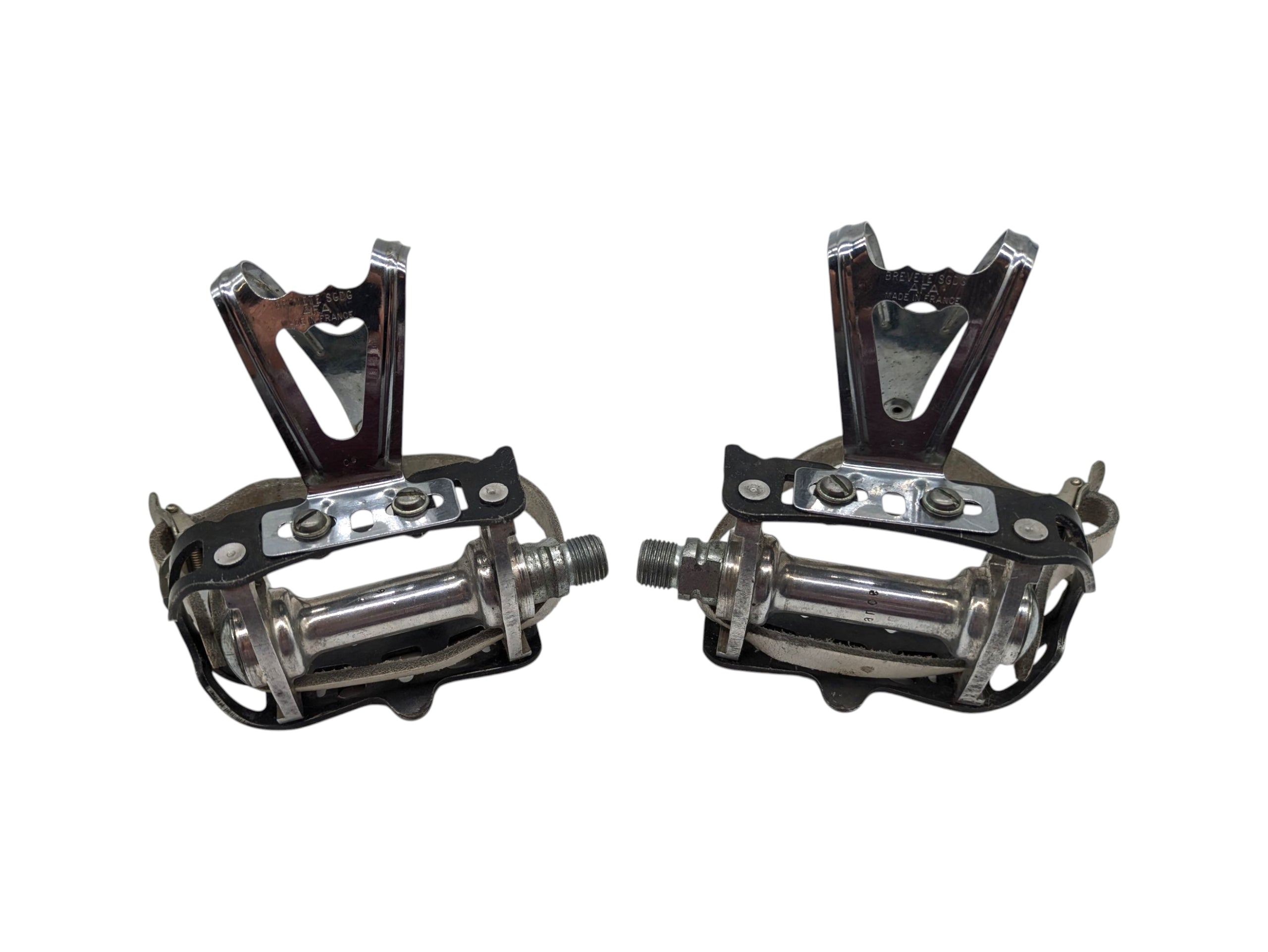 French-made classic road pedals with French-thread axles — simple, durable and ideal for 1970s restorations using French standards.