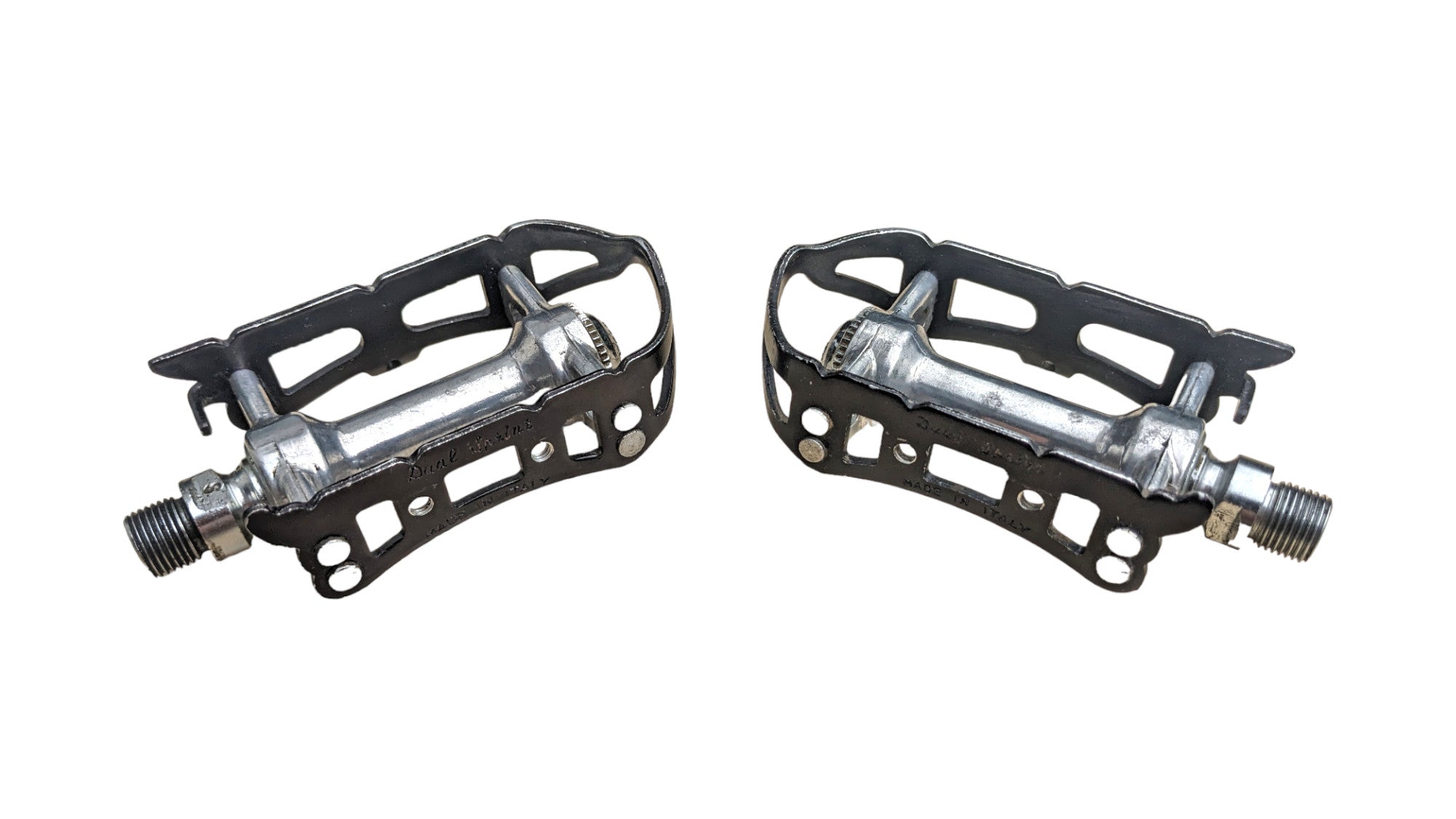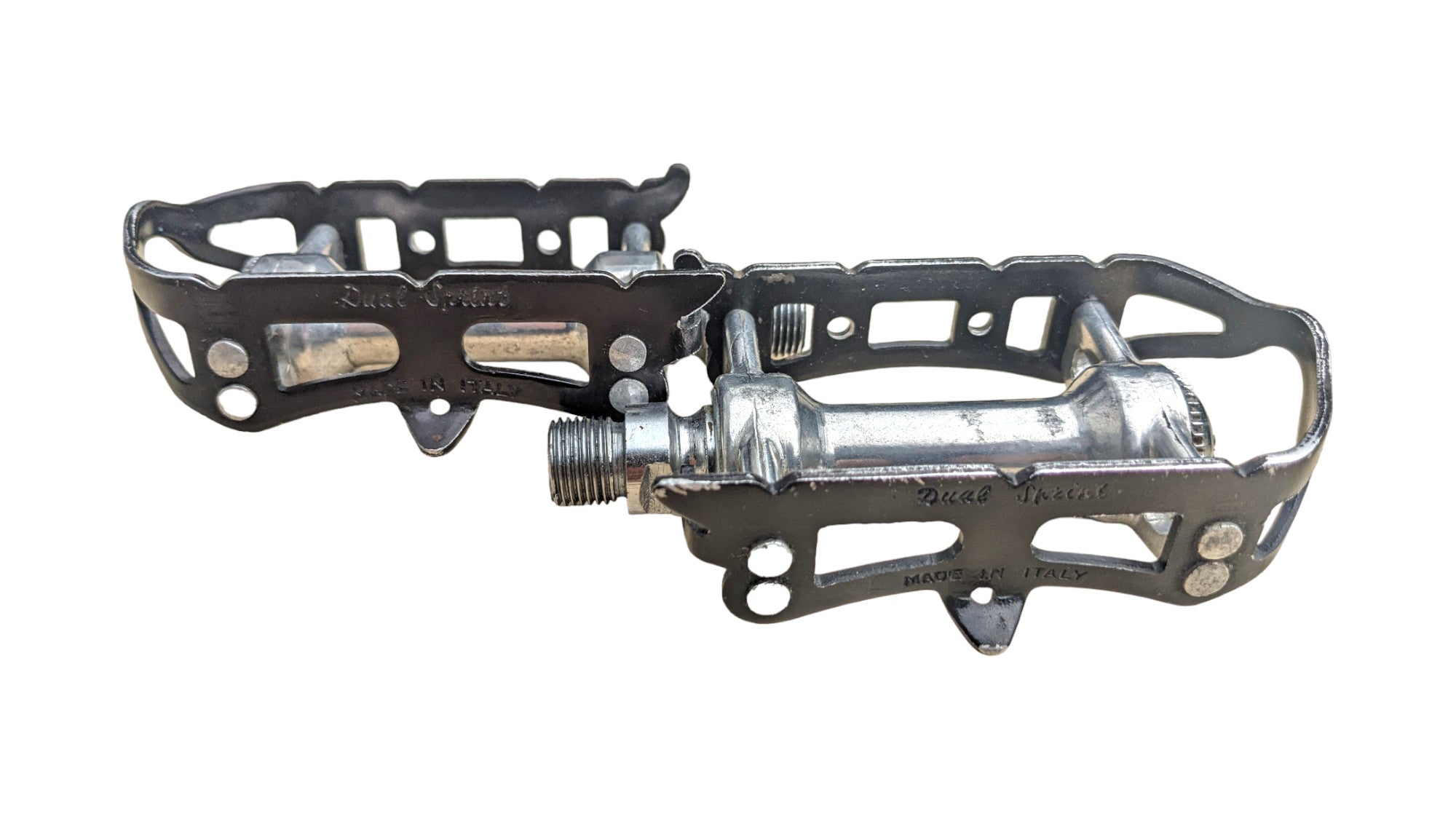 Gipiemme Dual Sprint pedals in black. Used, cleaned and fully functional. A classic Italian design, known from vintage road setups and dual-sided pedal systems.