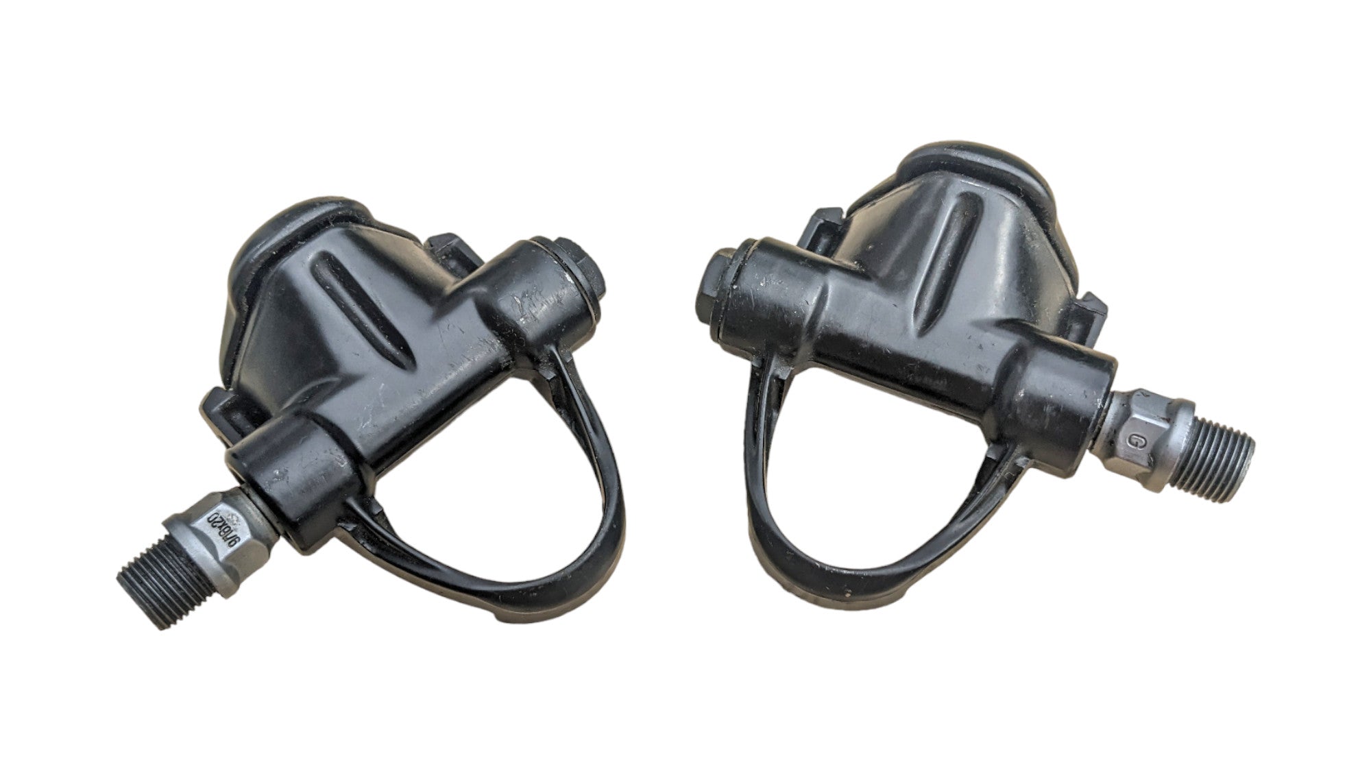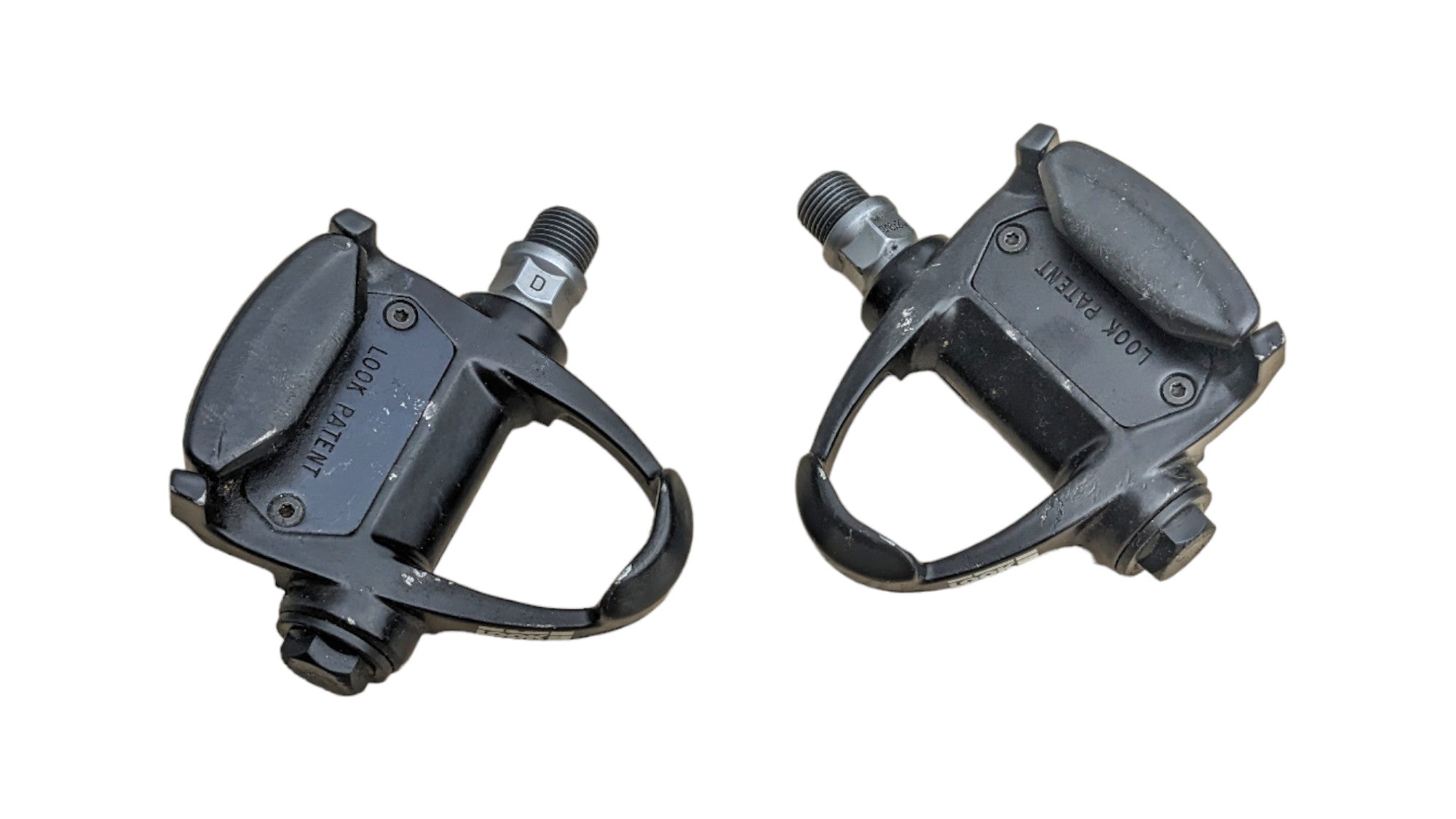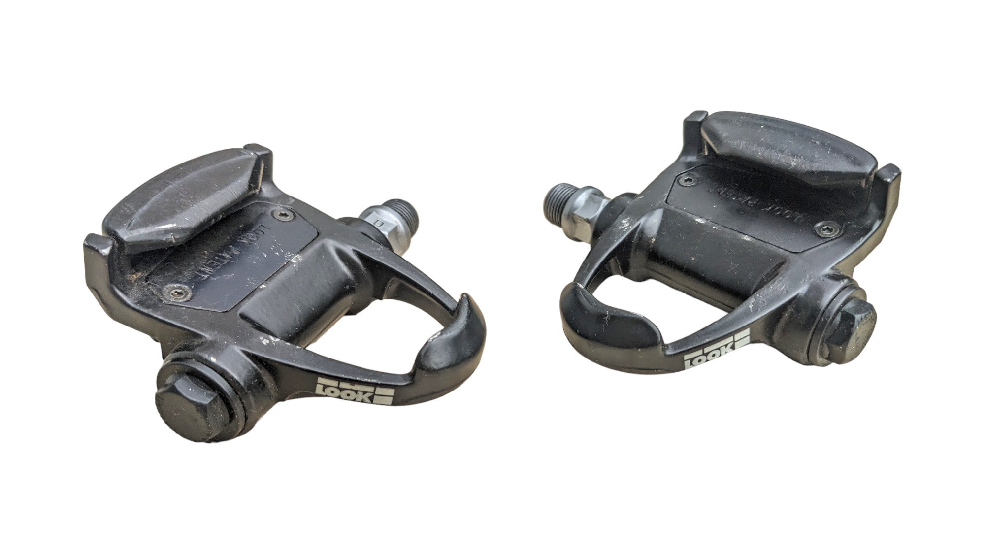 Look clipless pedals in black. Used, cleaned and fully functional. French-made, classic clipless design — a refined pedal for vintage or performance road builds where original Look hardware is desired.