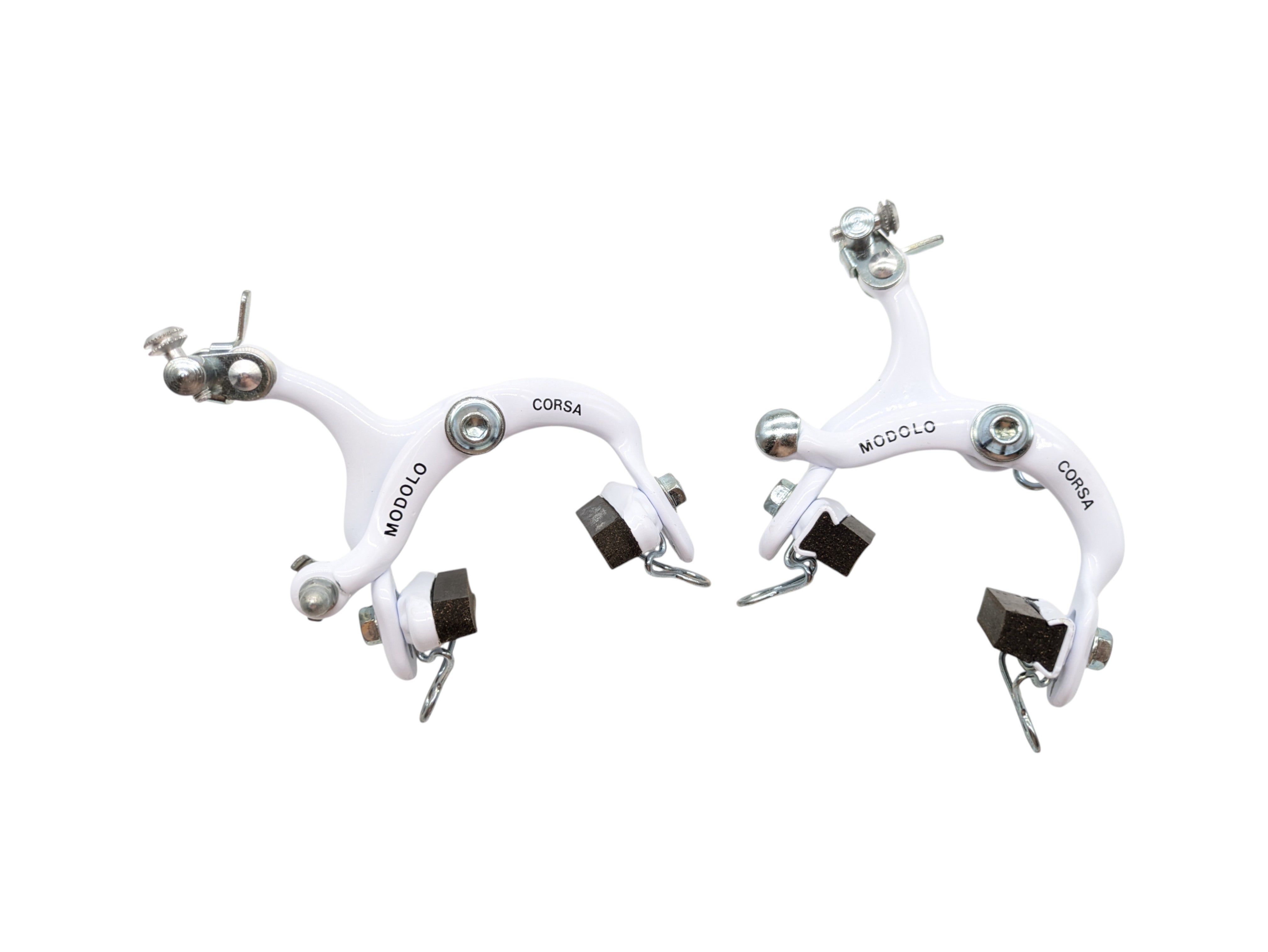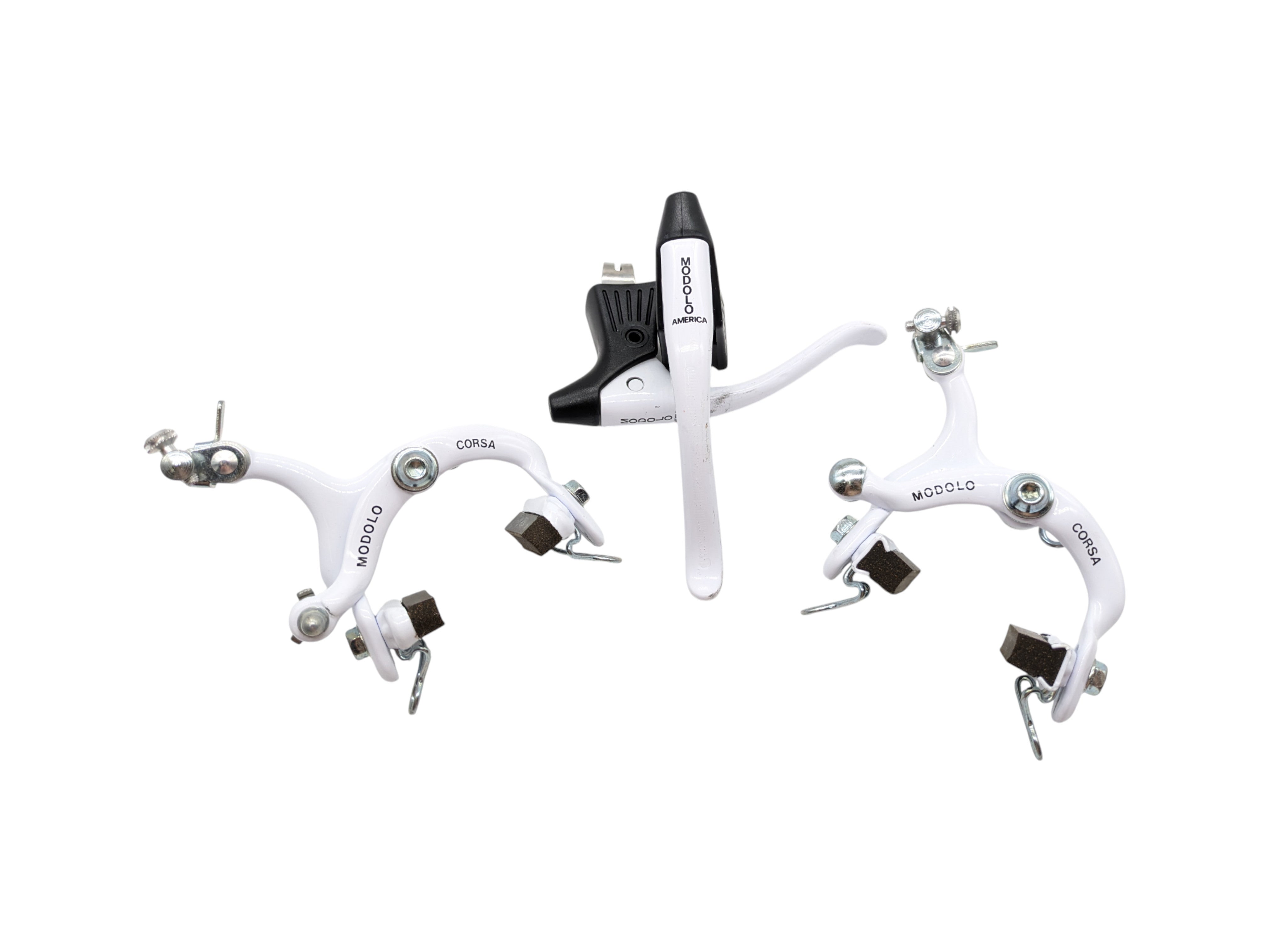 Original Modolo Corsa America brakes & levers set in white, made in Italy. Produced during the 1980s–1990s, this vintage combination delivers dependable braking performance and period-correct Italian style. A strong choice for classic road bike restorations and retro builds where authenticity and reliability are key.