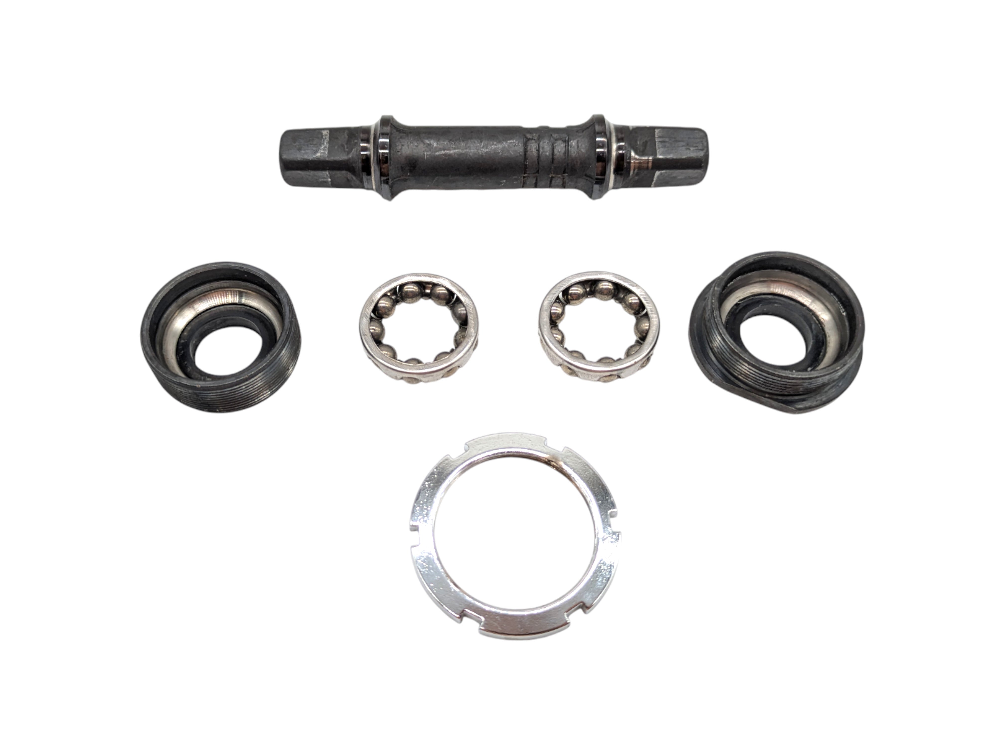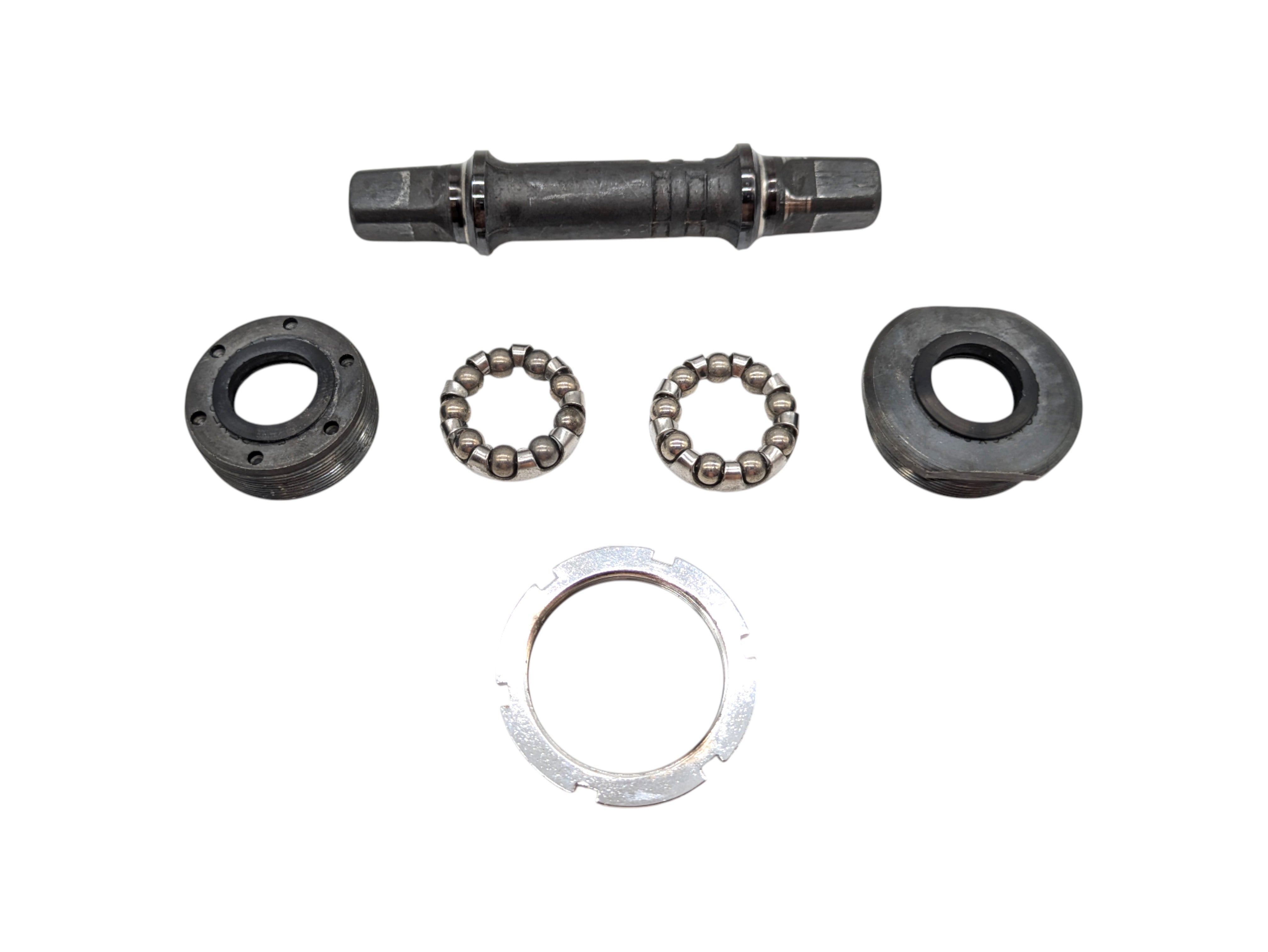 Vintage Ofmega ITA bottom bracket with 36 × 24 threading, 70 mm installation width, and 110 mm axle length. Produced in the 1980s–1990s, this Italian component ensures smooth drivetrain function and solid bearing performance. Ideal for classic road bike restorations and retro builds that require period-correct precision.