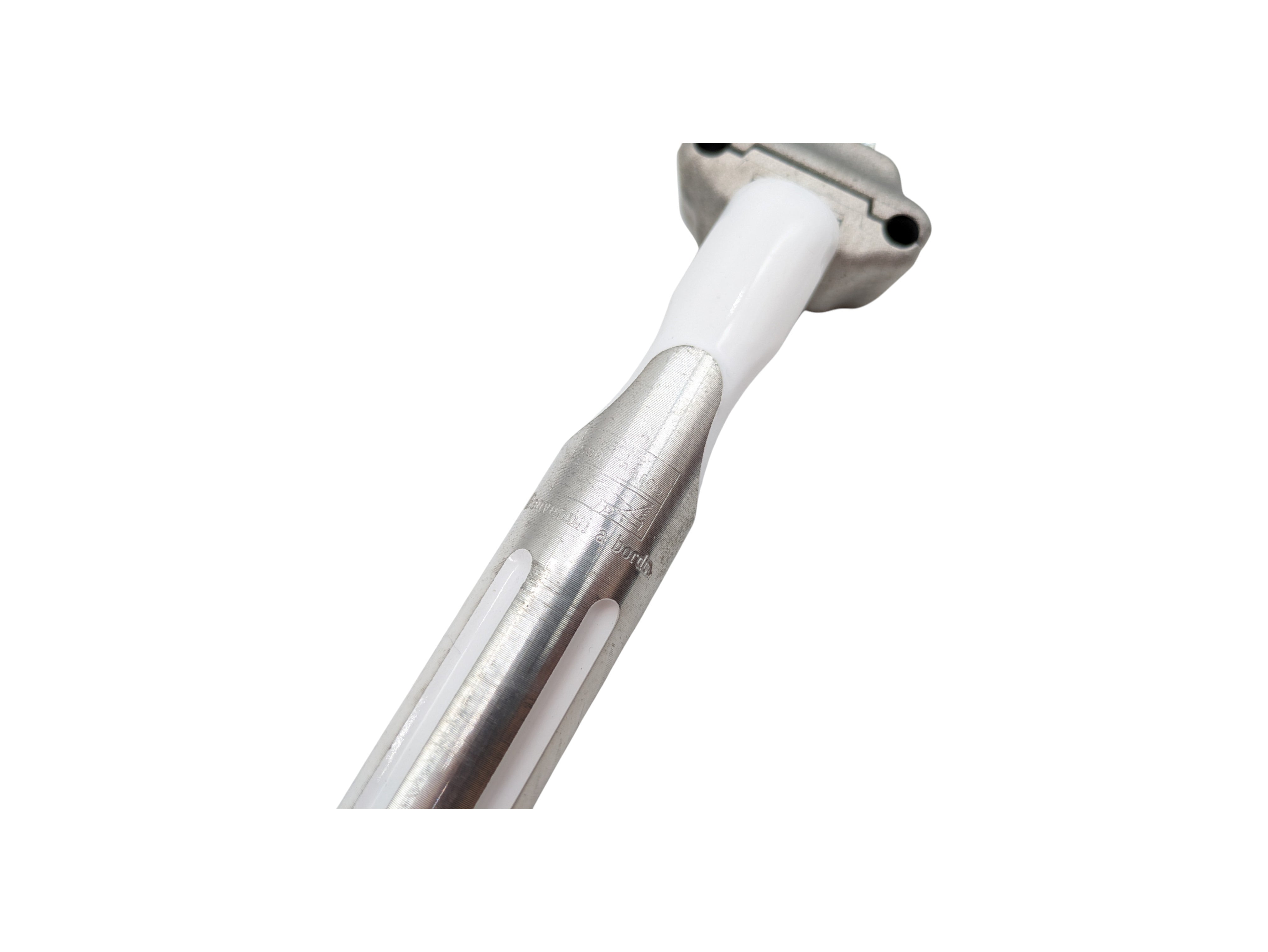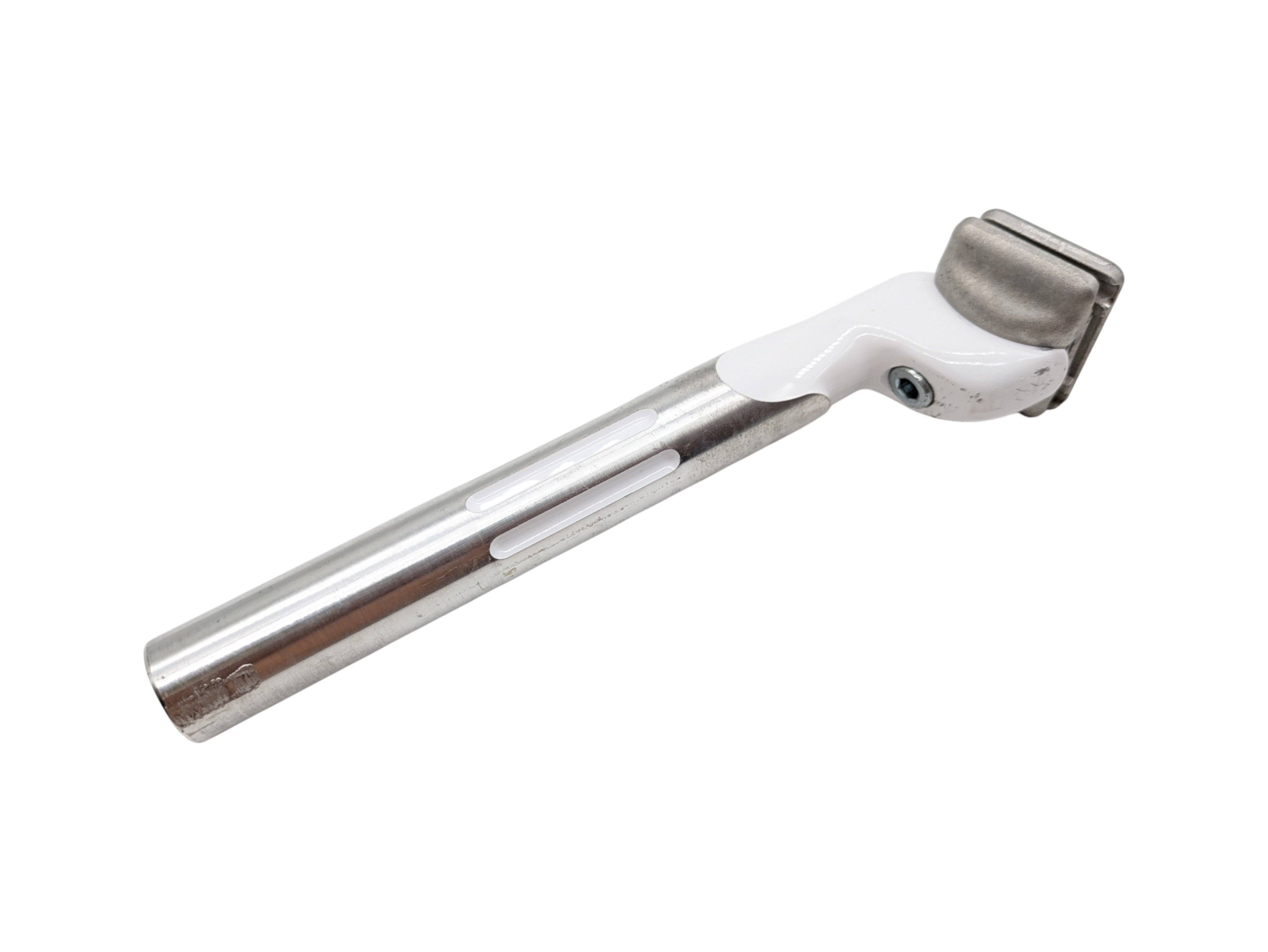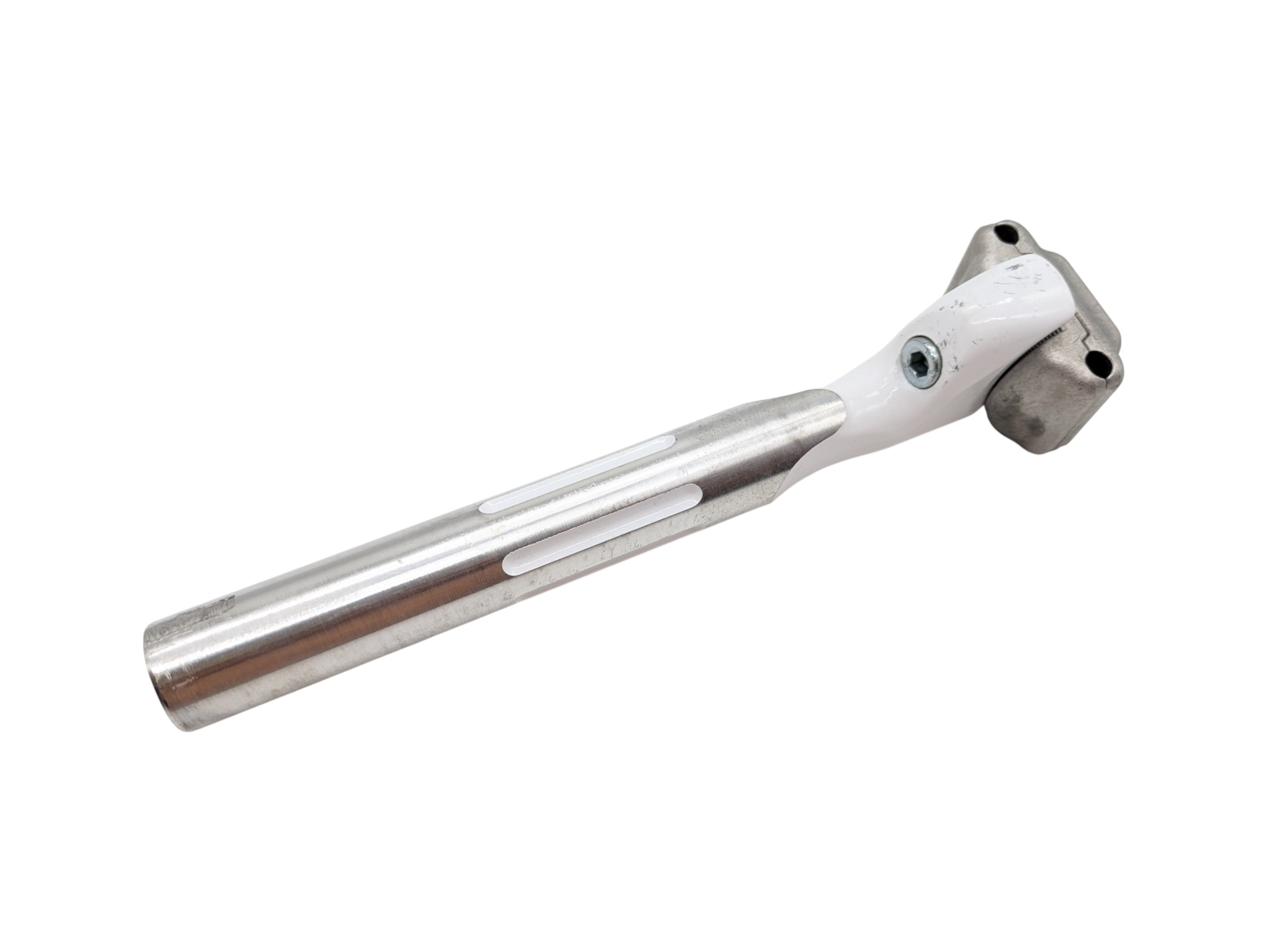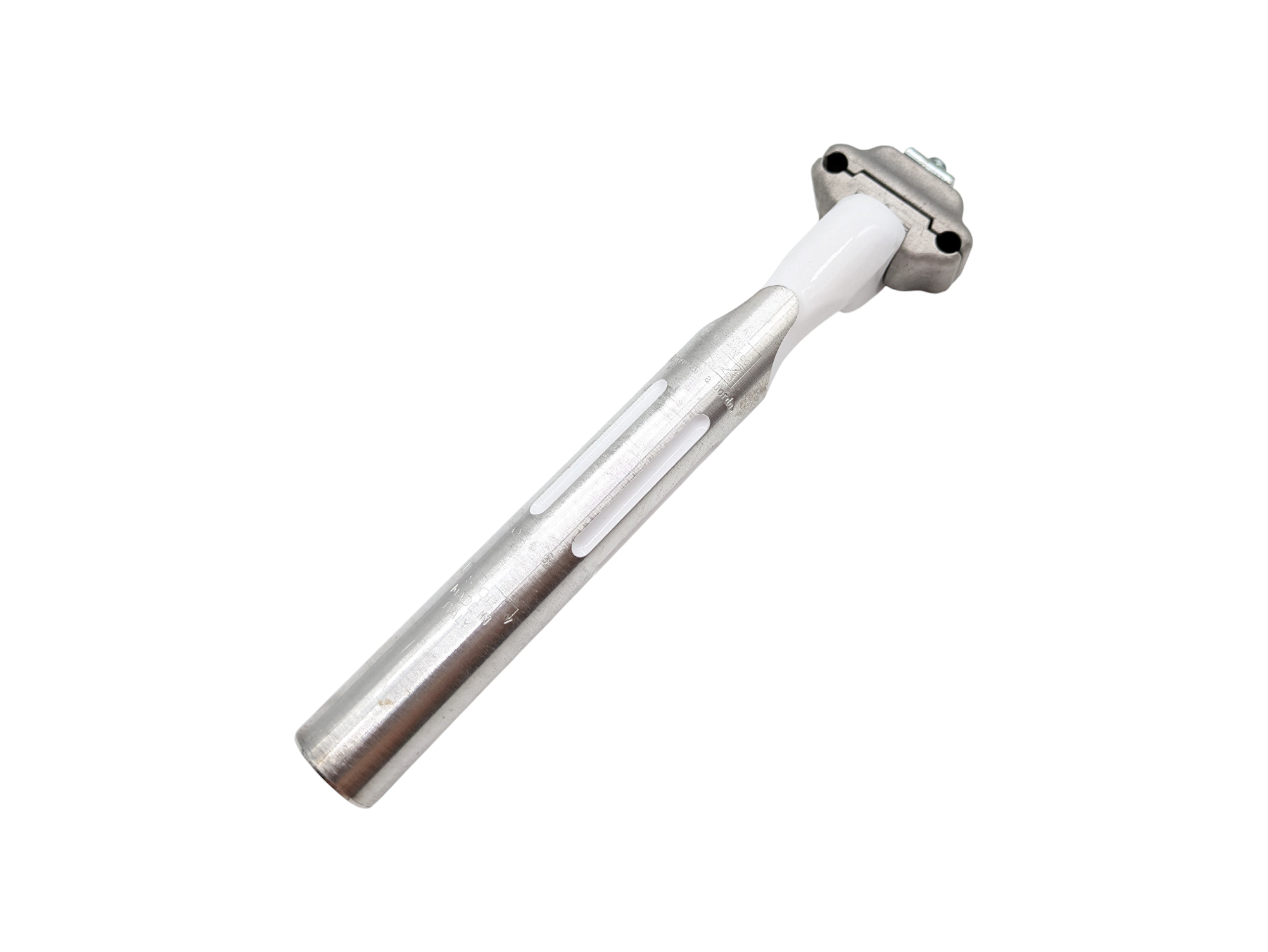 This Selle San Marco seatpost, with a 26.6 mm diameter, is a vintage component designed for classic road bikes. The white finish and Italian craftsmanship make it a perfect choice for retro bike restorations.