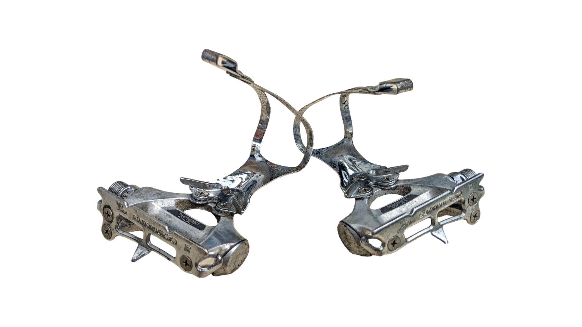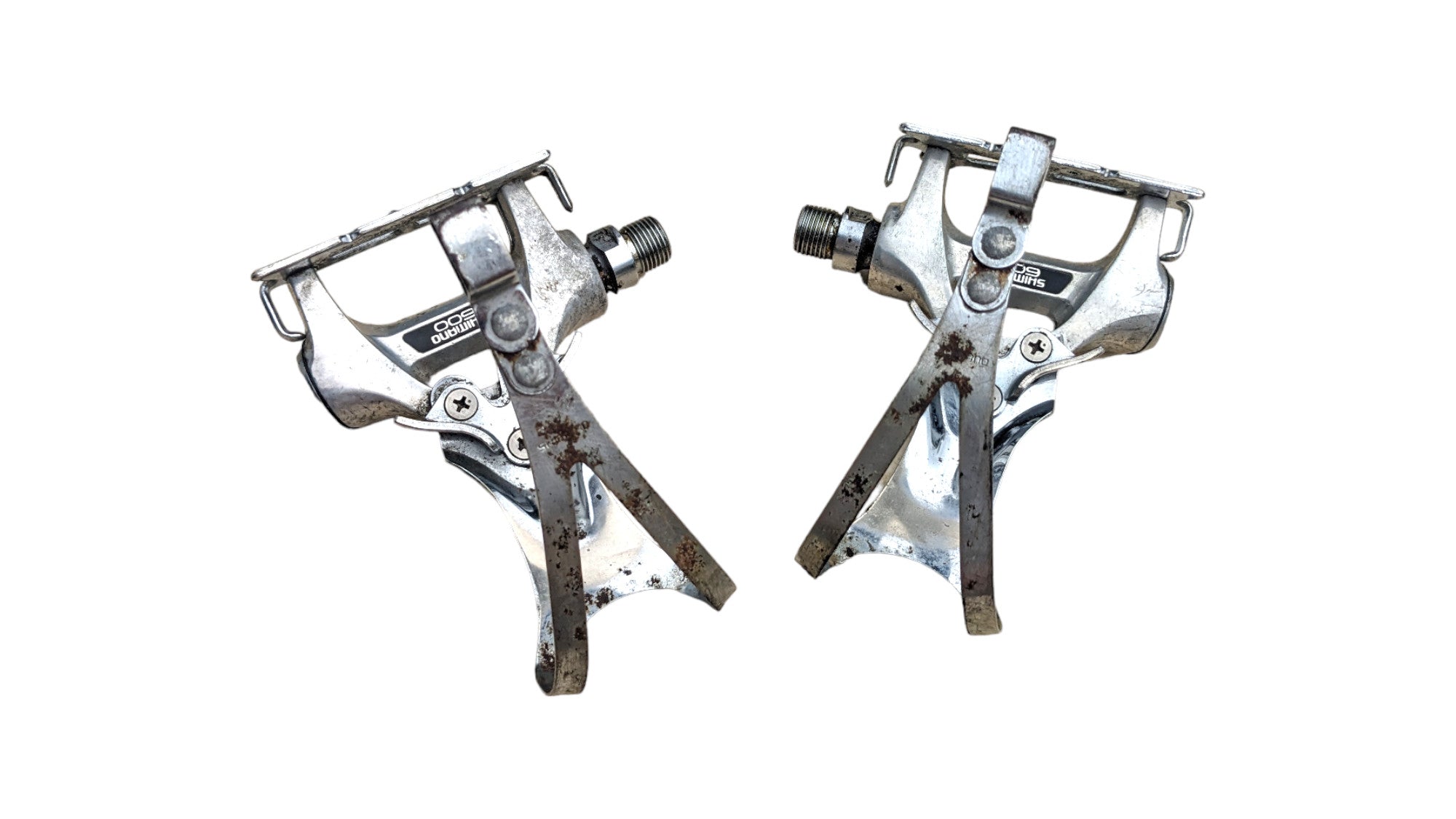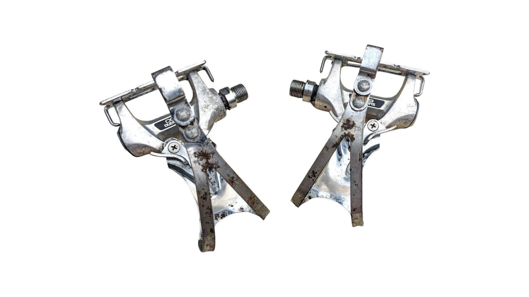 Shimano 600 EX PD-6207 pedals. Used, cleaned and fully functional. A classic Japanese road pedal from the mid-’80s — reliable and fitting for vintage builds and period-correct setups.