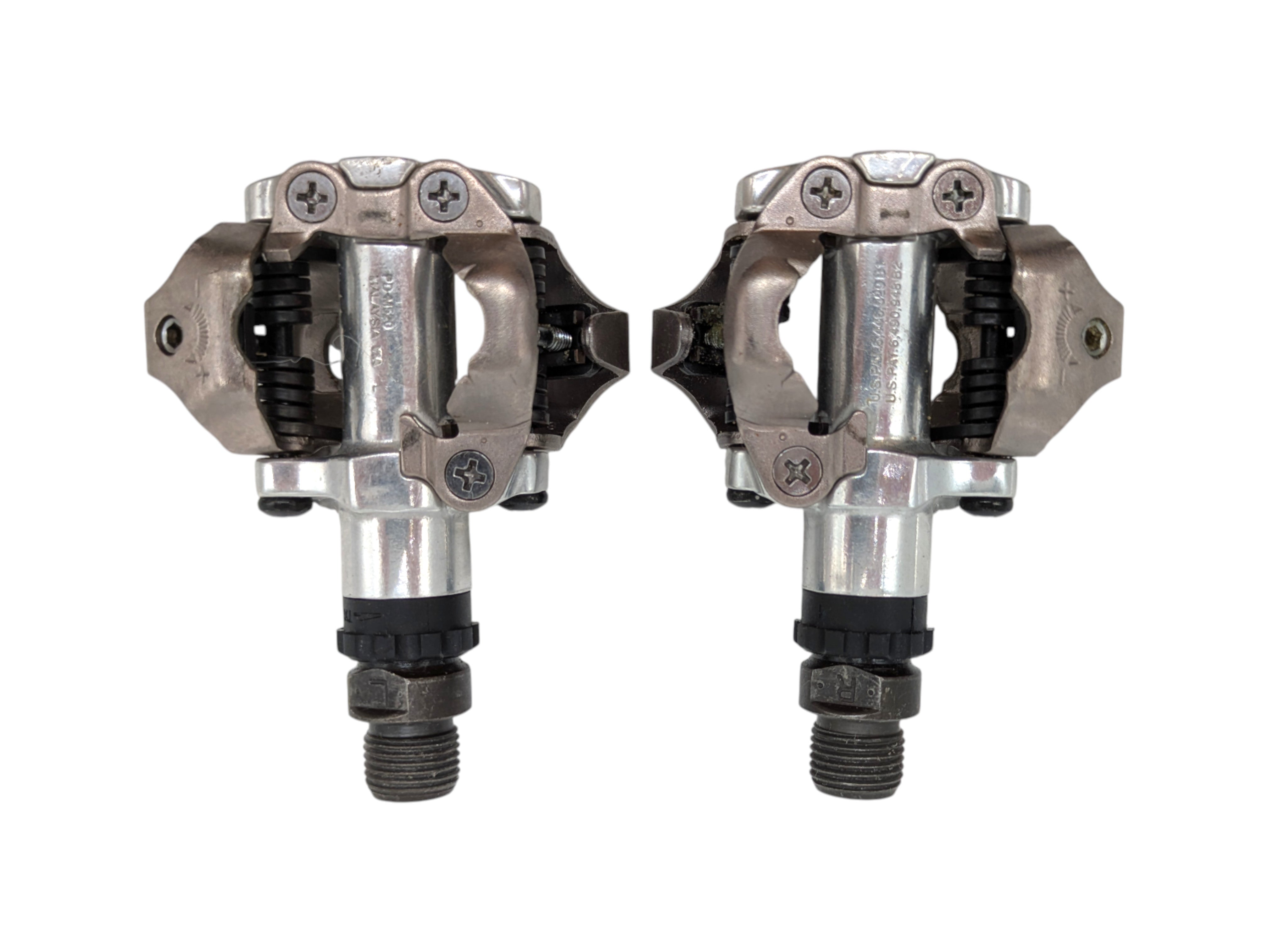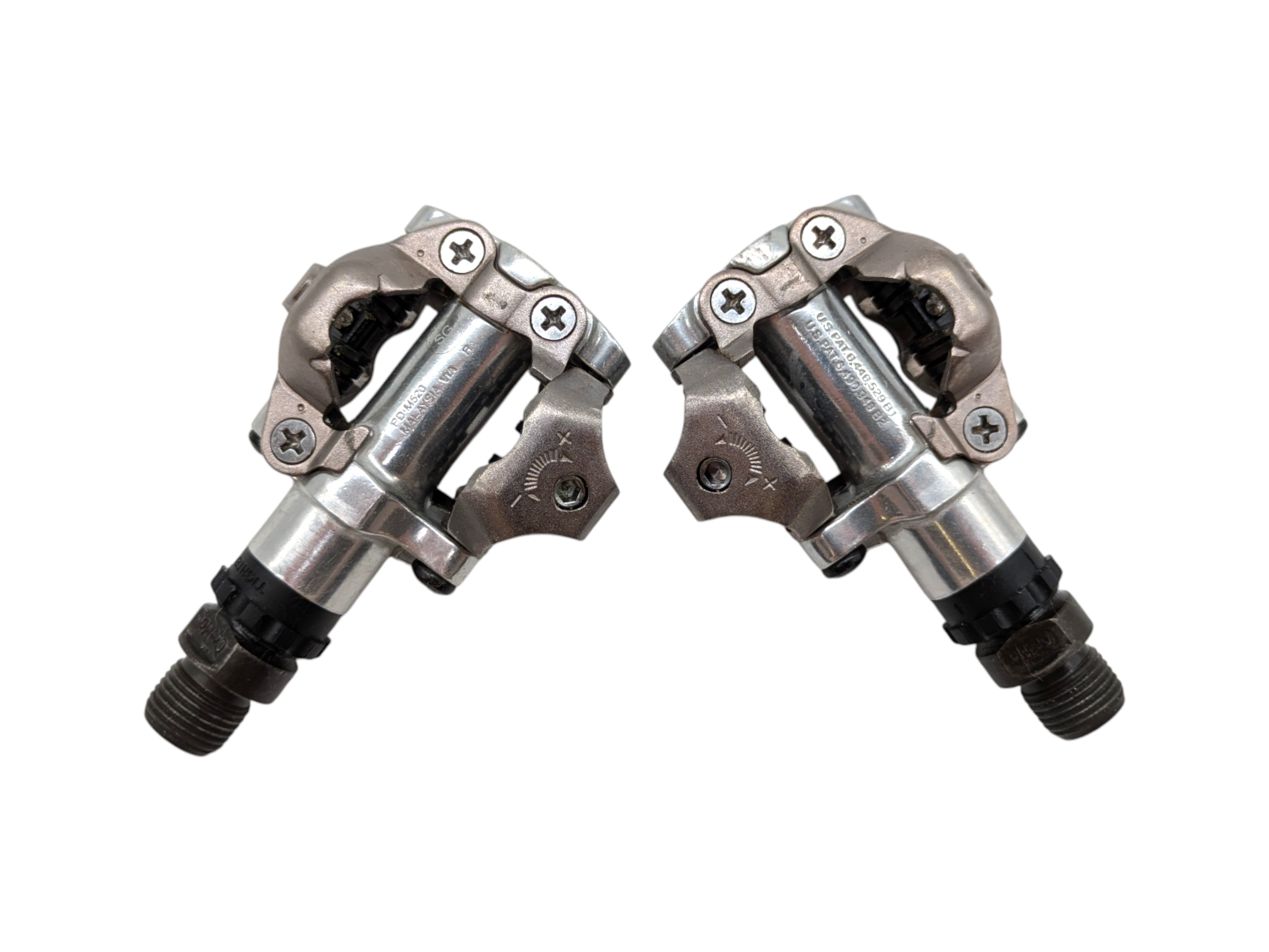 Shimano PD-M520 clipless pedals with included silver cleats. Dual-sided SPD design with a chrome-moly spindle and sealed bearing cartridge axle makes these pedals dependable across varied conditions. Favoured by mountain bike and commuter riders for ease of entry, reliable clipping & unclipping, and long service life. A solid choice for anyone restoring classic off-road or steel gravel bikes where performance and period-correct components matter.