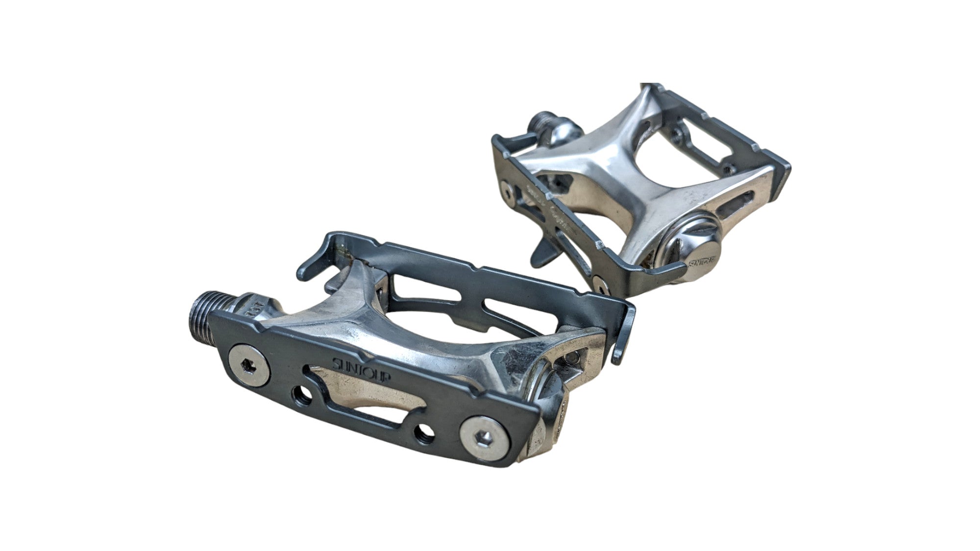 Suntour Sprint PL-5600 track-style pedals with 9/16" threading. Used, cleaned and fully functional. A vintage Japanese pedal from Sprint’s range — great for track or classic road builds where durability and authenticity matter.