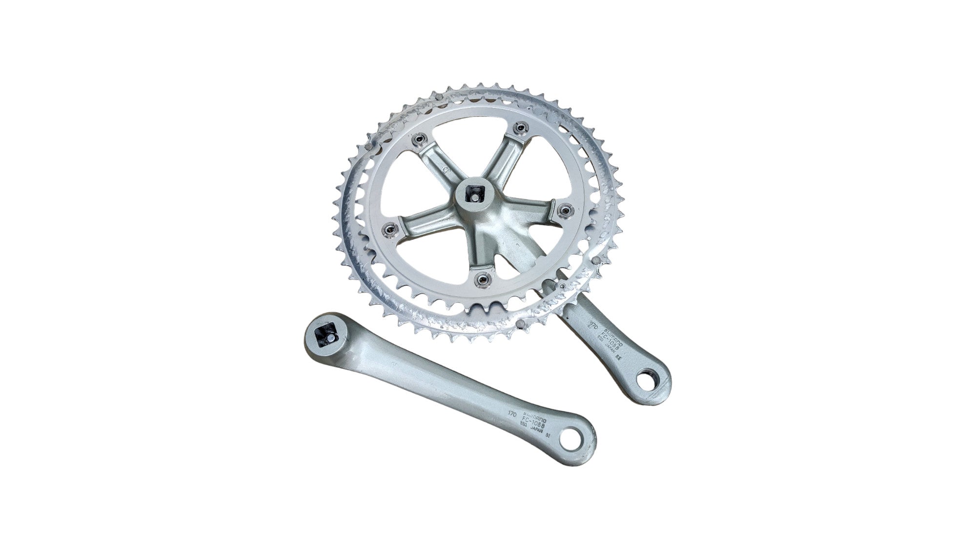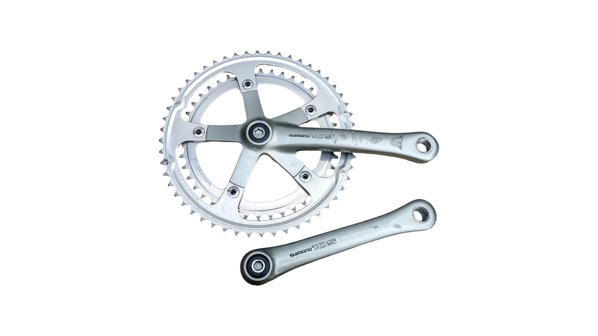 Shimano 105 FC-1056 crankset, 170 mm arms with 52/42 rings. Used, cleaned and fully functional. A solid Japanese mid-’90s crank — built for vintage road setups and period Shimano group compatibility.
