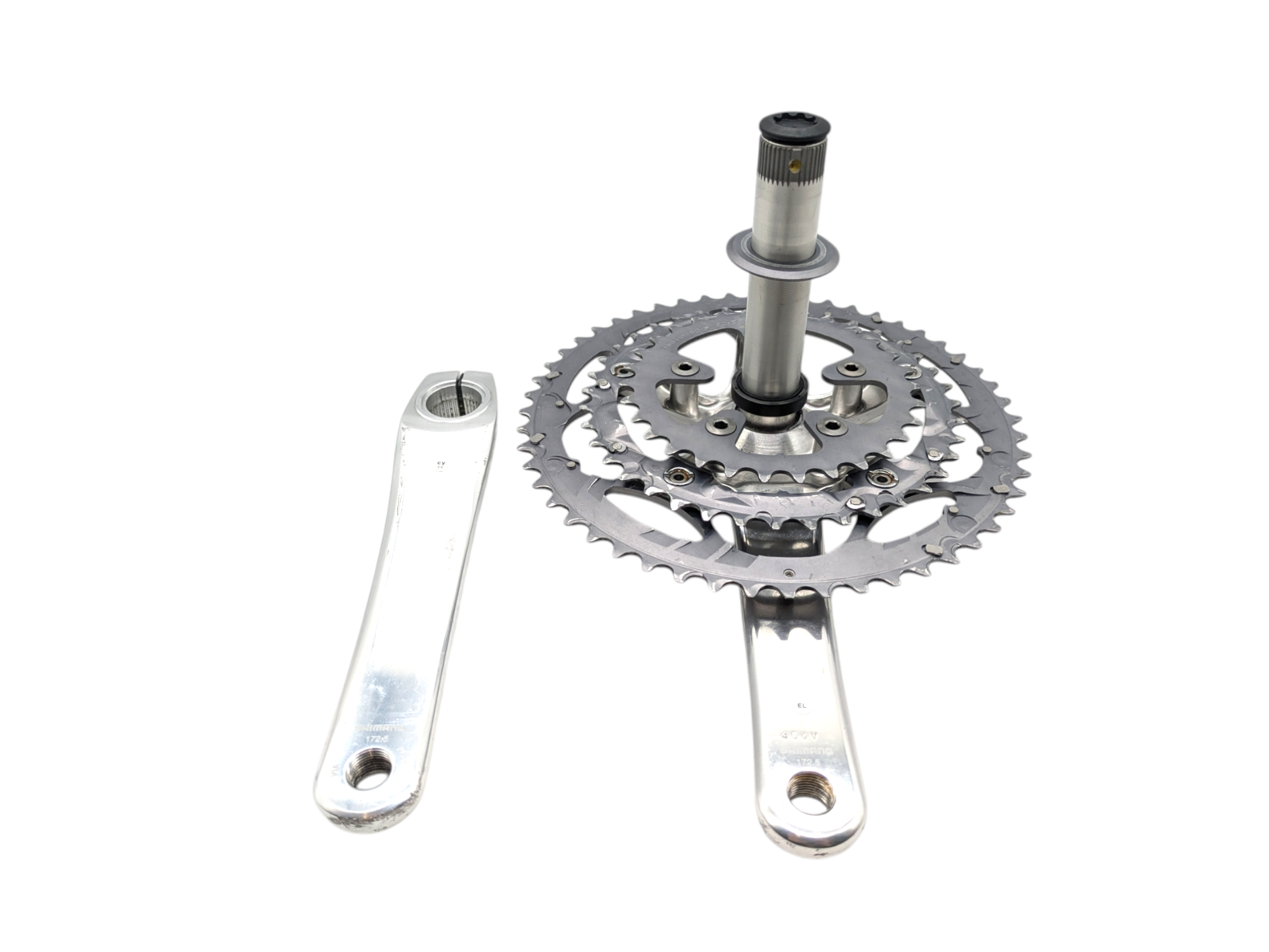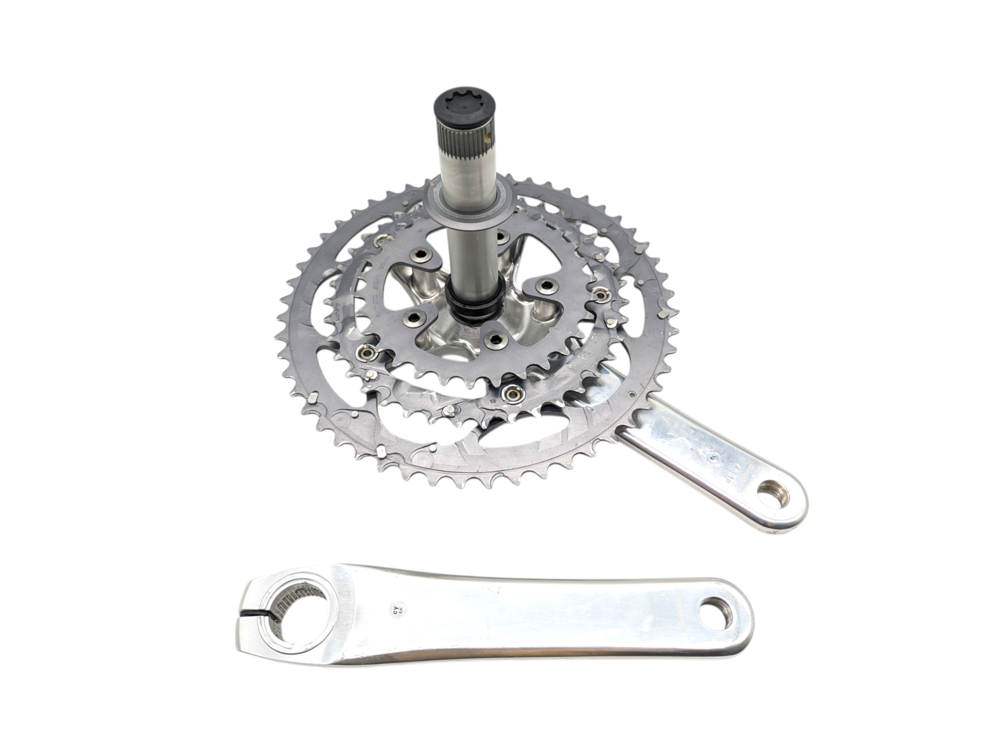 Shimano Ultegra FC-6603 triple crankset with 172,5 mm crank arms and 52/39/30 chainrings. Serviced and fully functional, this Japanese component is an excellent pick for authentic vintage builds or road bikes requiring a triple setup.