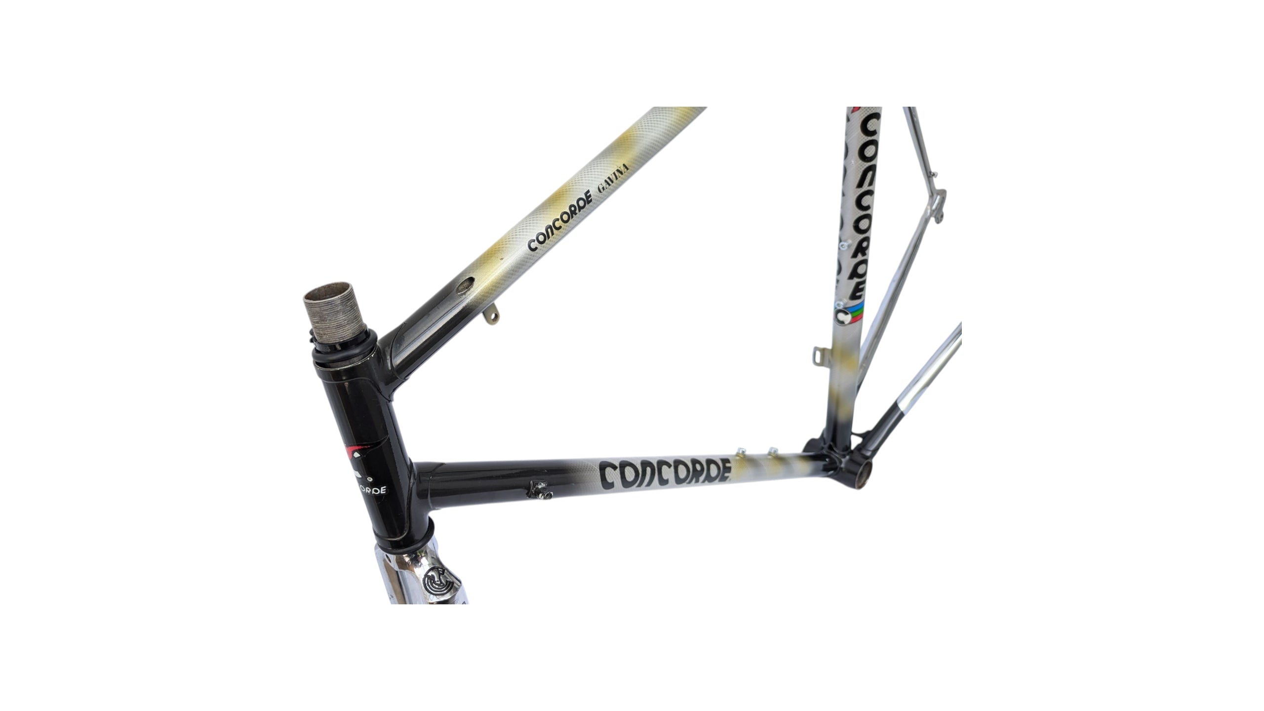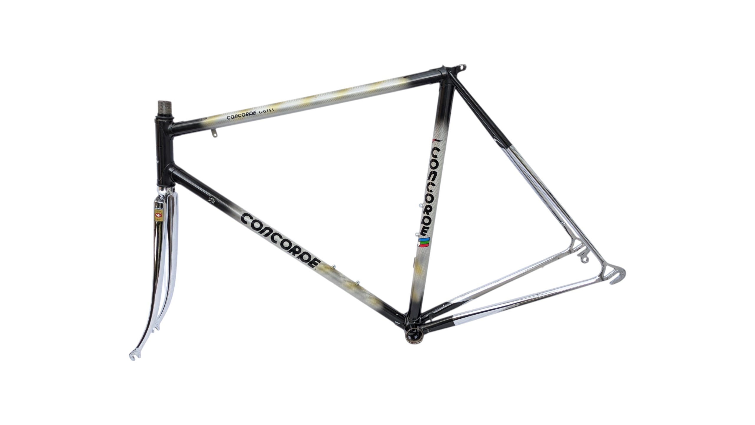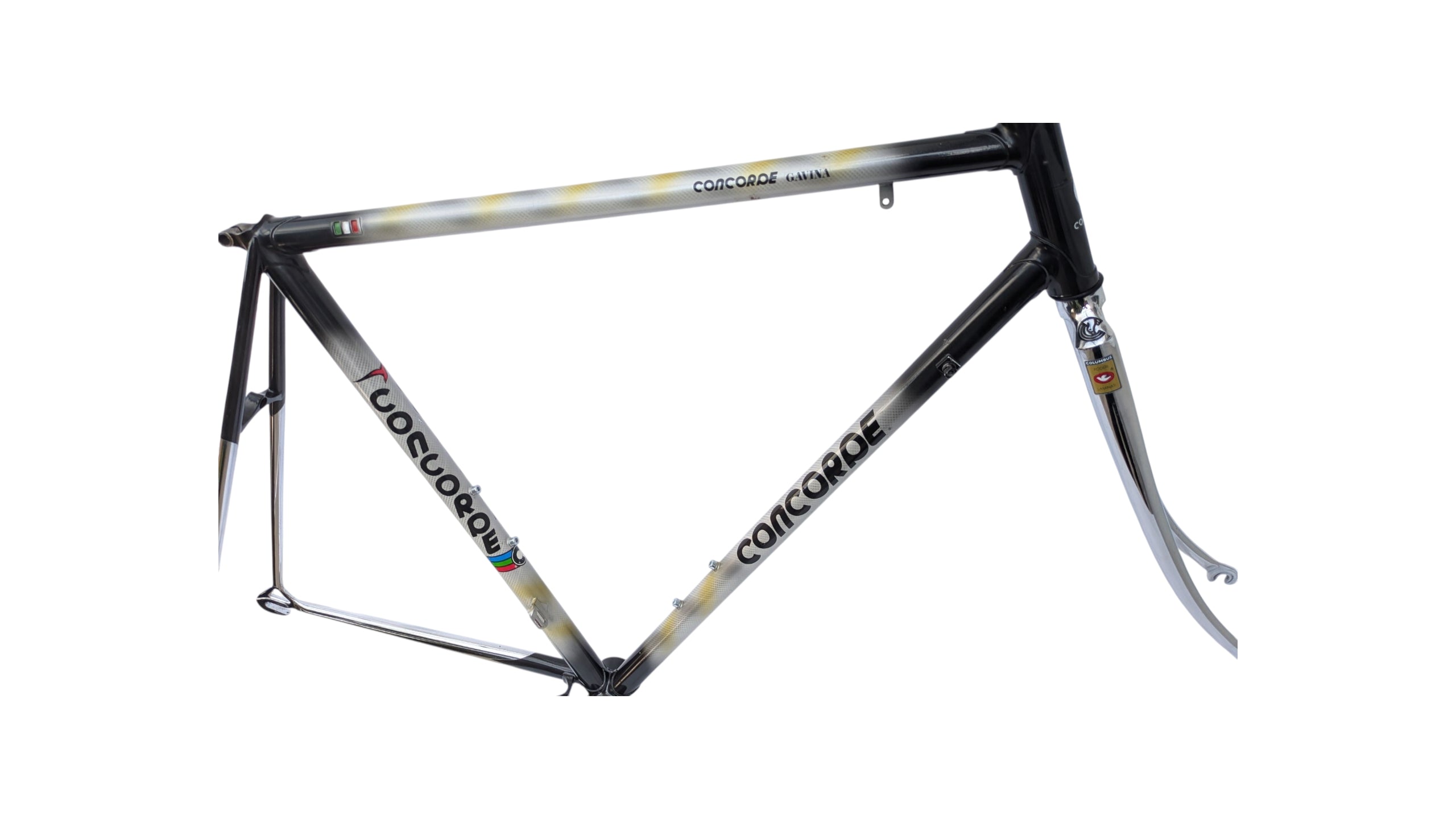 Concorde Gavina road bike frame constructed from Columbus SL tubing, representing the peak of Italian steel craftsmanship during the 1980s.