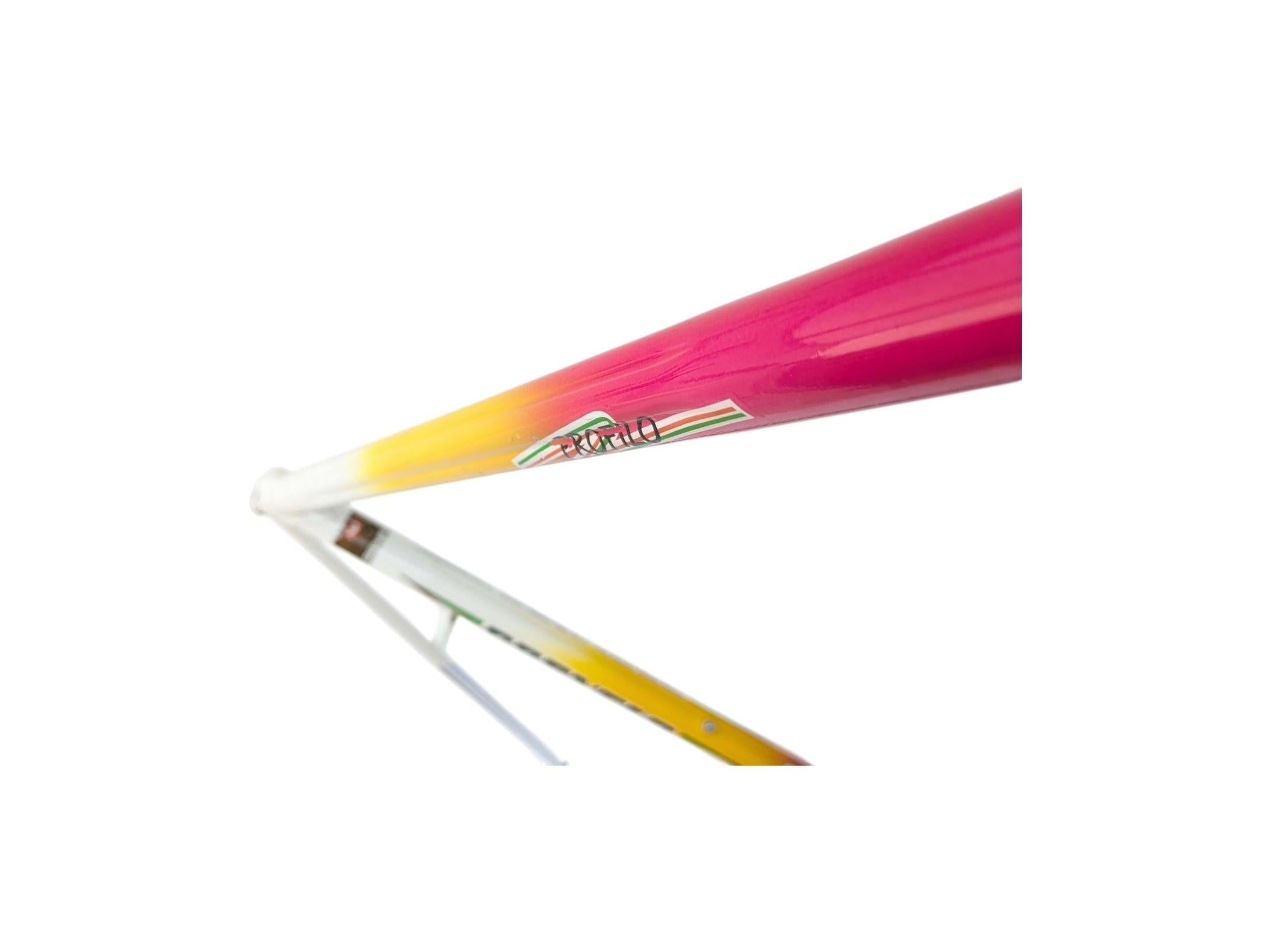 Its most distinctive feature is the beautifully shaped “stella” or star-profile tubes, a design element that gave this model its name. These unique star-section tubes add both stiffness and visual character, making it a true collector’s piece among vintage steel frames.