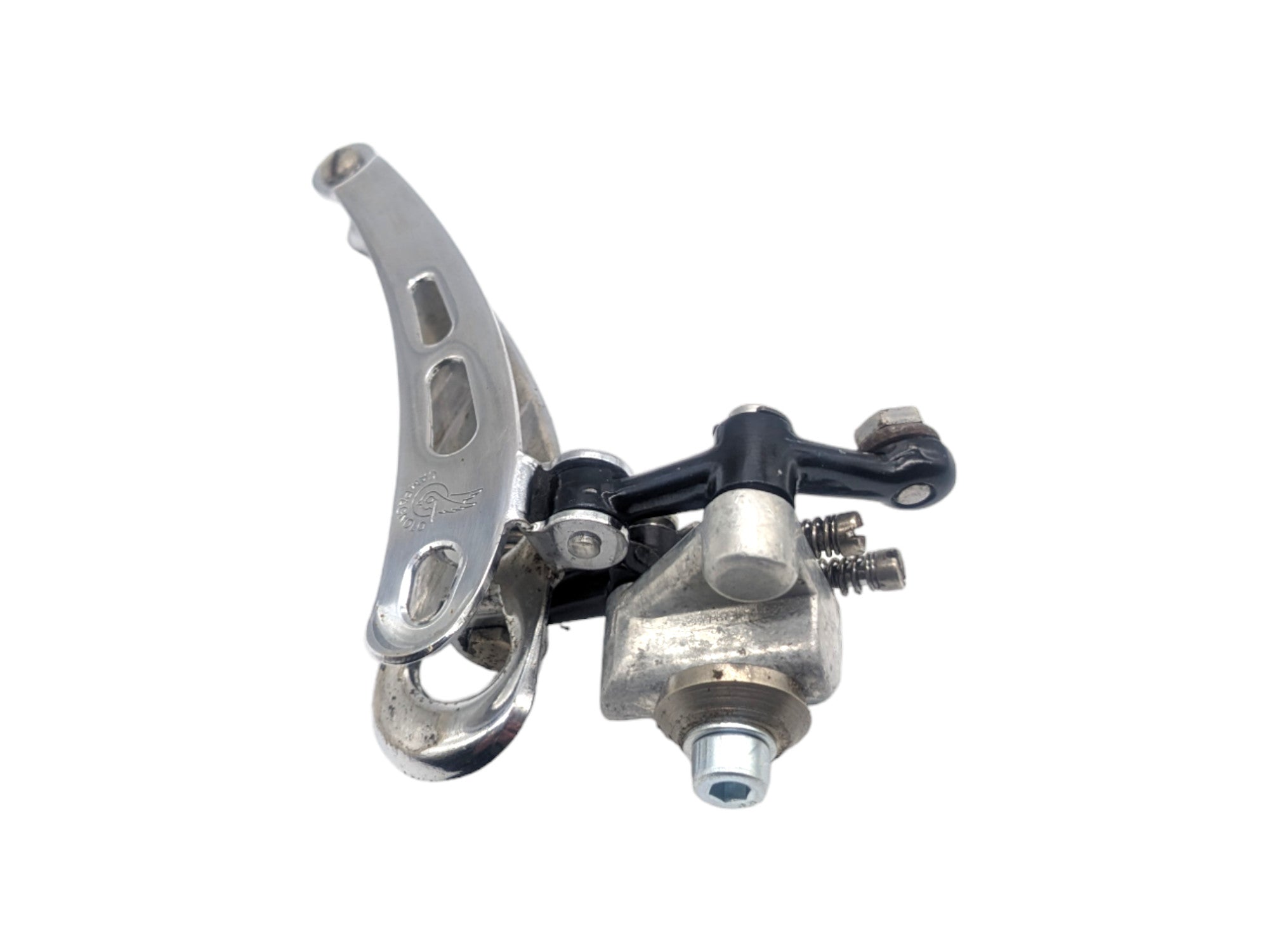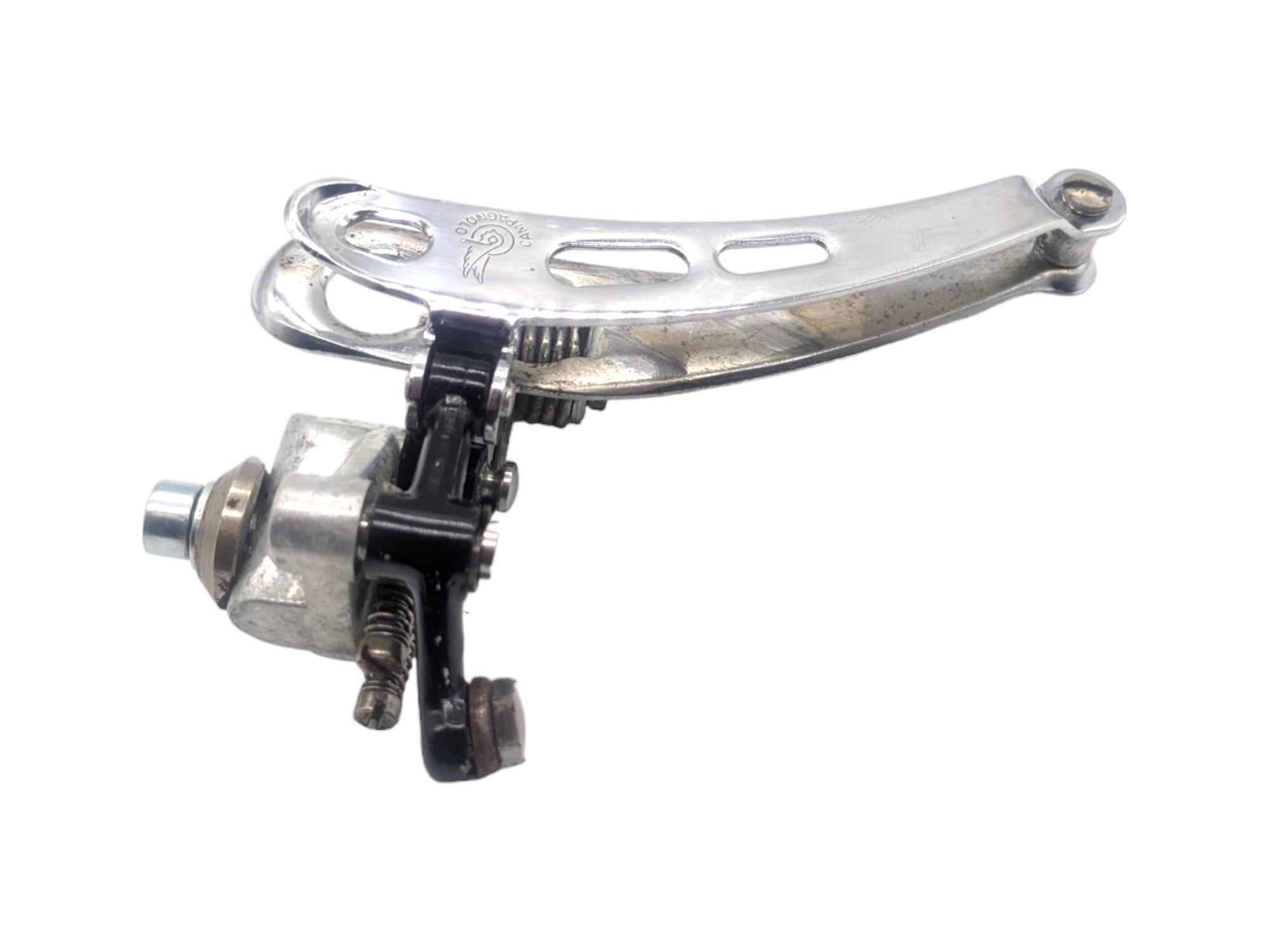 Campagnolo Super Record braze-on front derailleur. A legendary Italian component for smooth, reliable shifting on vintage road bikes and period-correct Campagnolo builds.