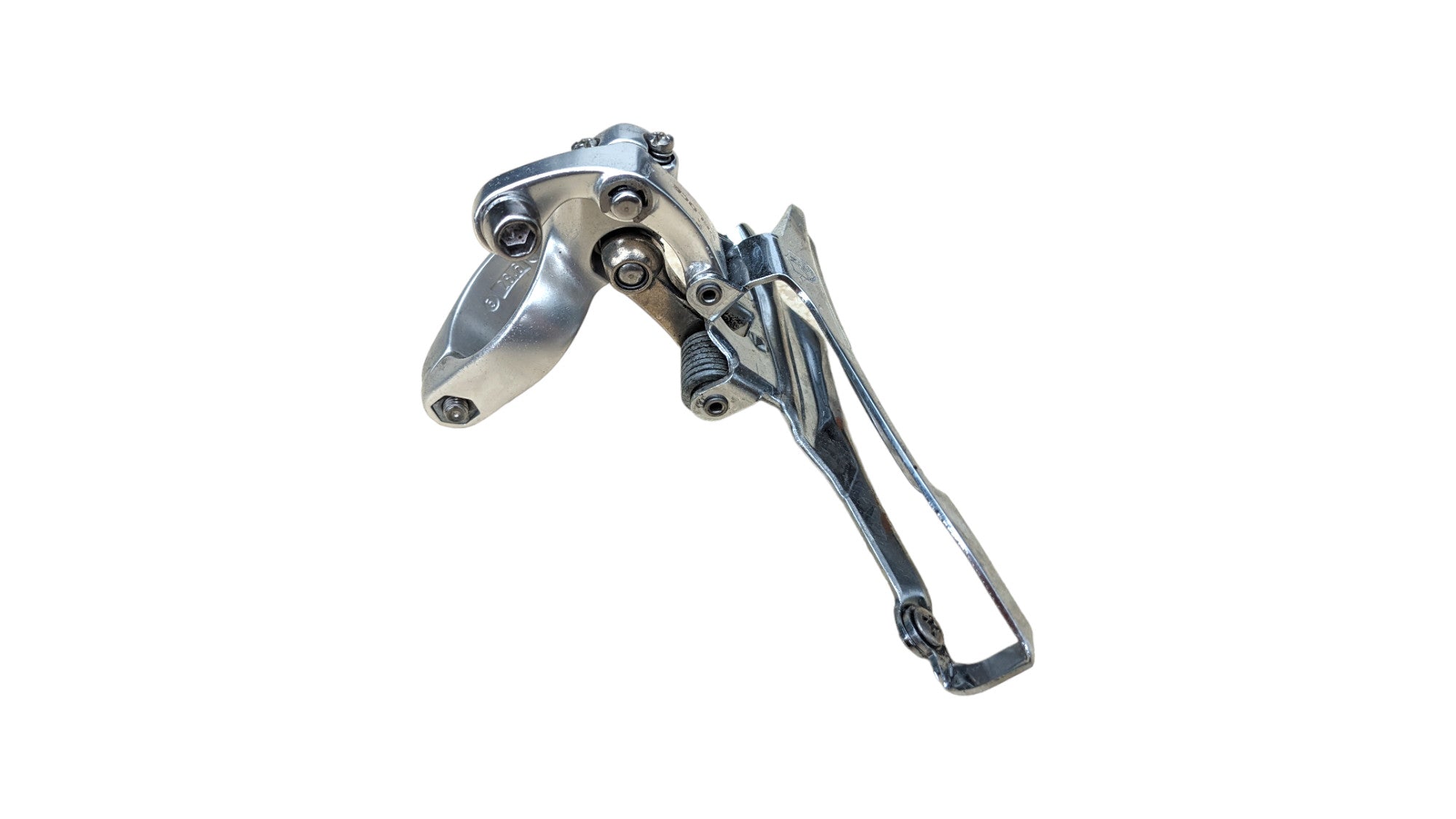 Campagnolo Veloce front derailleur (28.6 mm clamp). Used, cleaned and fully functional. A clean Italian component — ideal for vintage builds that require period-correct shifting with authentic Campagnolo parts.