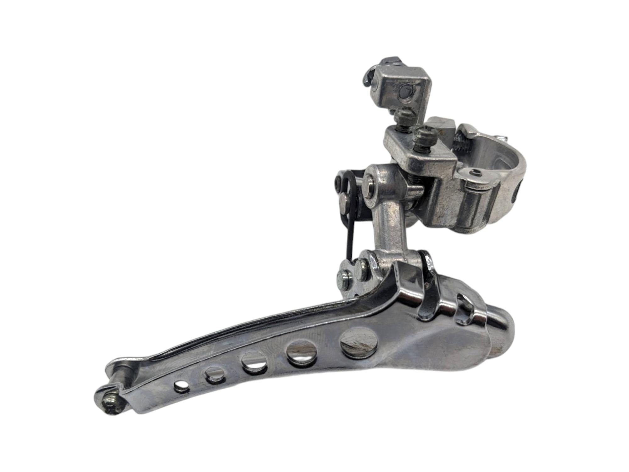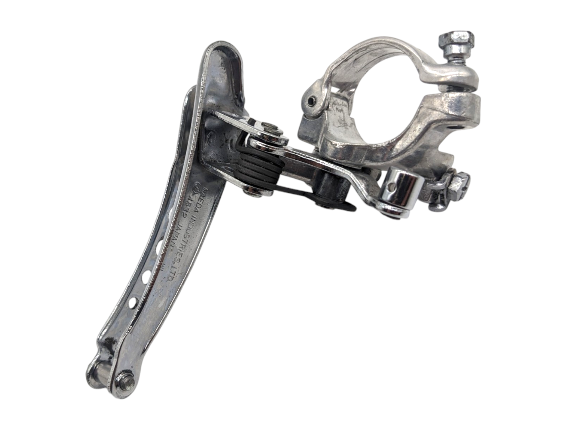 Maeda Fuji front derailleur with 28.6 mm clamp size. Fully cleaned and in excellent working order, this classic Japanese derailleur is ideal for restoring mid-century road bikes or building vintage setups where authenticity matters.