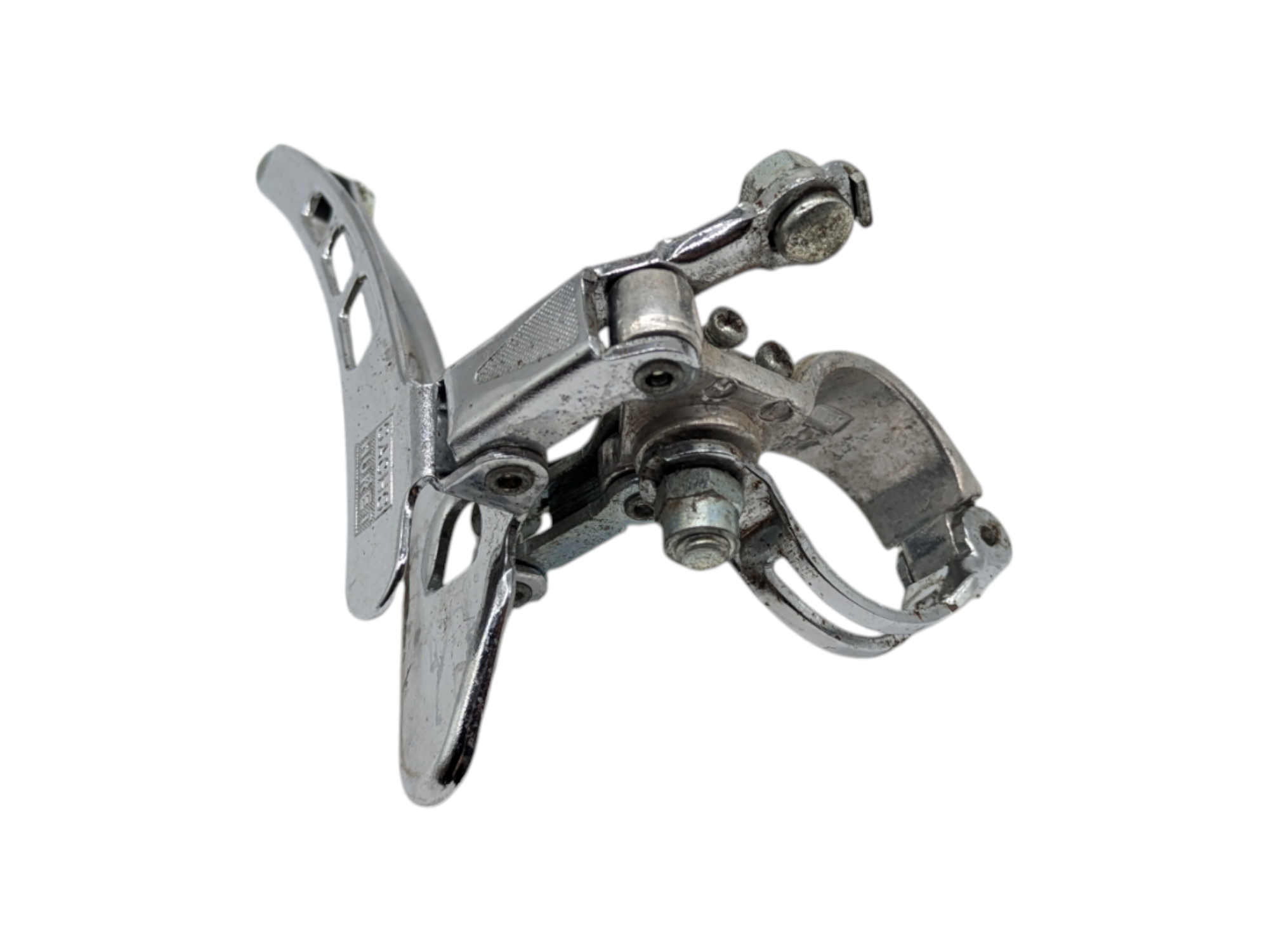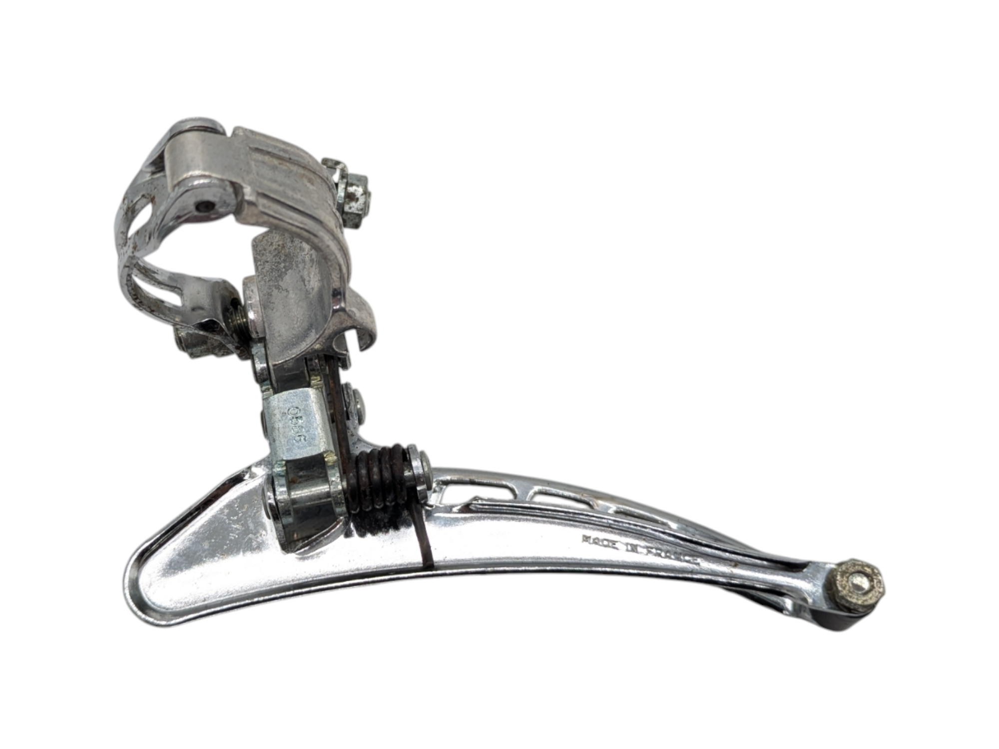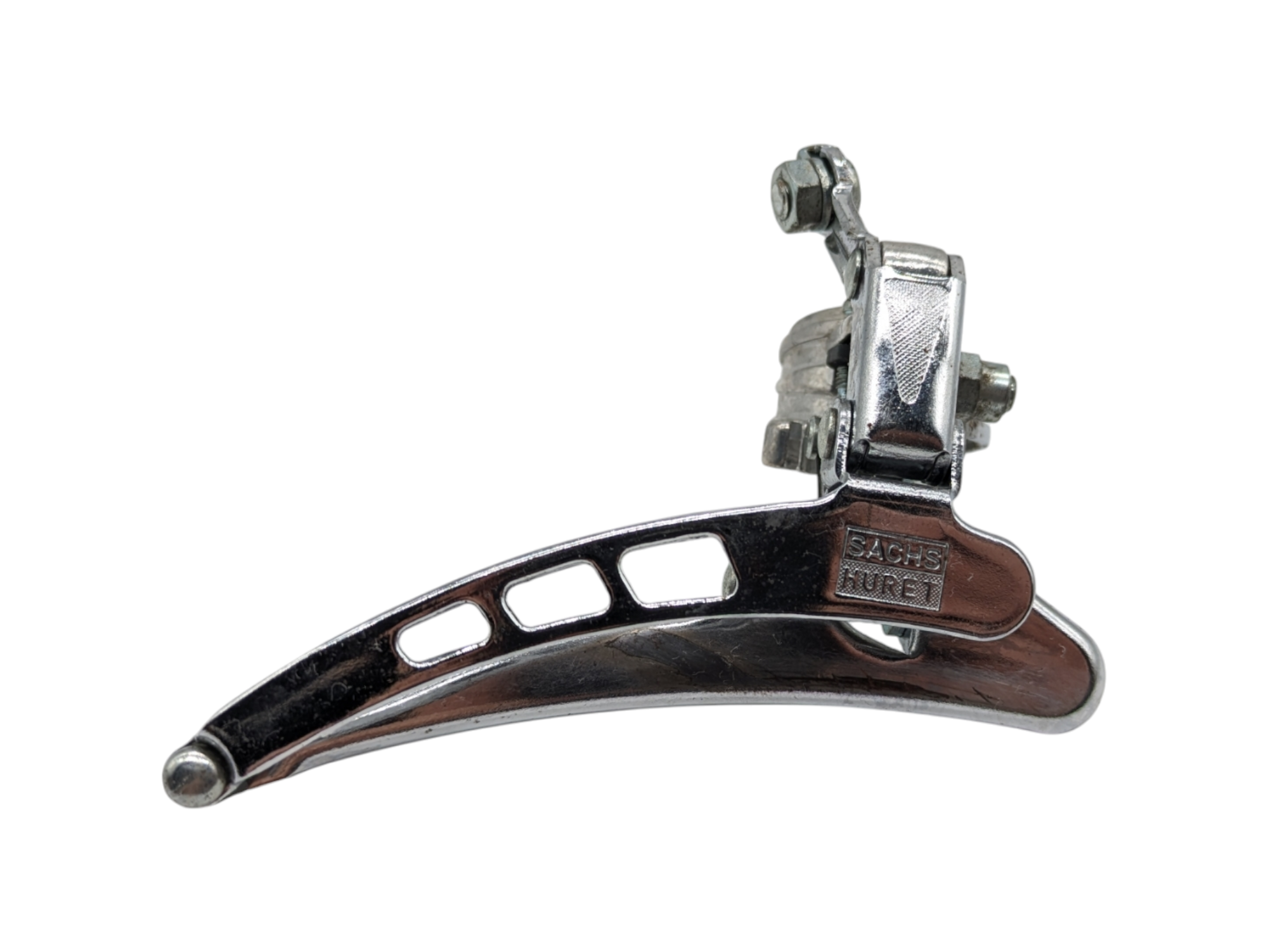 Sachs Huret front derailleur with 28,6 mm clamp mounting. French-made vintage component known for reliable shifting and durable construction. Perfect for period-correct restorations and classic road bike builds.