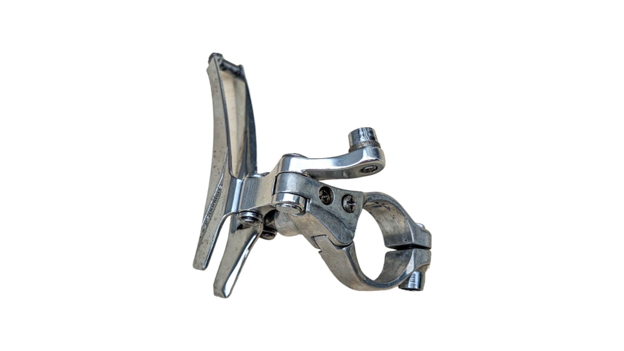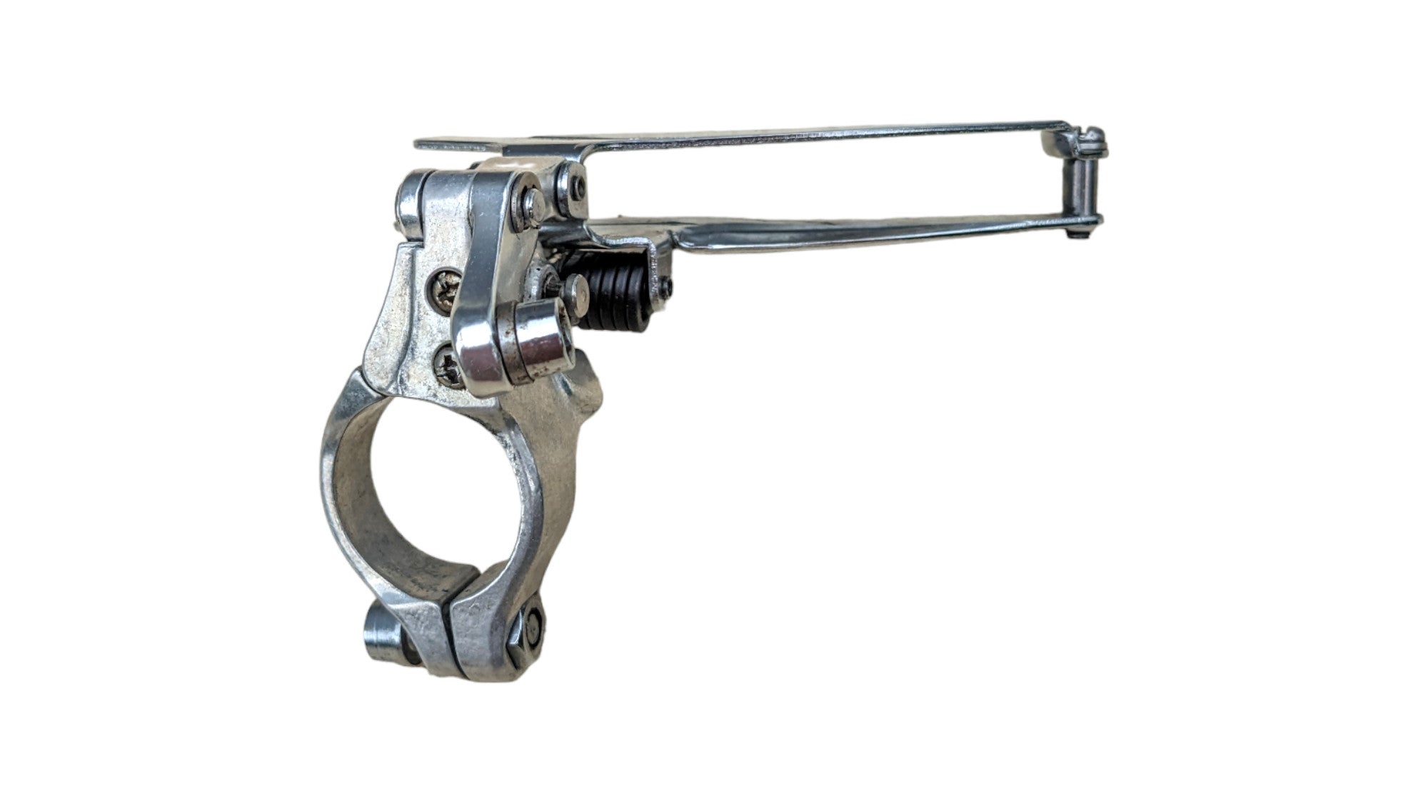 Shimano 600 EX FD-6207 clamp-on front derailleur. Used, cleaned and fully functional. A mid-’80s Japanese classic from the 600 EX series — smooth shifting, light construction, ideal for vintage road restorations and period-correct groupset builds.