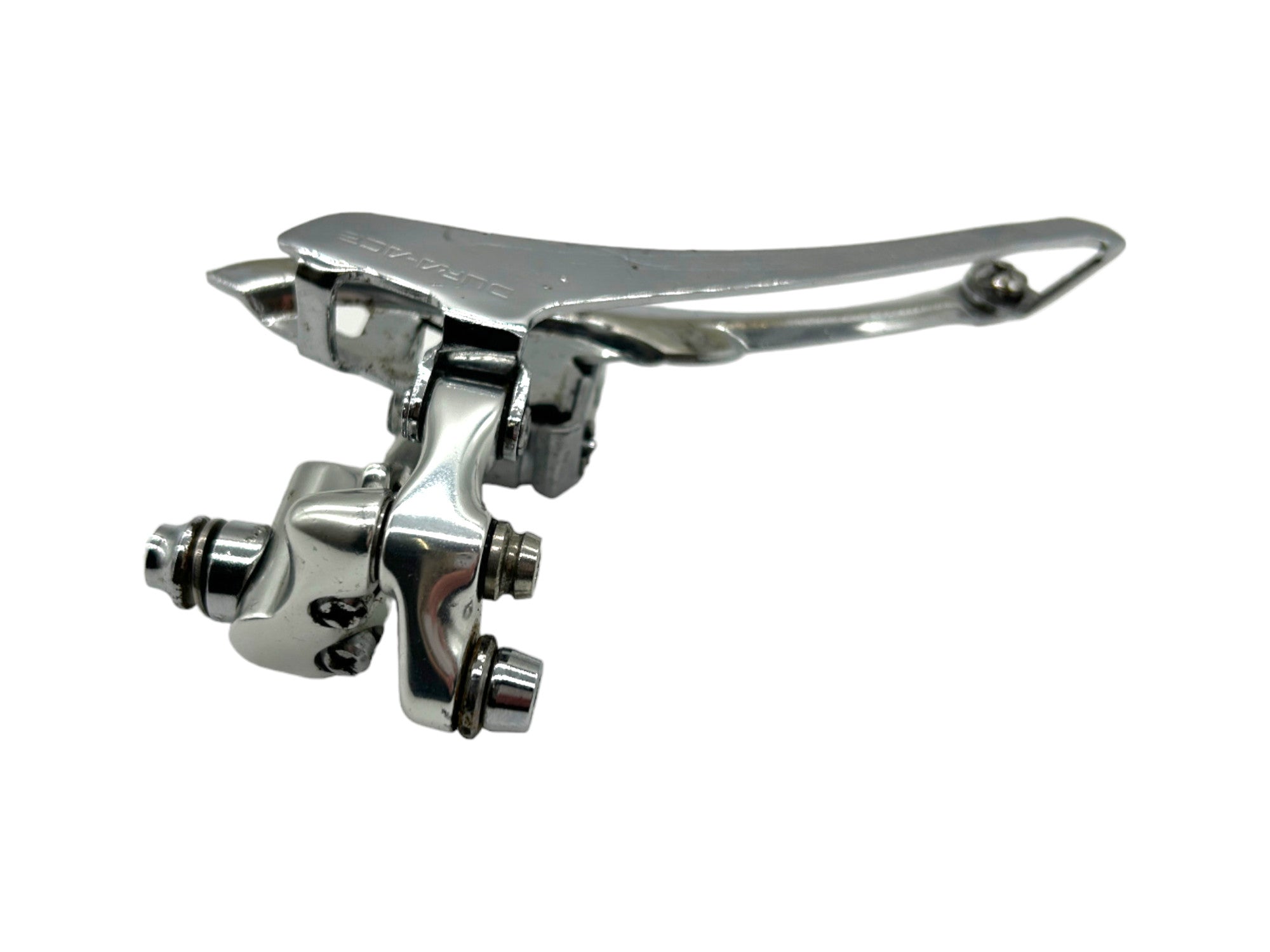 Shimano Dura-Ace FD-7410 braze-on front derailleur, 8-speed compatible. Cleaned and fully functional — a precision Japanese component, valued for its smooth shifting and reliability on vintage steel road bikes.