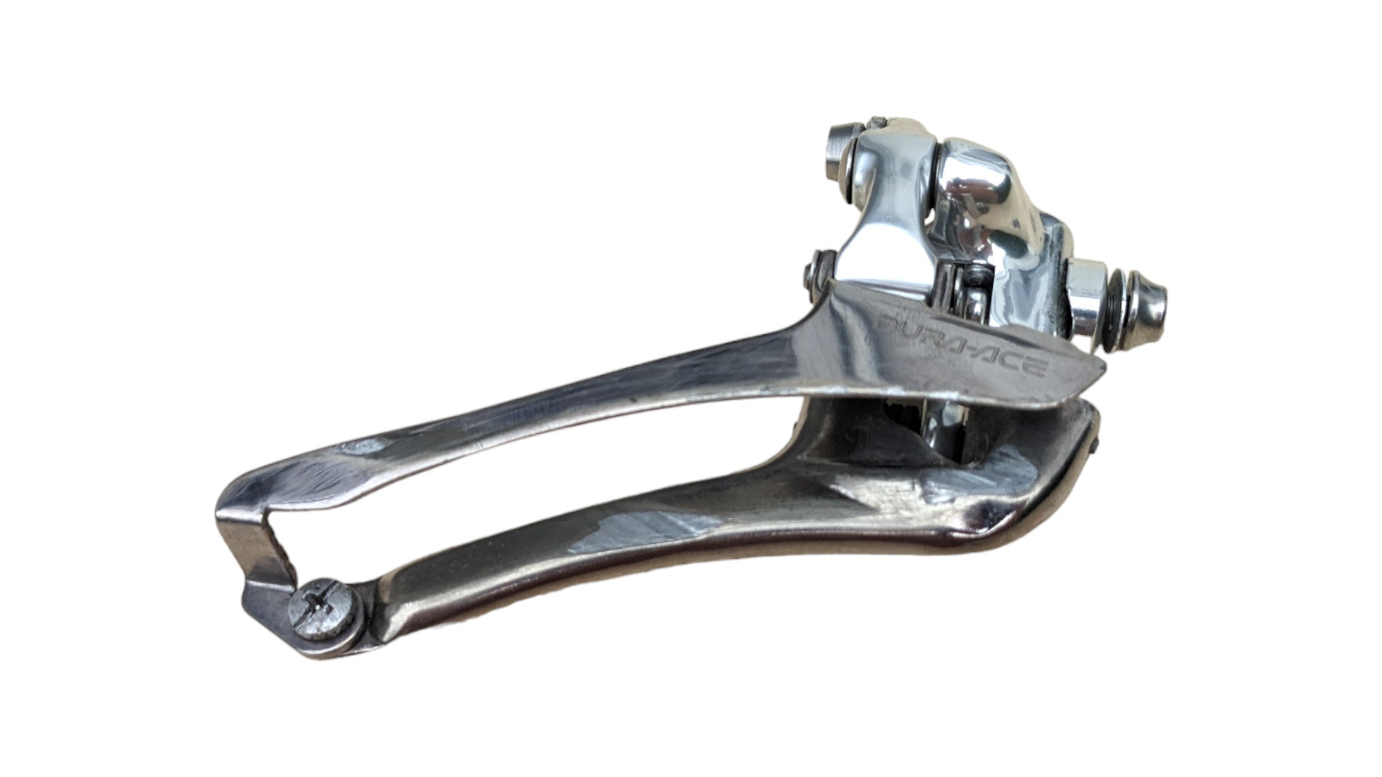 Shimano Dura-Ace FD-7700 braze-on front derailleur. Used, cleaned and fully functional. Sleek and high-precision — ideal for high-end vintage road setups and period-accurate Shimano group restorations.