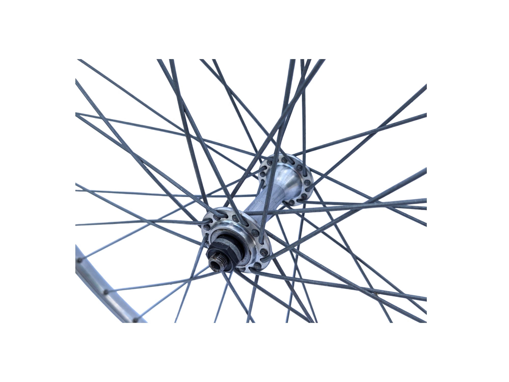 Weinmann rim front wheel with Maillard hub, 28″ clincher (622 mm), 100 mm spacing and 13/20 mm rim profile. Used, cleaned and fully functional — a Swiss-French combination, ideal for vintage road bikes and steel frame restorations.