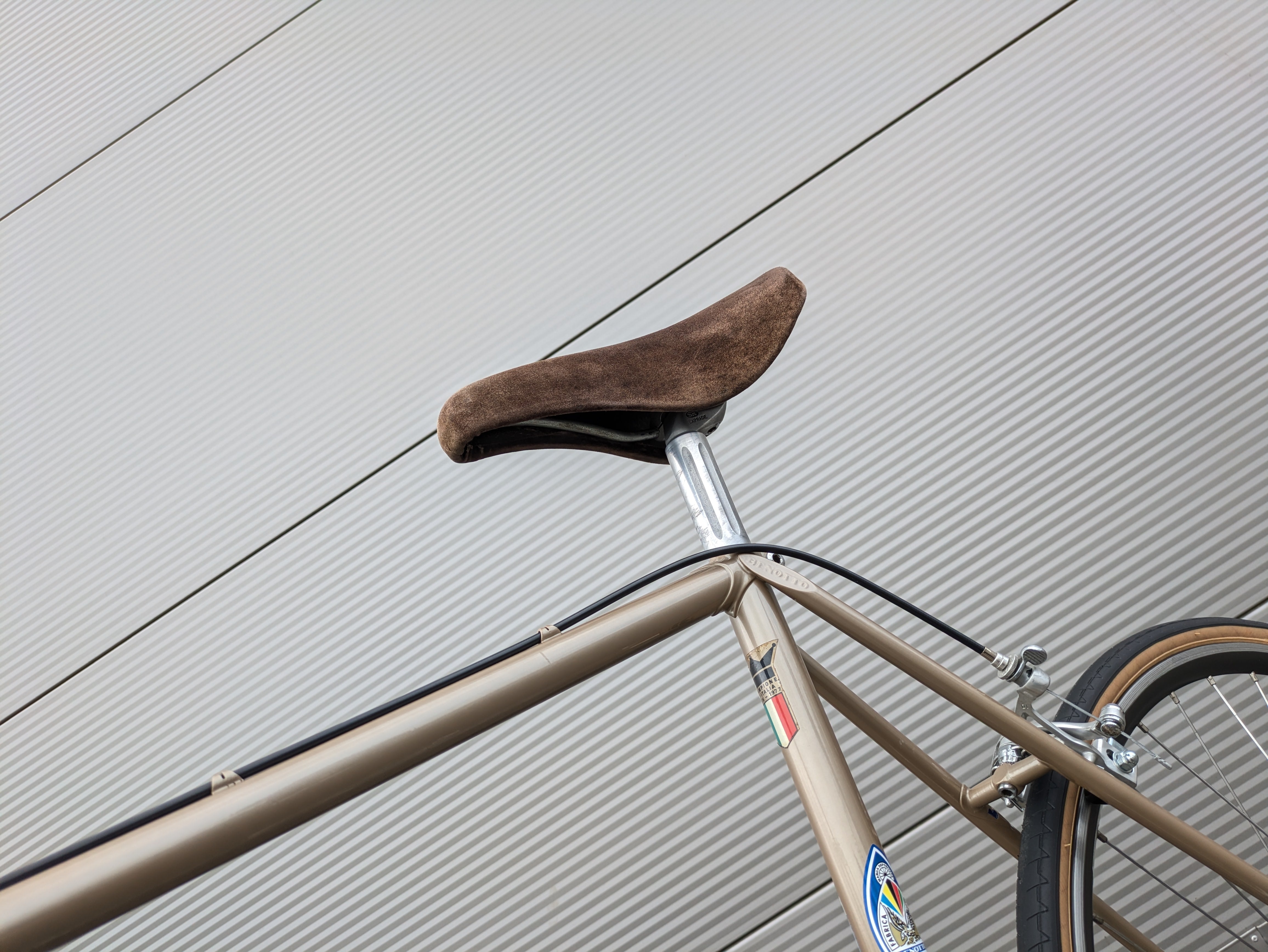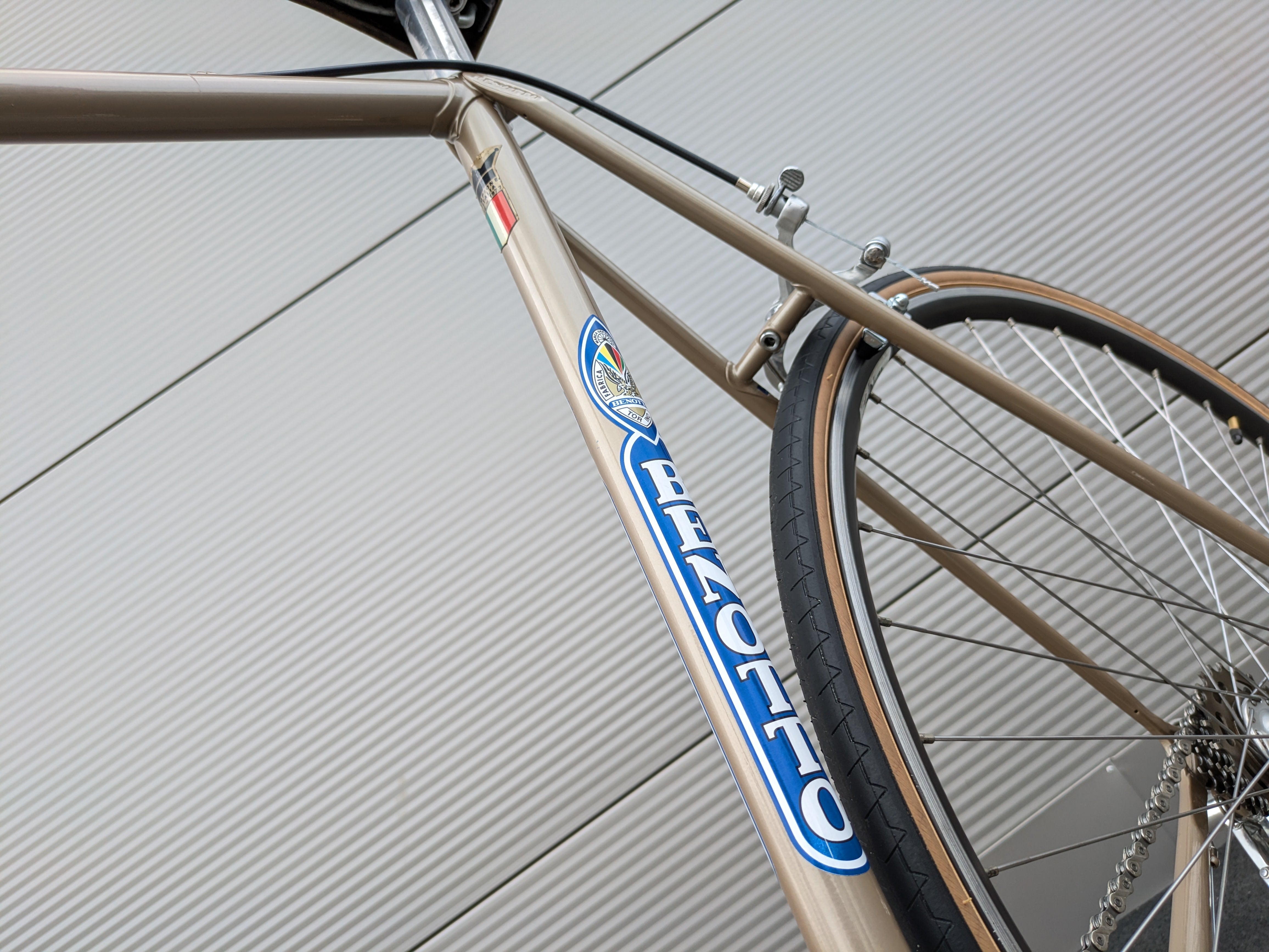 The Benotto 2500 has been carefully restored, fully disassembled, and all bearings cleaned and re-greased. The frame is flawless—no cracks, dents, or deformations—and all components have been expertly assembled. With minimal signs of use, the bike presents itself in well-maintained condition and is ready to ride.