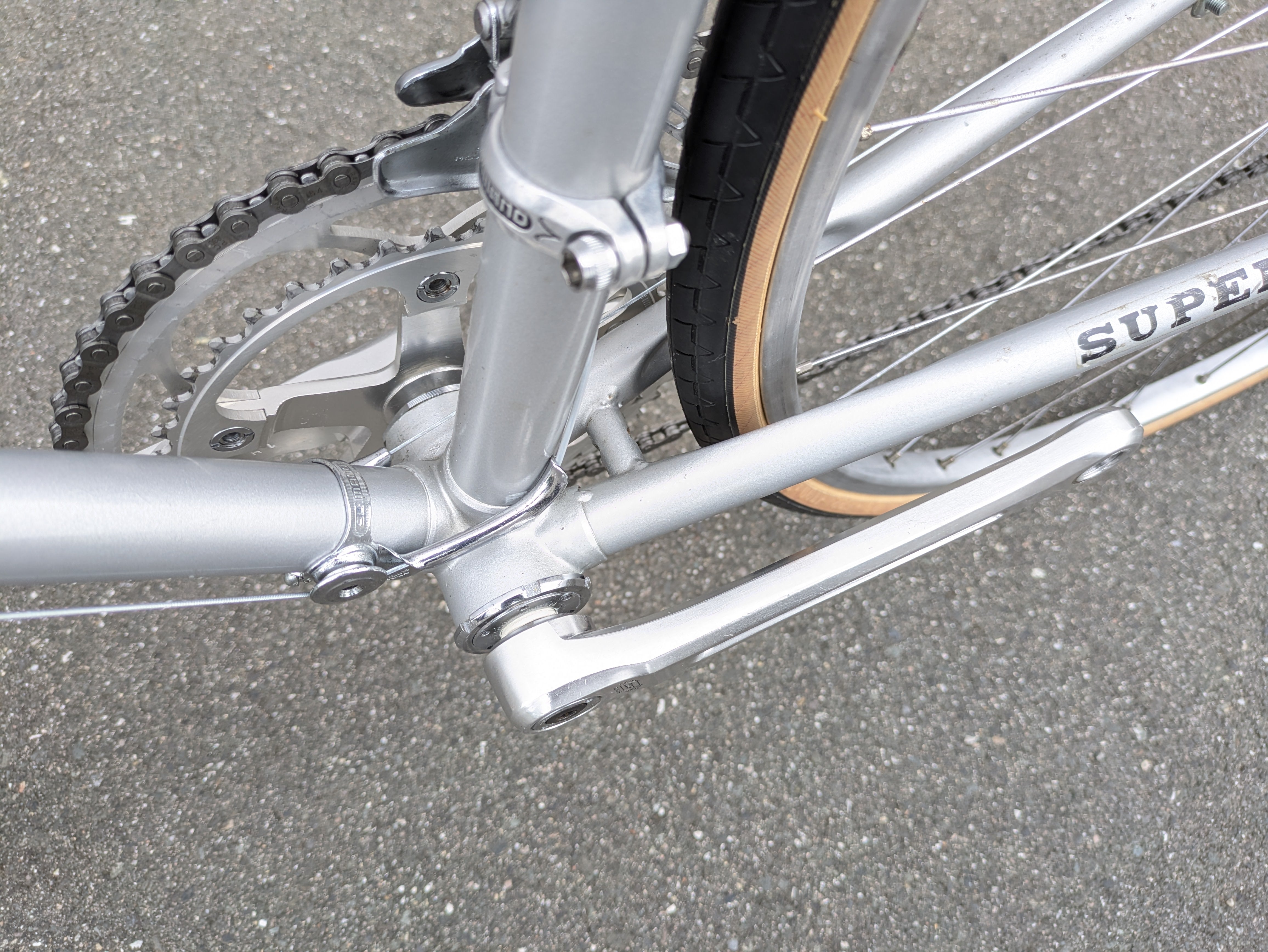This early-1980s Superia represents the straightforward and honest character of Belgian road racing. Built from Tange steel tubing and finished in its original silver tone, the frame combines stability with classic geometry for a confident and comfortable ride.