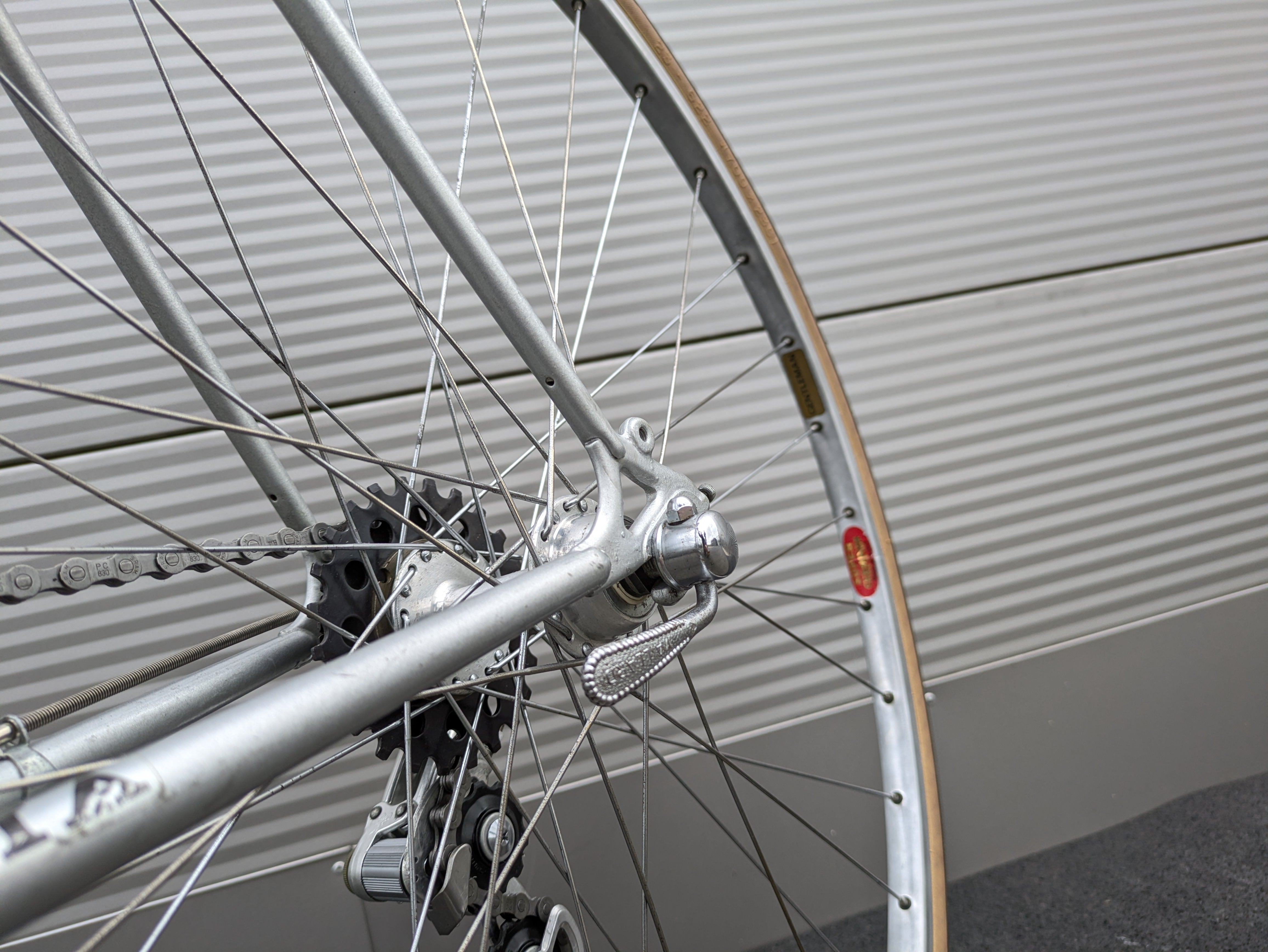 It is equipped with a complete Shimano 600 Arabesque groupset, known for its precise shifting and elegant detailing. The combination of Japanese engineering and Belgian craftsmanship creates a reliable and balanced vintage racer with timeless appeal. Every detail reflects quality and care, staying true to the brand’s authentic spirit.